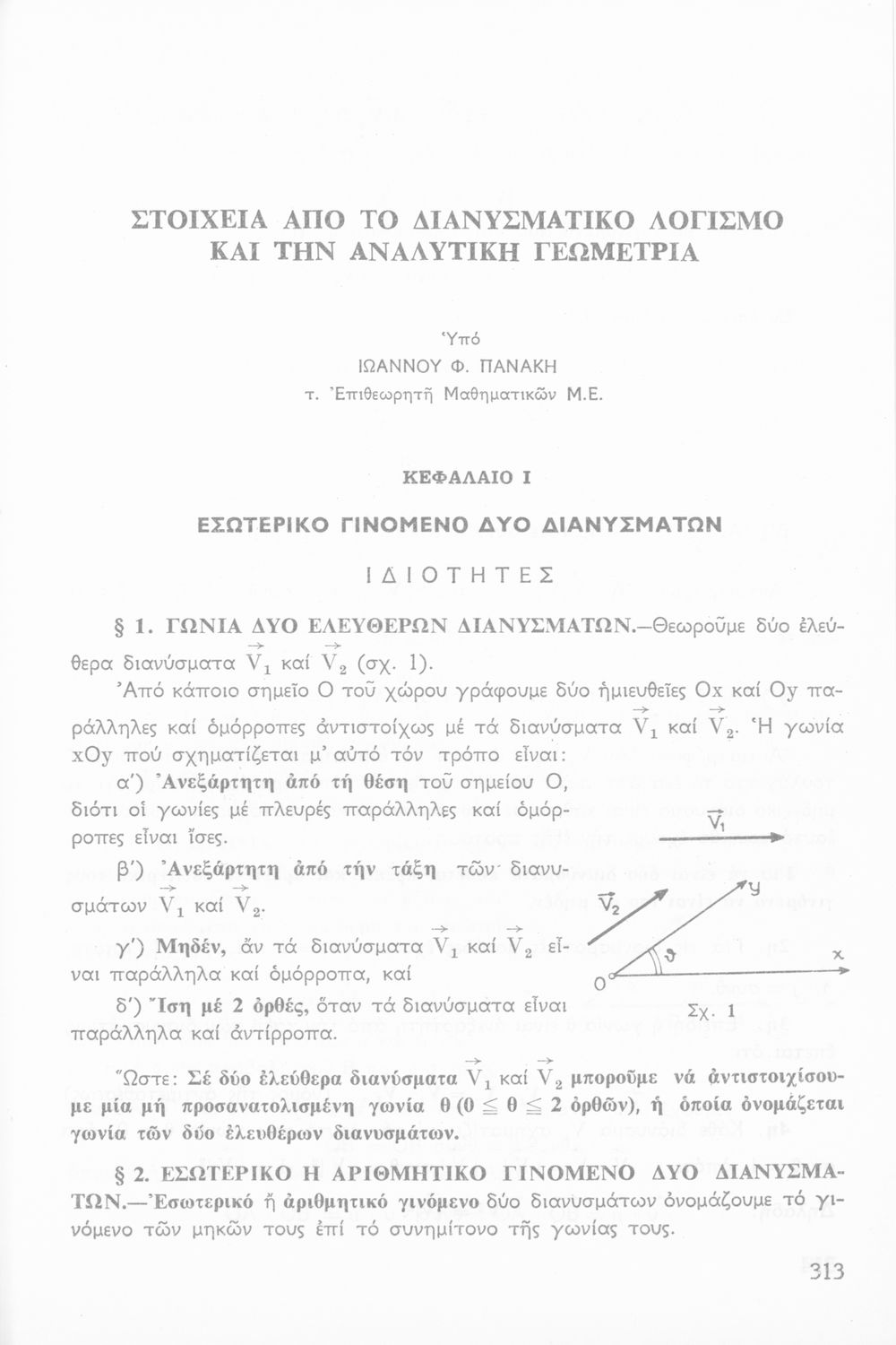 Σχολικό εγχειρίδιο Άλγεβρας Β΄ Λυκείου χωρισμένο σε θεωρία, παρατηρήσεις και ασκήσεις που περιλαμβάνει και στοιχεία από το Διανυσματικό Λογισμό και την Αναλυτική Γεωμετρία που έχουν συγγραφεί από τον Ιωάννη Πανάκη. Το εγχειρίδιο μεταγλωττίστηκε στη δημοτική από τον συγγραφέα και τους Ε. Πλατή, Ιορδ. Παπαδόπουλο και Β. Θεοδωρακόπουλο.