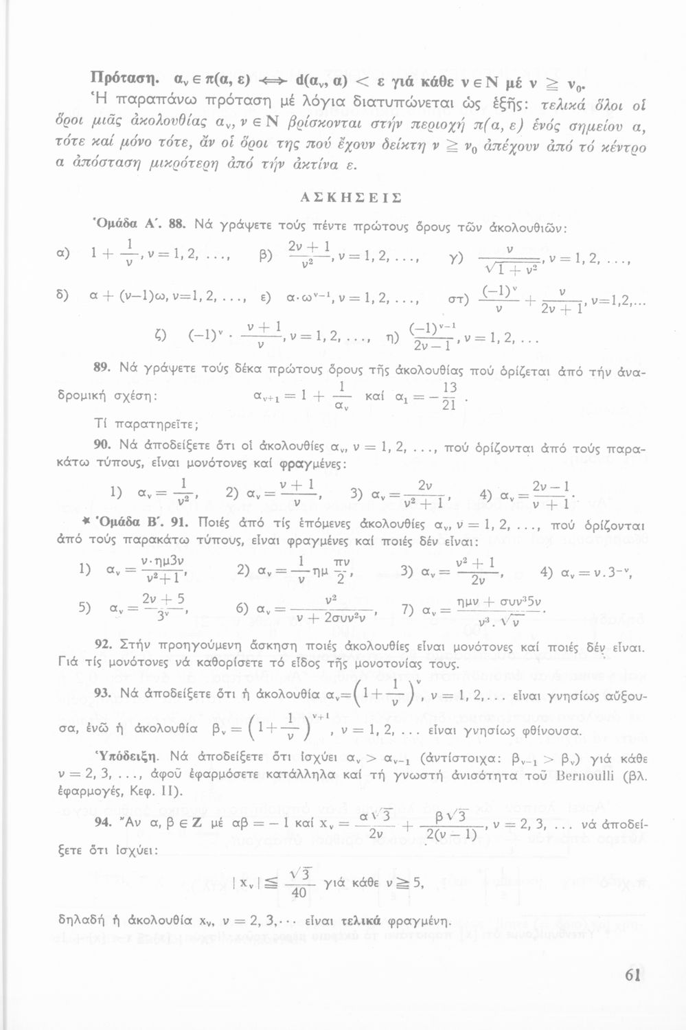 Σχολικό εγχειρίδιο Άλγεβρας Β΄ Λυκείου χωρισμένο σε αξιώματα, θεωρήματα, παρατηρήσεις και ασκήσεις που εστιάζει στα σύνολα, τις ακολουθίες και τις προόδους.