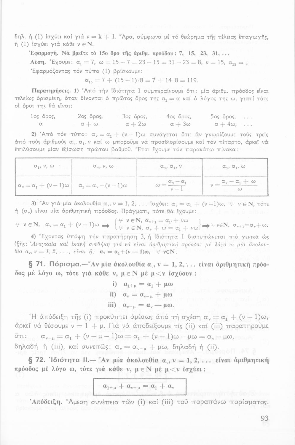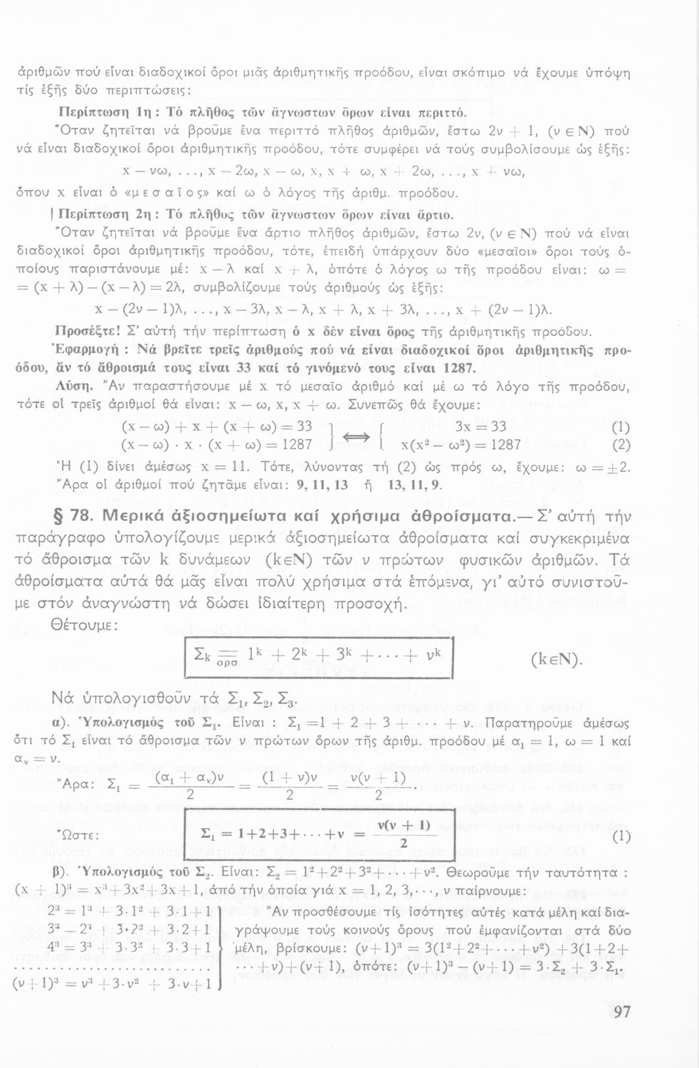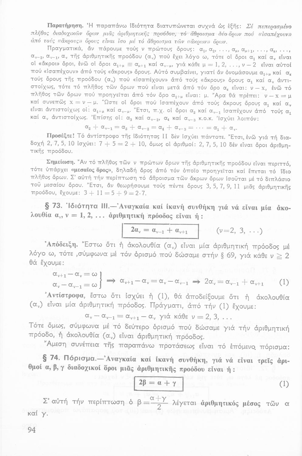 Σχολικό εγχειρίδιο Άλγεβρας Β΄ Λυκείου χωρισμένο σε αξιώματα, θεωρήματα, παρατηρήσεις και ασκήσεις που εστιάζει στα σύνολα, τις ακολουθίες και τις προόδους.