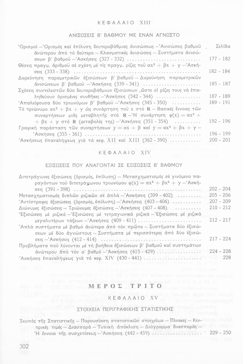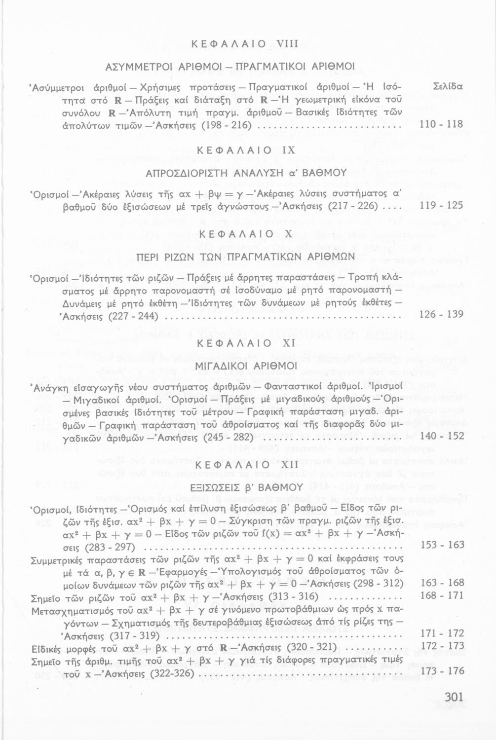 Σχολικό εγχειρίδιο Μαθηματικών Γ΄ Λυκείου που είναι χωρισμένο σε θεωρήματα, παραδείγματα και ασκήσεις και περιλαμβάνει στοιχεία Ανώτερης Άλγεβρας και Μαθηματικής Ανάλυσης.