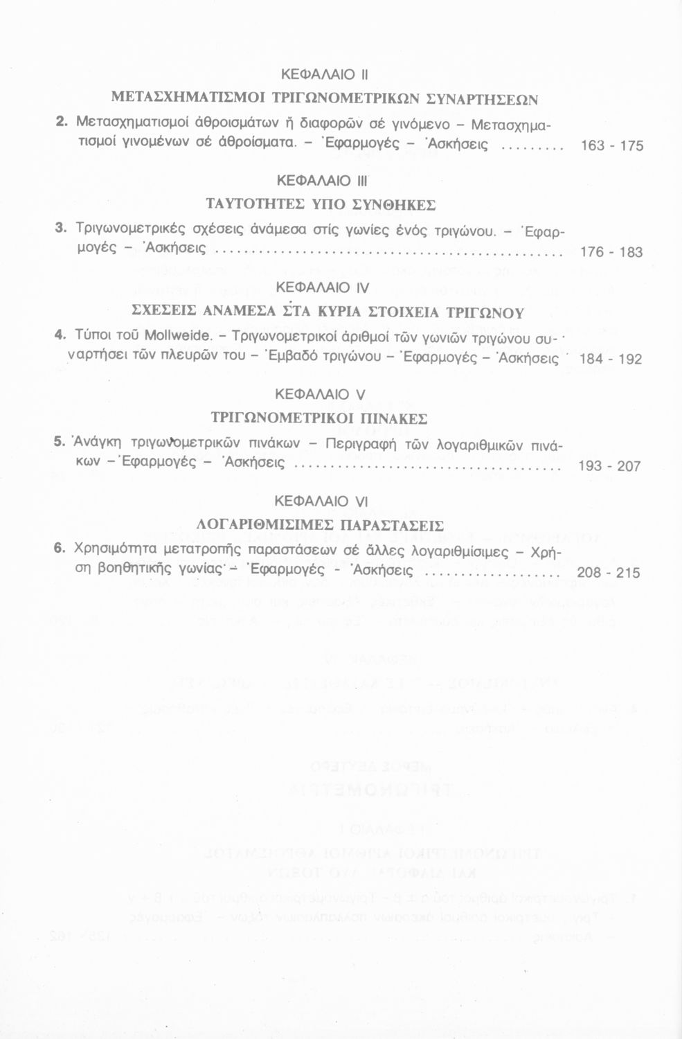 Σχολικό εγχειρίδιο Τριγωνομετρίας για την Β΄ Λυκείου χωρισμένο σε προβλήματα, εφαρμογές και ασκήσεις. Το εγχειρίδιο μεταγλωττίστηκε στη δημοτική από τους Βασίλειο Θεοδωρακόπουλο, Απόστολο Ζορμπά και τον ...