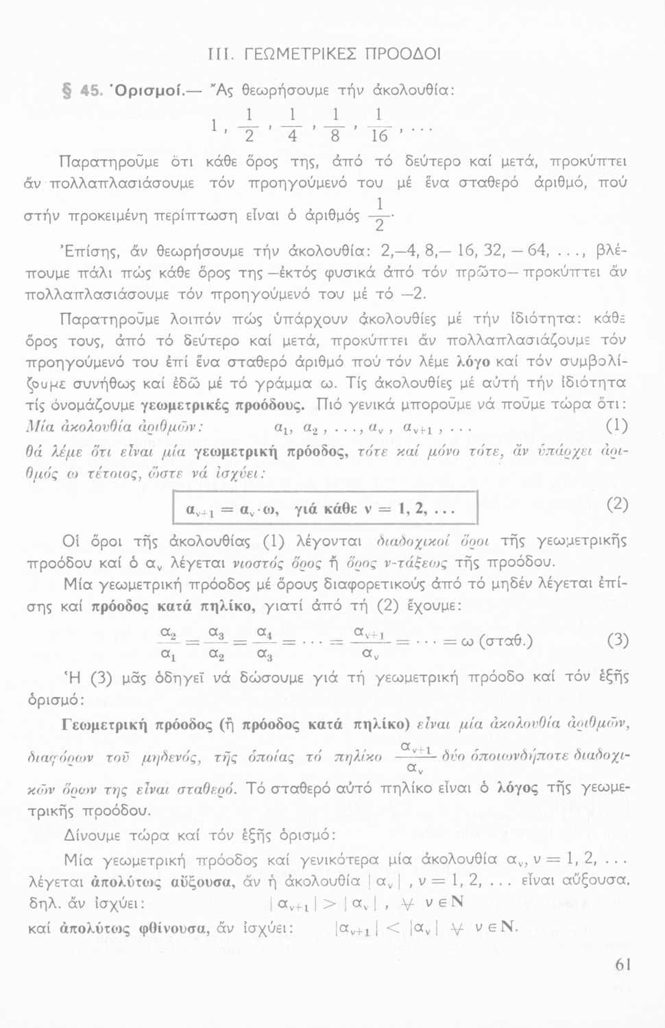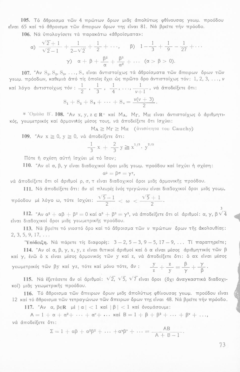 Σχολικό εγχειρίδιο Άλγεβρας Β΄ Λυκείου χωρισμένο σε αξιώματα, θεωρήματα, παρατηρήσεις και ασκήσεις που εστιάζει στα σύνολα, τις ακολουθίες και τις προόδους.