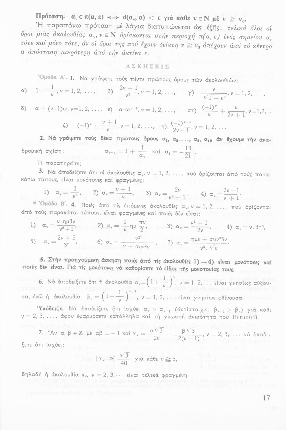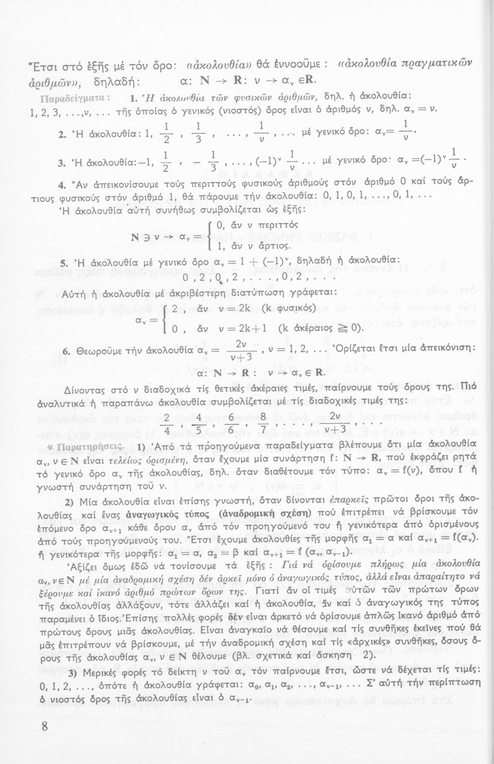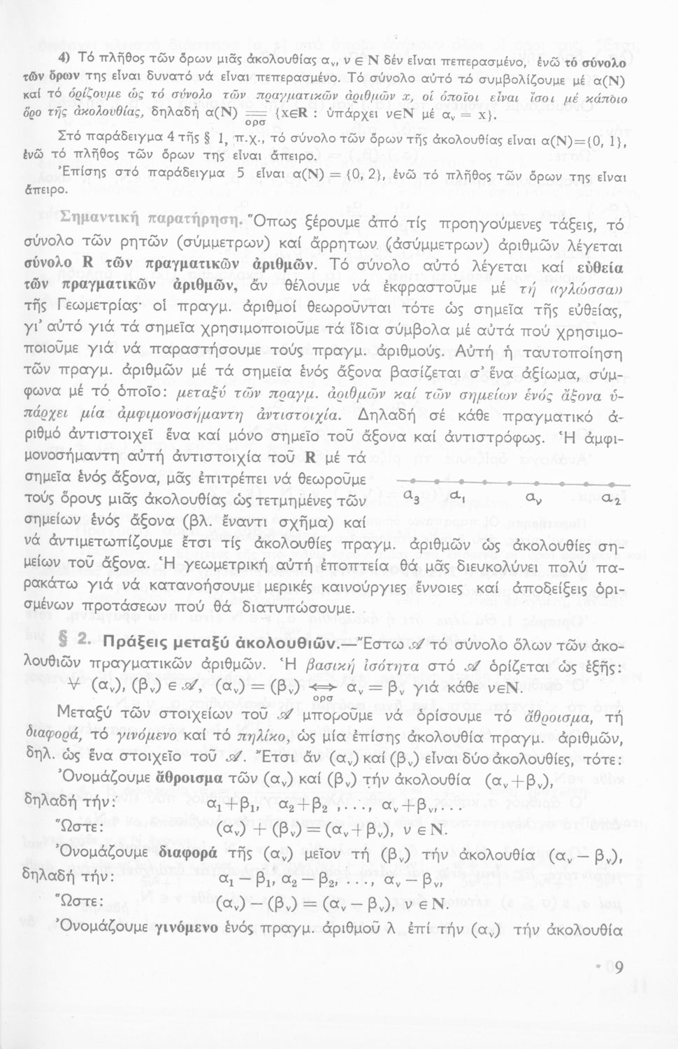 Σχολικό εγχειρίδιο Άλγεβρας Β΄ Λυκείου χωρισμένο σε αξιώματα, θεωρήματα, παρατηρήσεις και ασκήσεις που εστιάζει στα σύνολα, τις ακολουθίες και τις προόδους.
