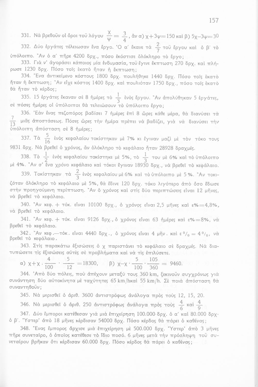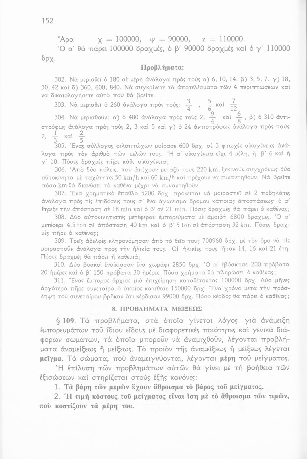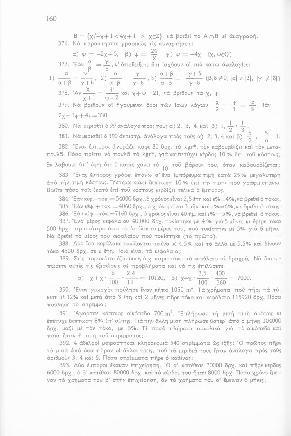 Σχολικό Εγχειρίδιο Μαθηματικών Β' Γυμνασίου που περιλαμβάνει αριθμητική με έμφαση στα σύνολα, τις μεθόδους υπολογισμού τόκων και επιτοκίων, και την μέθοδο των τριών, και γεωμετρία με έμφαση στα γεωμετρικά ...