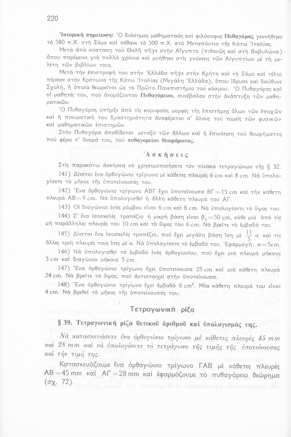 Σχολικό εγχειρίδιο Άλγεβρας Γυμνασίου που περιέχει θεωρία και ασκήσεις. Ο συγγραφέας ήταν υφηγητής στο Εθνικό Πανεπιστήμιο.