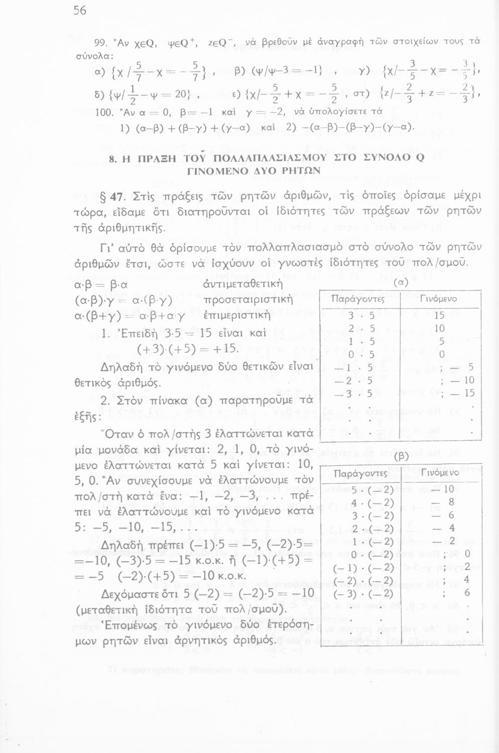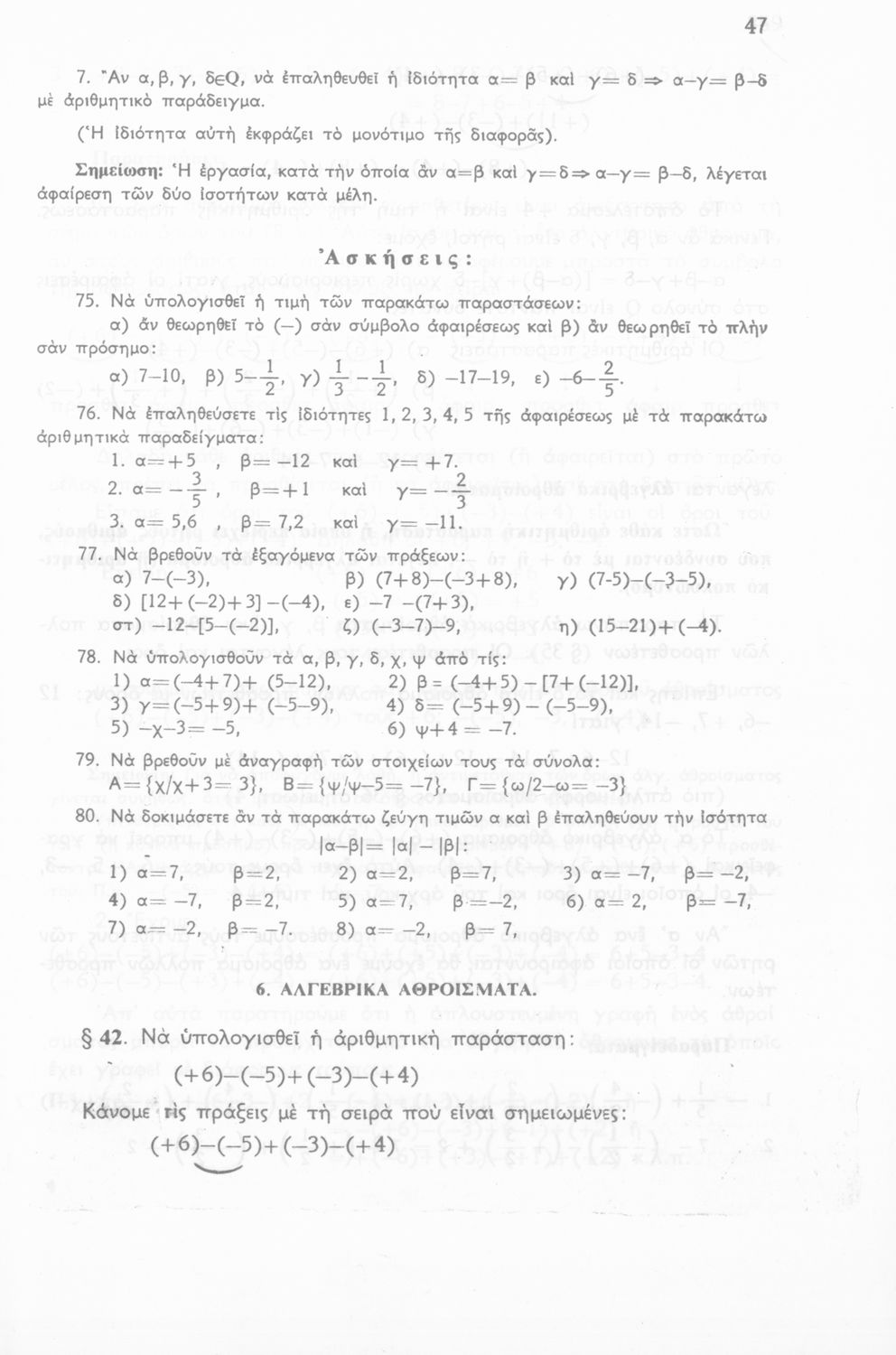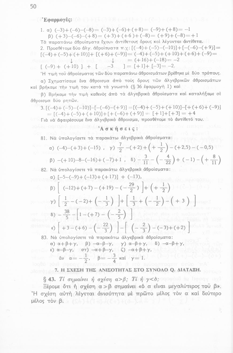 Σχολικό εγχειρίδιο Άλγεβρας Γυμνασίου που περιλαμβάνει θεωρία, ασκήσεις και στοιχεία λογιστικής.