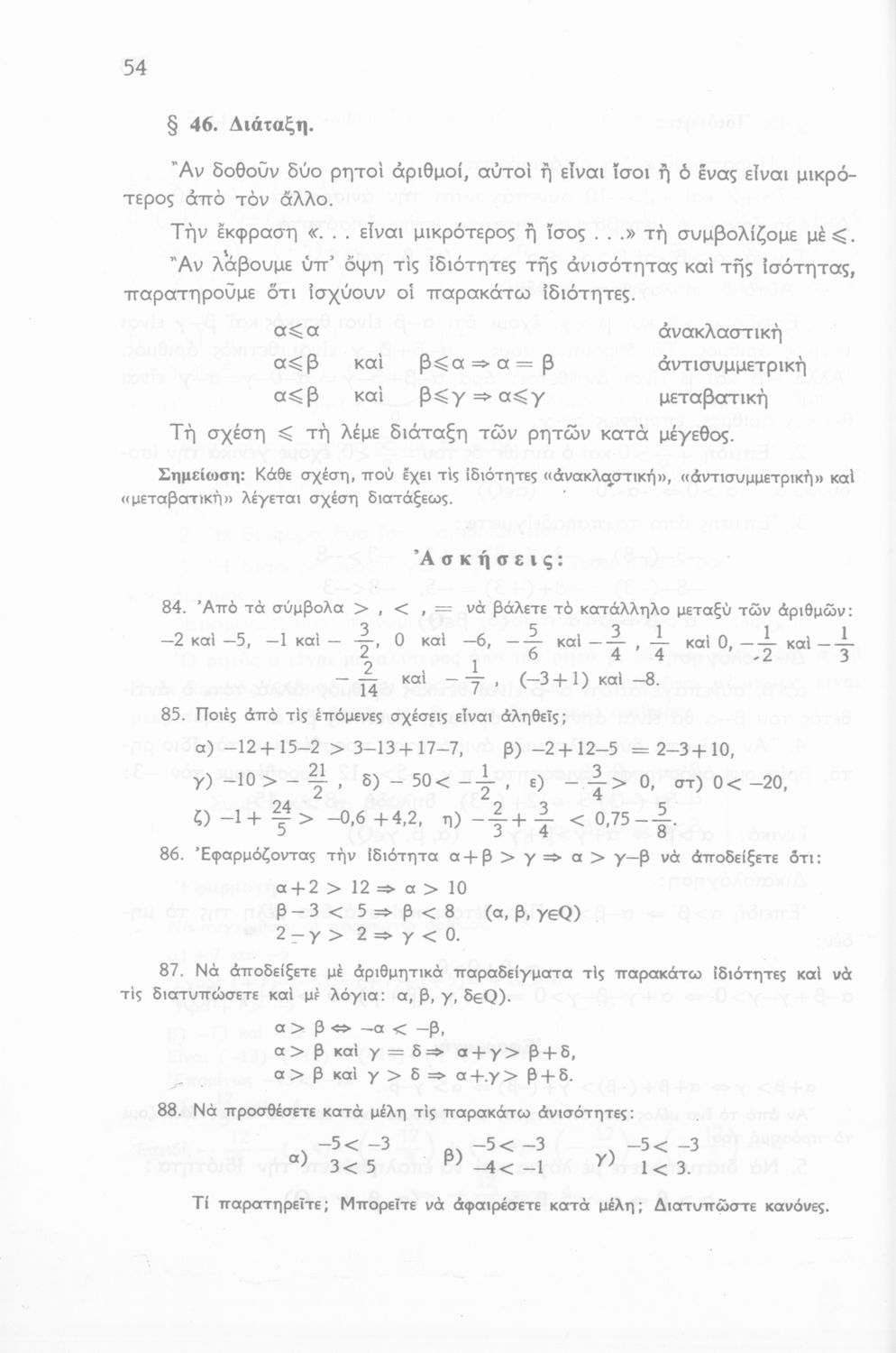 Σχολικό εγχειρίδιο Άλγεβρας Γυμνασίου που περιέχει θεωρία και ασκήσεις. Ο συγγραφέας ήταν υφηγητής στο Εθνικό Πανεπιστήμιο.