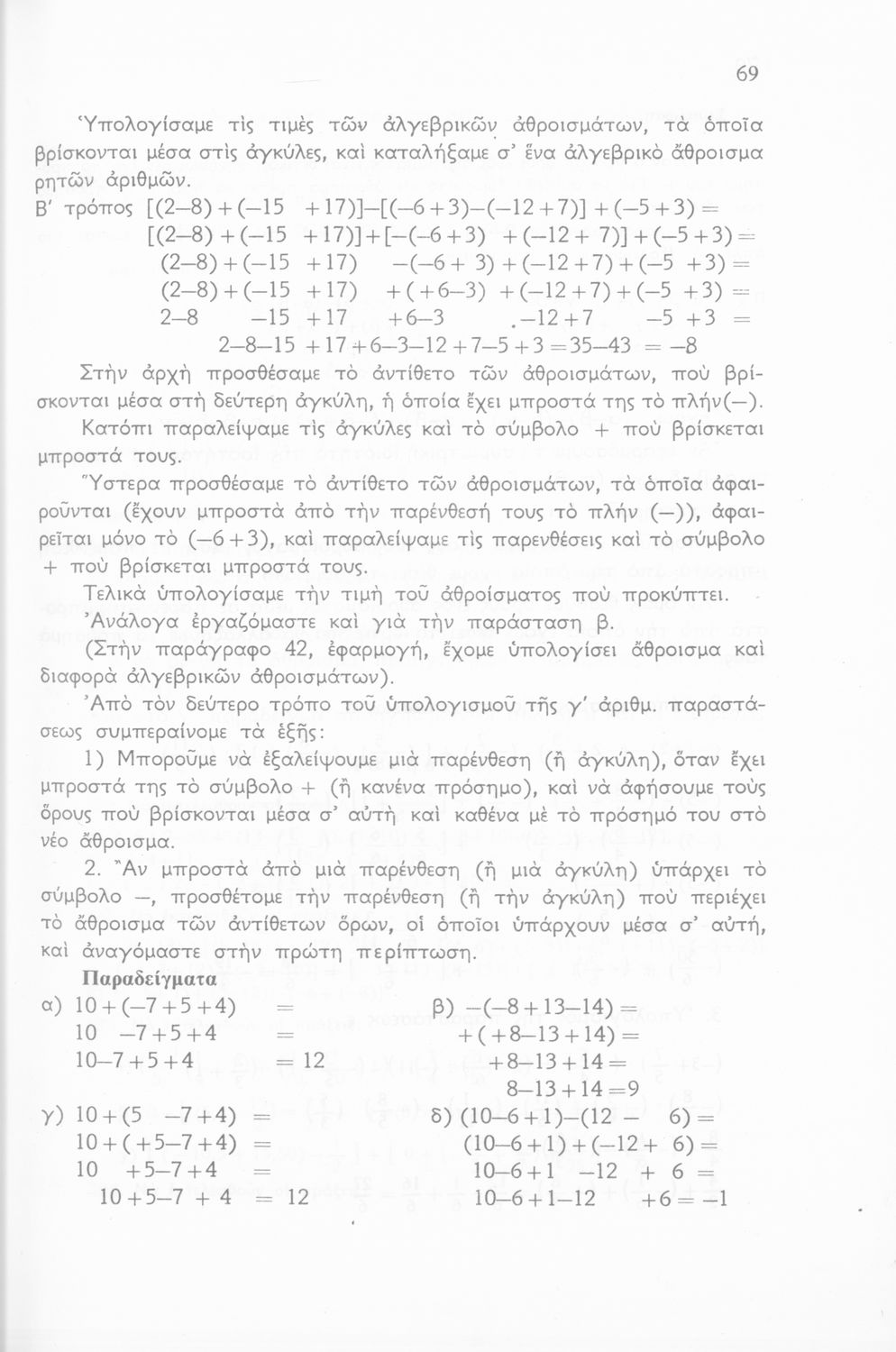 Σχολικό εγχειρίδιο Άλγεβρας Γυμνασίου που περιέχει θεωρία και ασκήσεις. Ο συγγραφέας ήταν υφηγητής στο Εθνικό Πανεπιστήμιο.