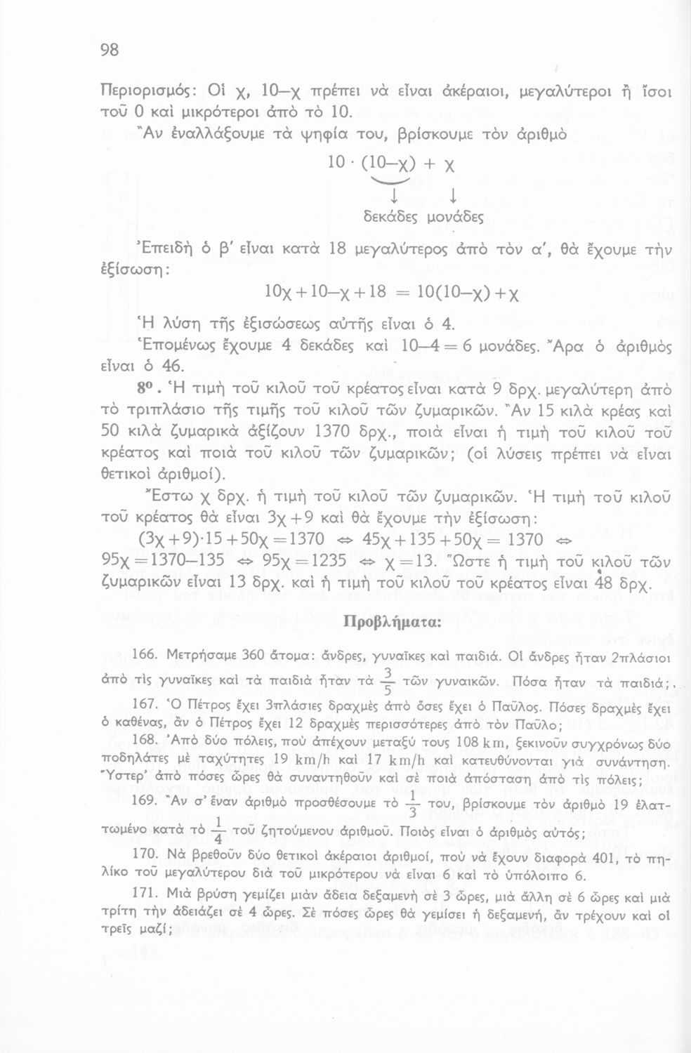 Σχολικό εγχειρίδιο Άλγεβρας Γυμνασίου που περιέχει θεωρία και ασκήσεις. Ο συγγραφέας ήταν υφηγητής στο Εθνικό Πανεπιστήμιο.