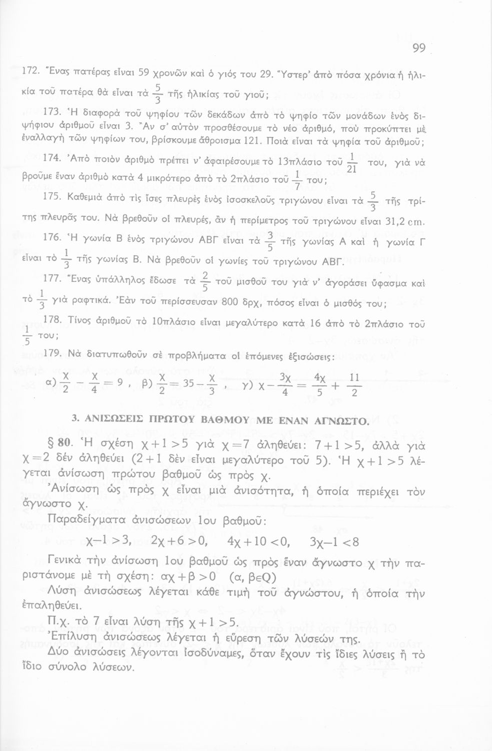 Σχολικό εγχειρίδιο Άλγεβρας Γυμνασίου που περιλαμβάνει θεωρία, ασκήσεις και στοιχεία λογιστικής.