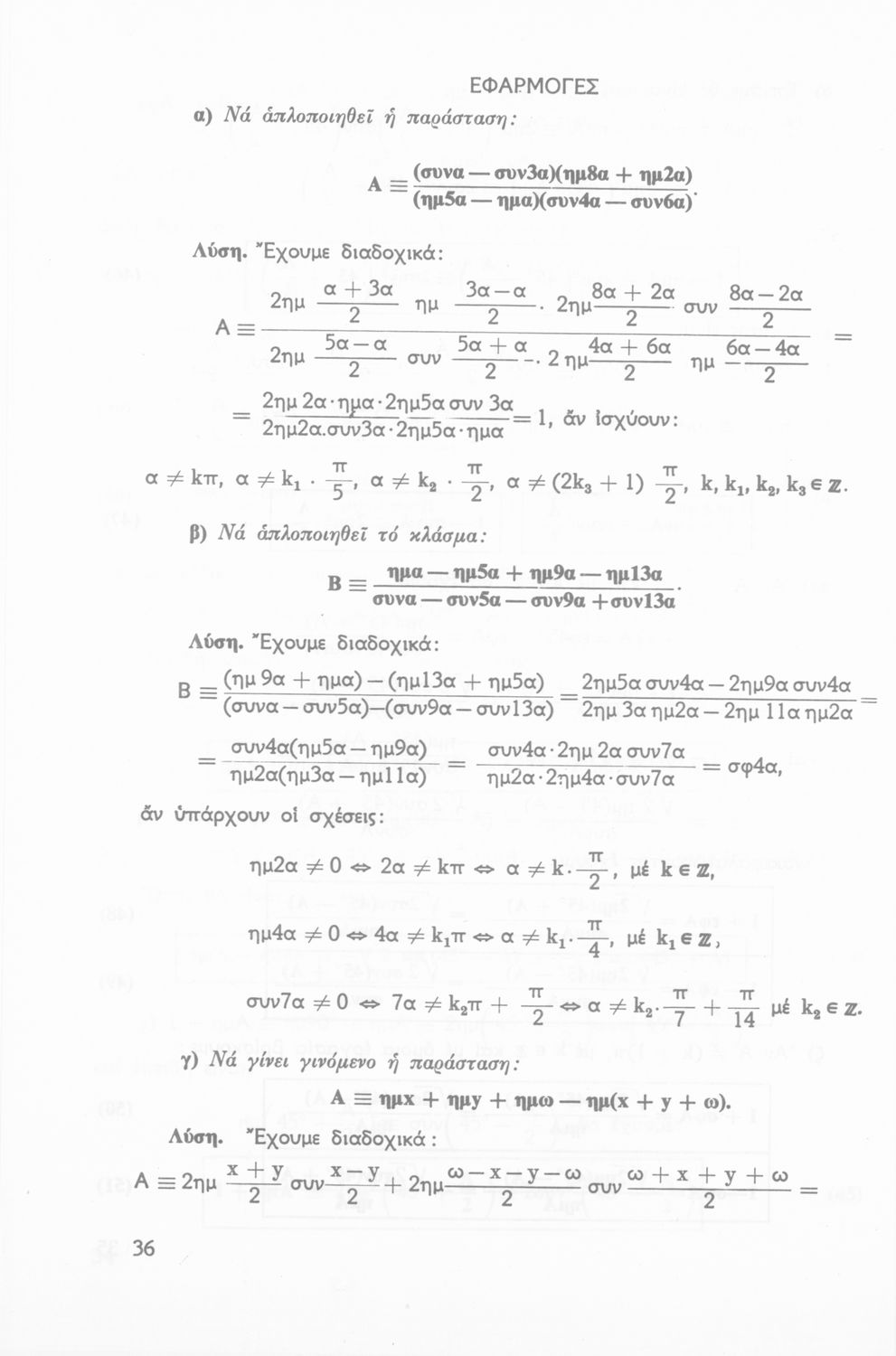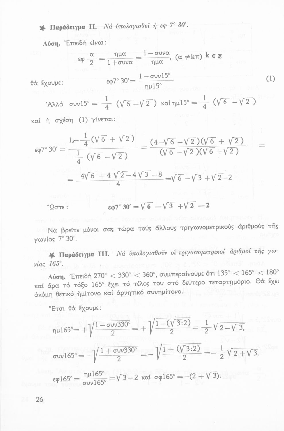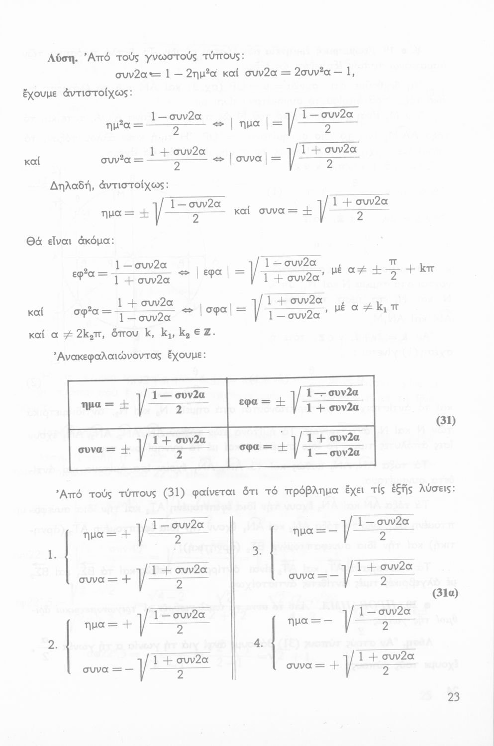 Μαθητικό βοήθημα Τριγωνομετρίας Γυμνασίου και Λυκείου που περιέχει τις λύσεις ασκήσεων.
