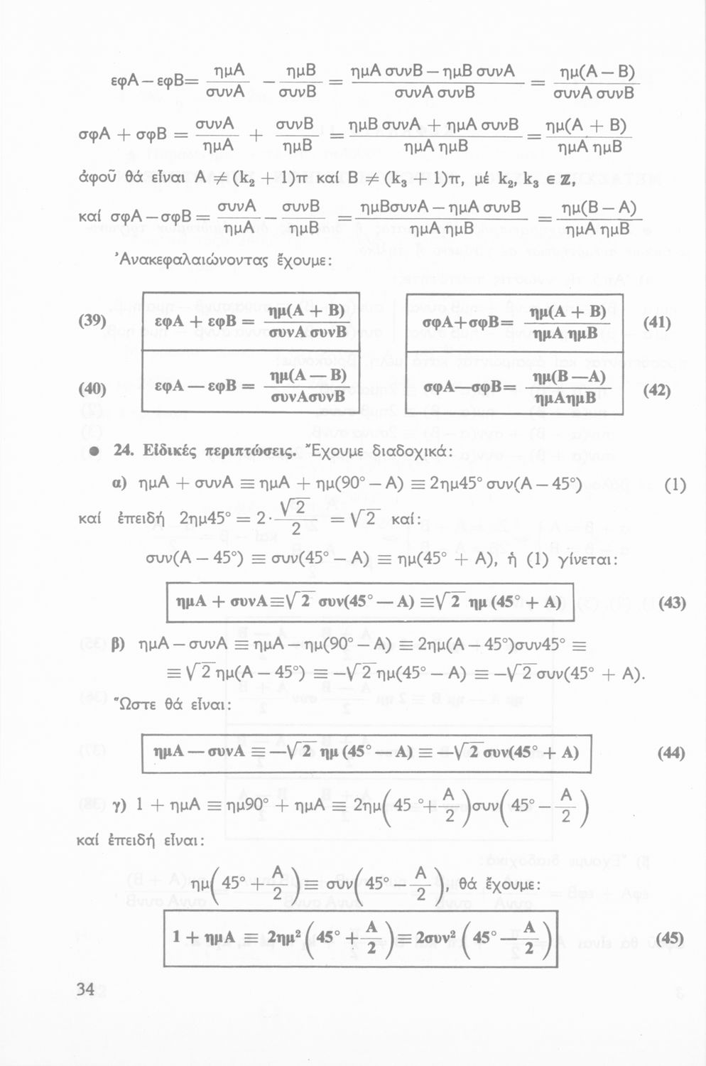 Σχολικό εγχειρίδιο Μαθηματικών Β΄ Λυκείου που περιλαμβάνει Άλγεβρα και Τριγωνομετρία και είναι χωρισμένο σε θεωρήματα, παρατηρήσεις, παραδείγματα και ασκήσεις.