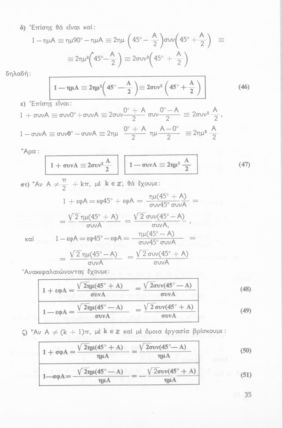 Μαθηματικά Β΄ Λυκείου τριγωνομετρία