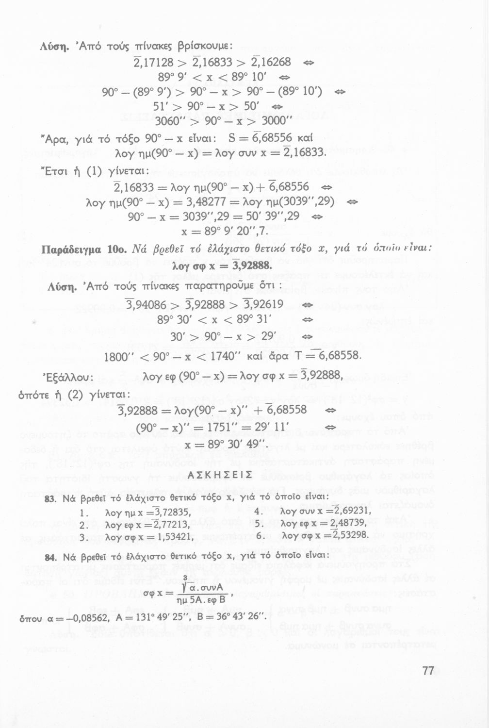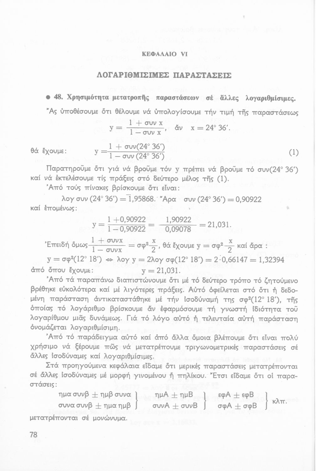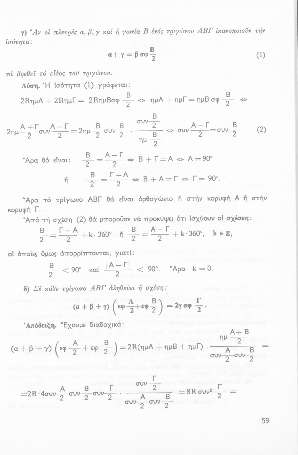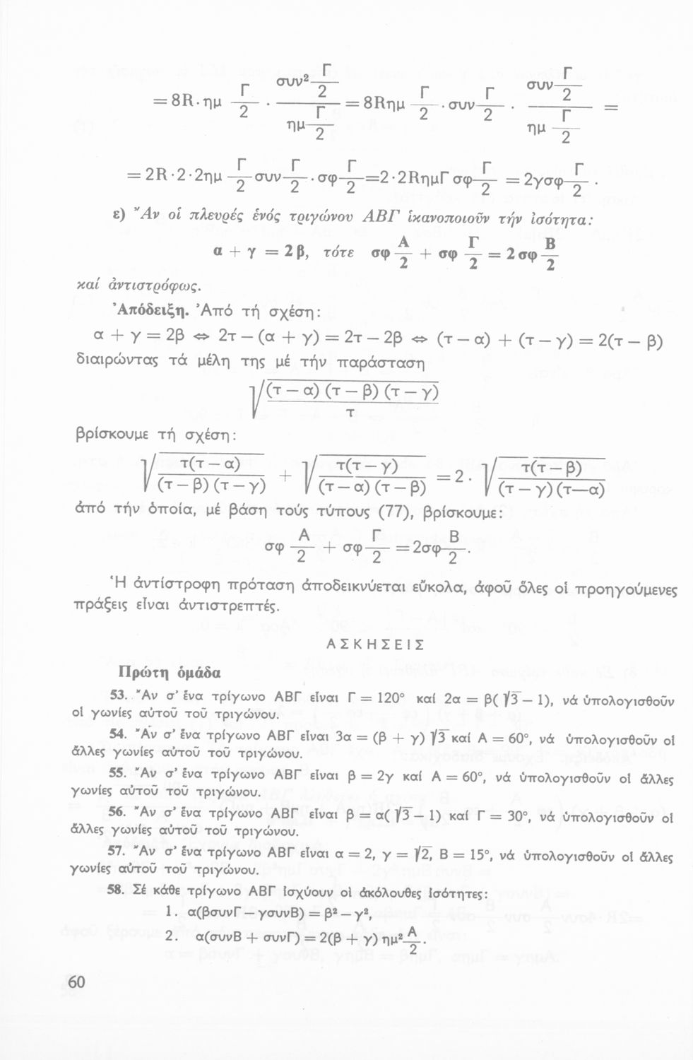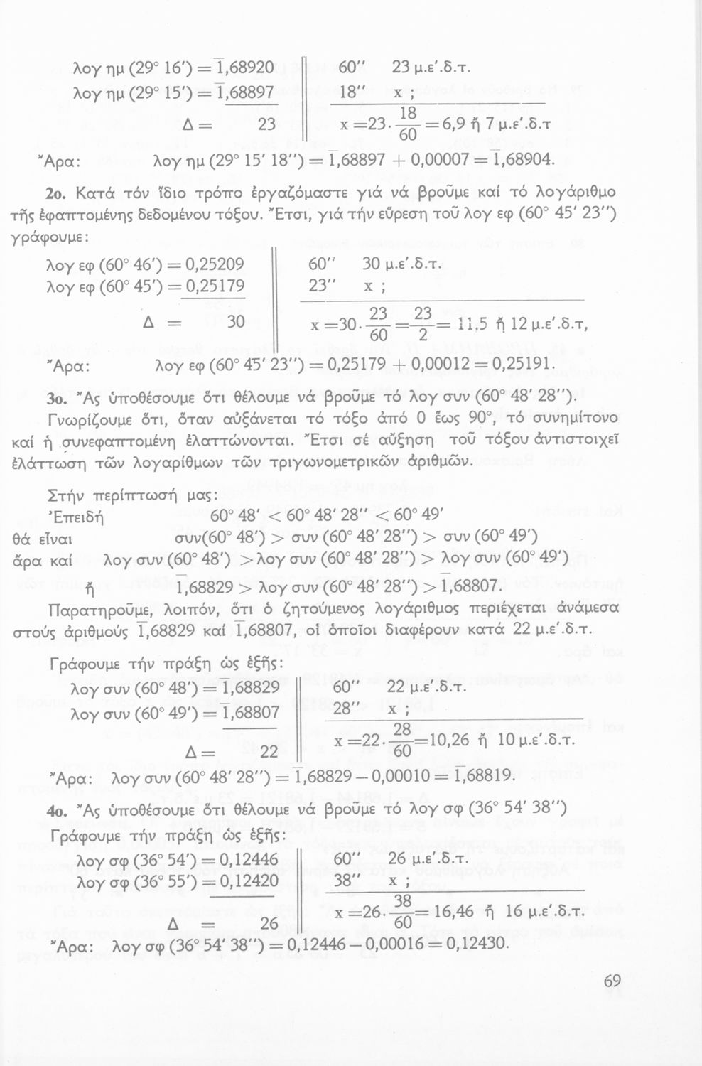Σχολικό εγχειρίδιο Τριγωνομετρίας για την Β΄ Λυκείου χωρισμένο σε προβλήματα, εφαρμογές και ασκήσεις. Το εγχειρίδιο μεταγλωττίστηκε στη δημοτική από τους Βασίλειο Θεοδωρακόπουλο, Απόστολο Ζορμπά και τον συγγραφέα. Οι μαθητές της κλασσικής κατεύθυνσης δεν διδάσκονταν κάποια από τα κεφάλαια.
