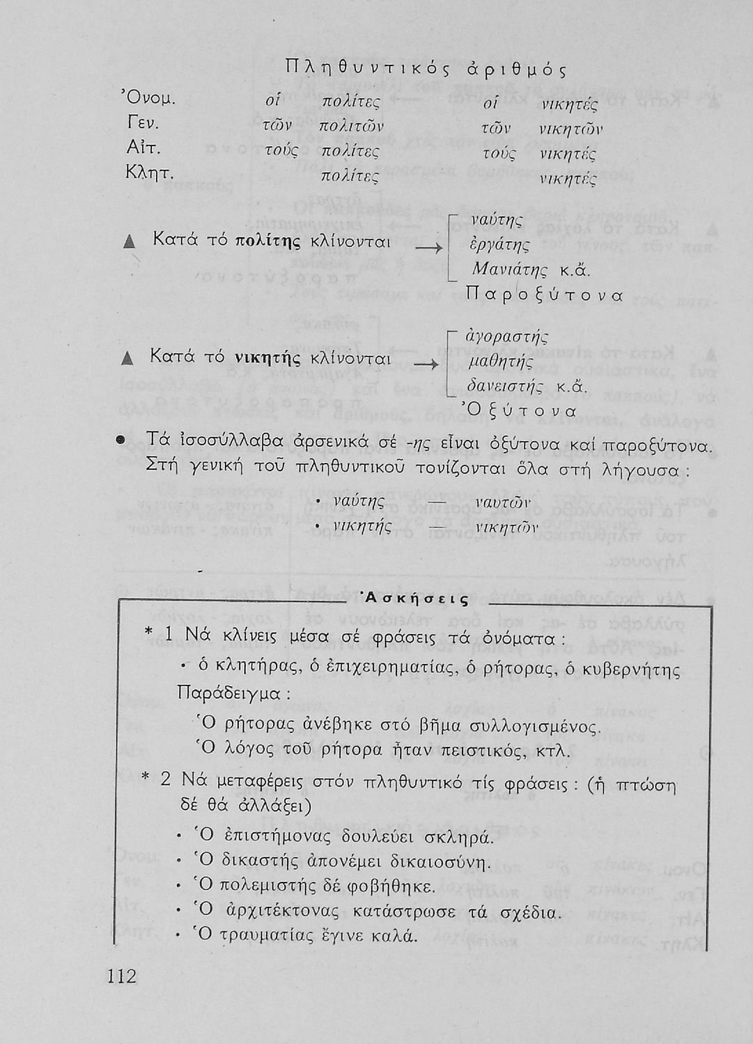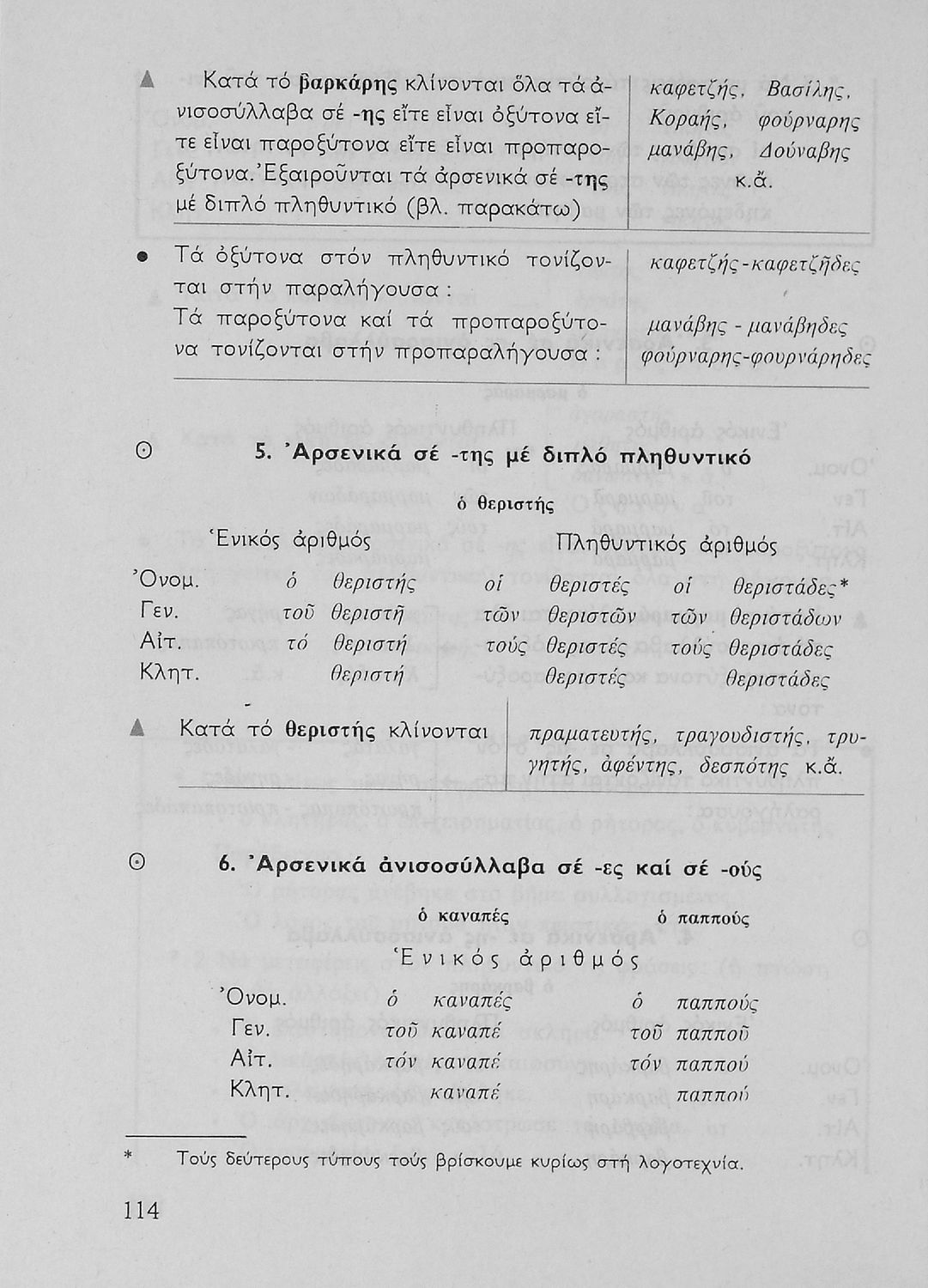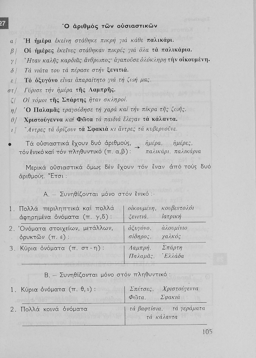 Σχολικό εγχειρίδιο για την Ε΄ και ΣΤ΄ τάξη Δημοτικού με γραμματικούς κανόνες και παραδείγματα για τα κλιτά και άκλιτα μέρη του λόγου.
