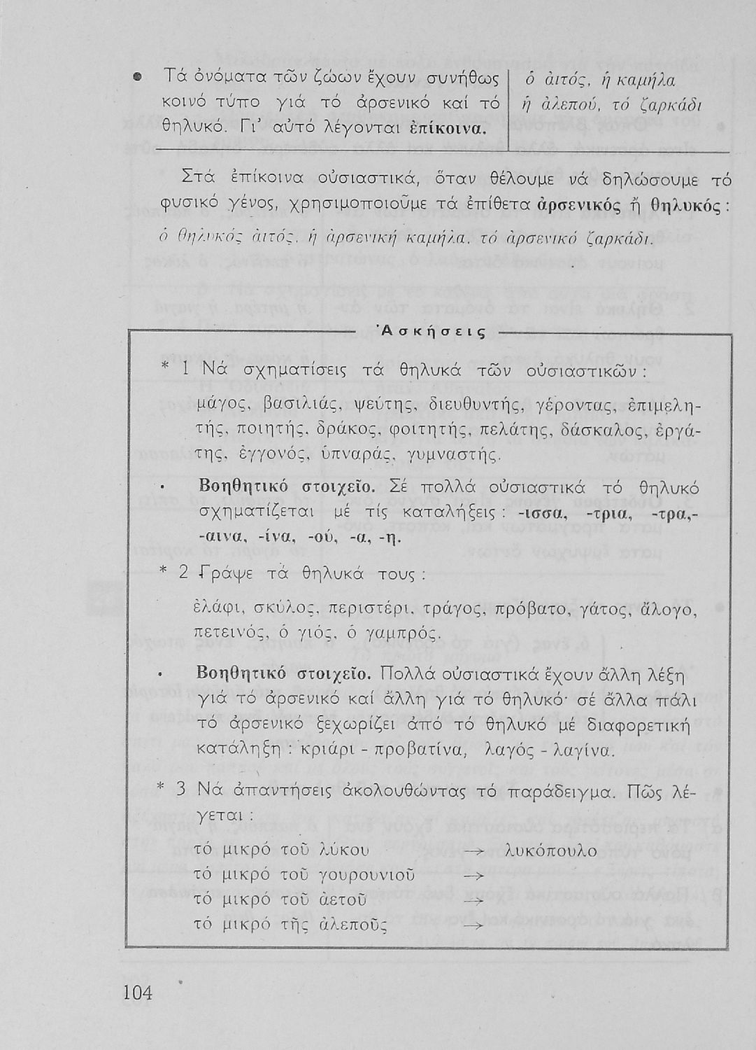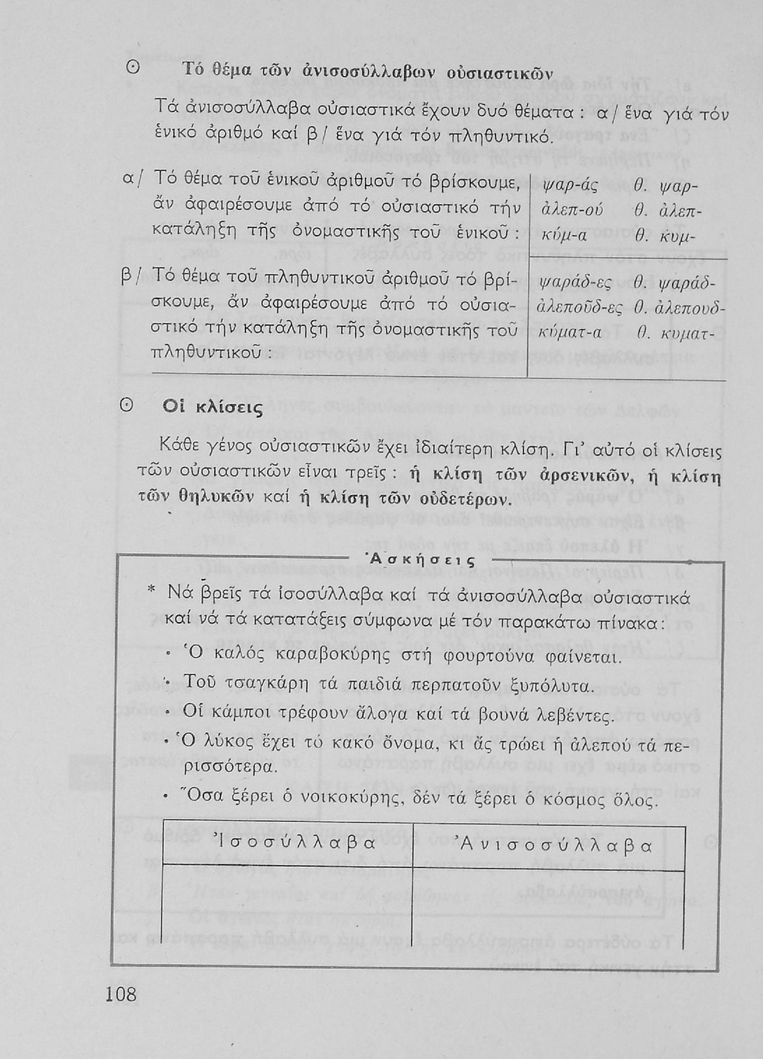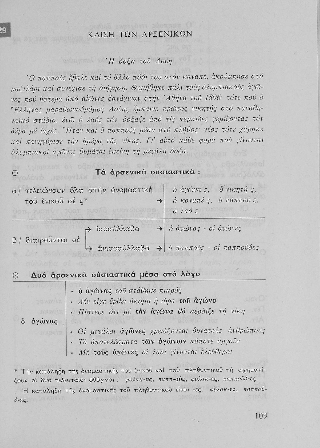 Σχολικό εγχειρίδιο για την Ε΄ και ΣΤ΄ τάξη Δημοτικού με γραμματικούς κανόνες και παραδείγματα για τα κλιτά και άκλιτα μέρη του λόγου.