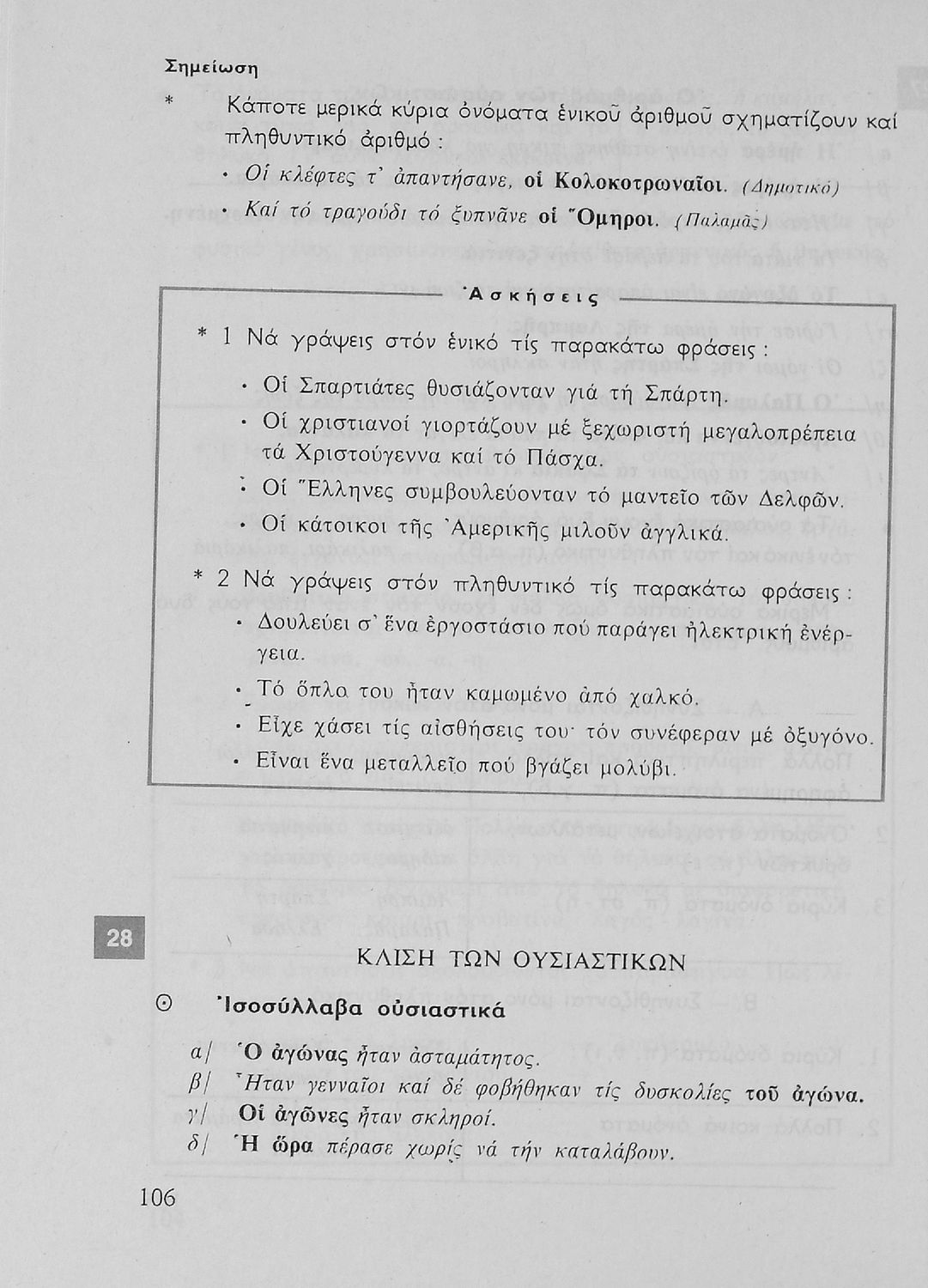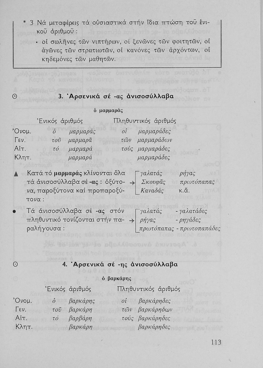 Βαθμίδα εκπαίδευσης: Πρωτοβάθμια Τάξη: Ε' Δημοτικού / ΣΤ' Δημοτικού Μάθημα: Νέα Ελληνικά Γλώσσα: Δημοτική Παρουσίαση περιεχομένου: Σχολικό εγχειρίδιο για την Ε΄ και ΣΤ΄ τάξη Δημοτικού με γραμματικούς κανόνες και παραδείγματα για τα κλιτά και άκλιτα μέρη του λόγου. |