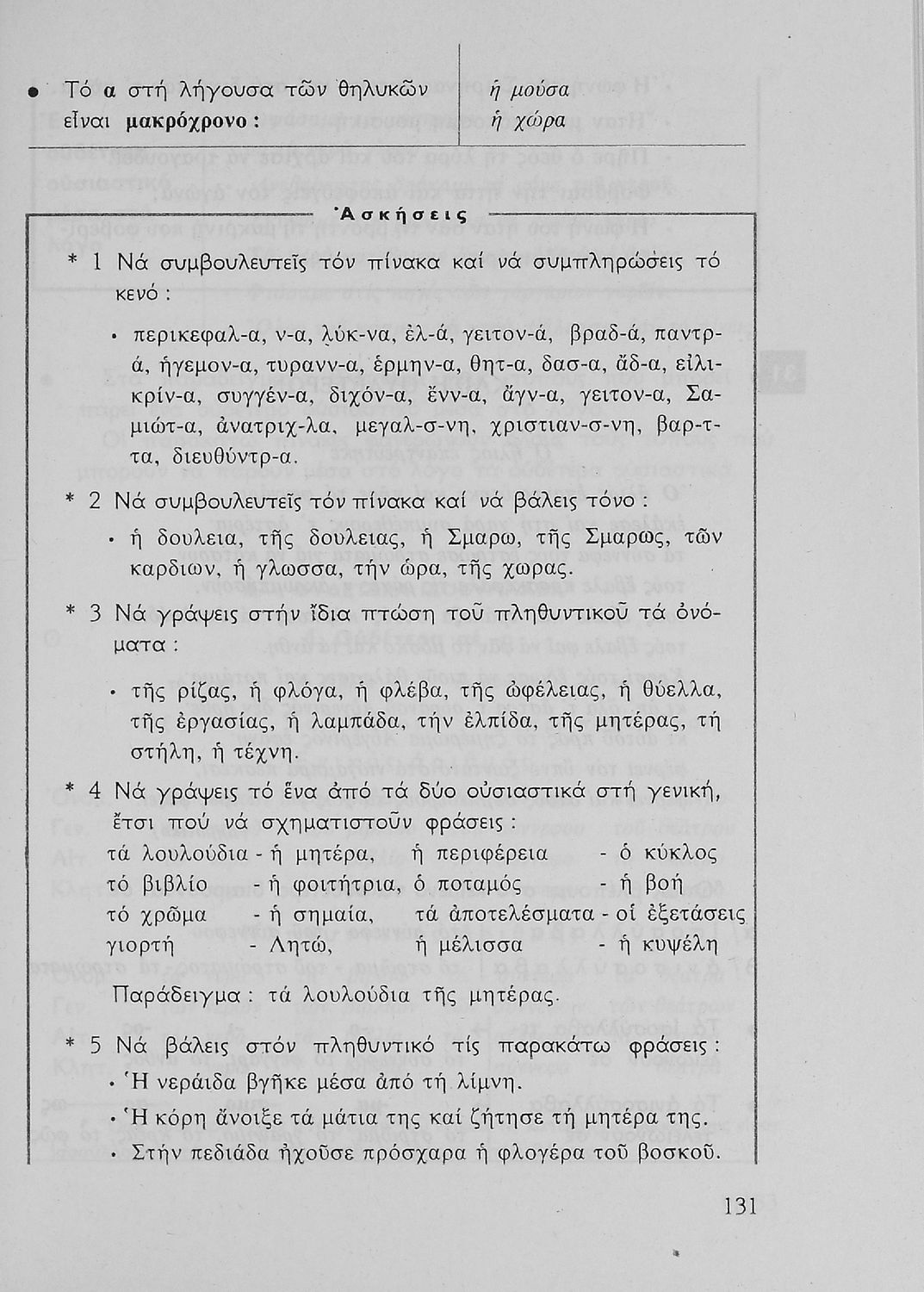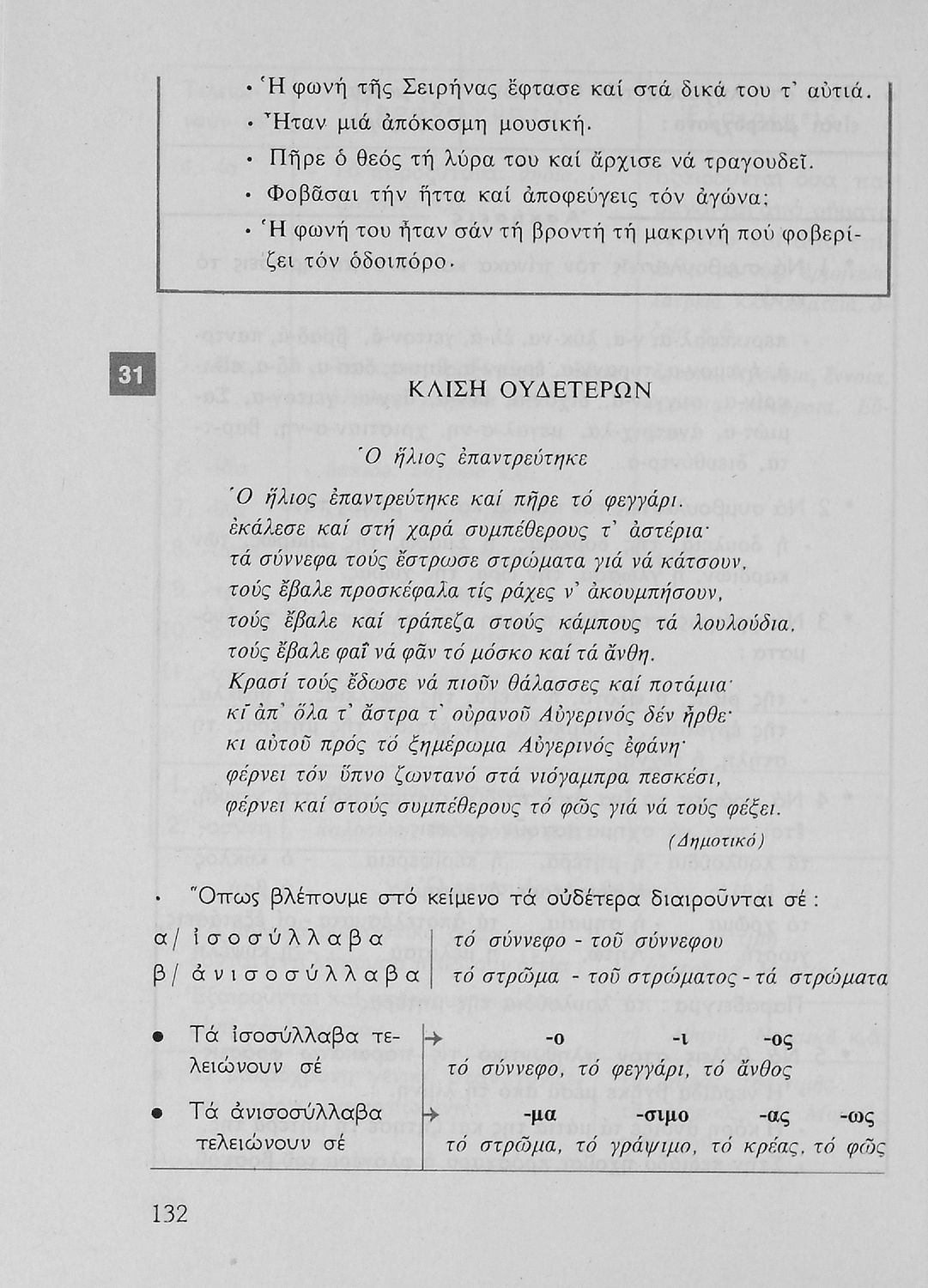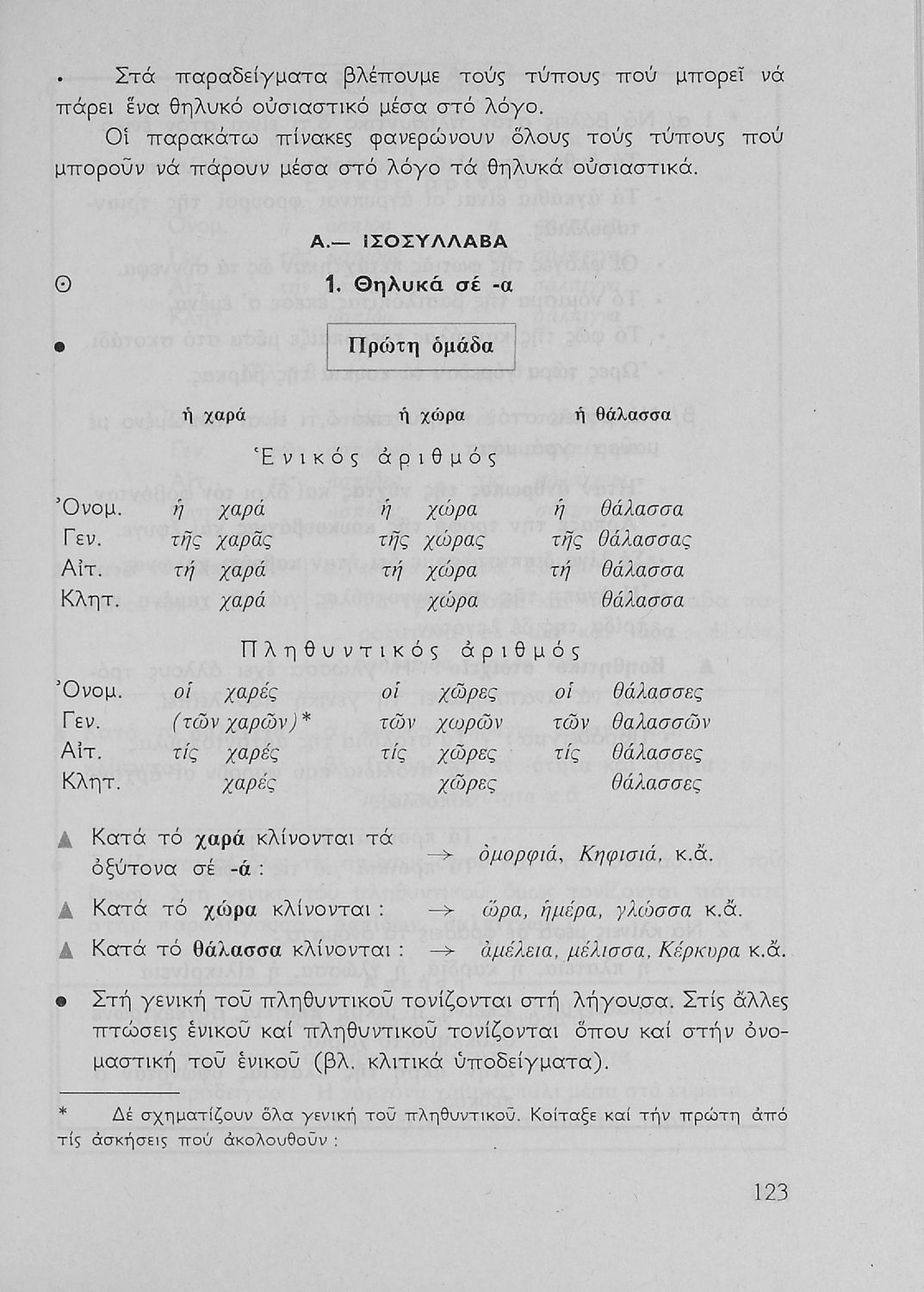 Σχολικό εγχειρίδιο της Ε΄ και ΣΤ΄ τάξης Δημοτικού για την γραμματική της ελληνικής γλώσσας με κανόνες και παραδείγματα. Στο επίμετρο υπάρχουν πίνακες με ανώμαλους σχηματισμούς ρημάτων.