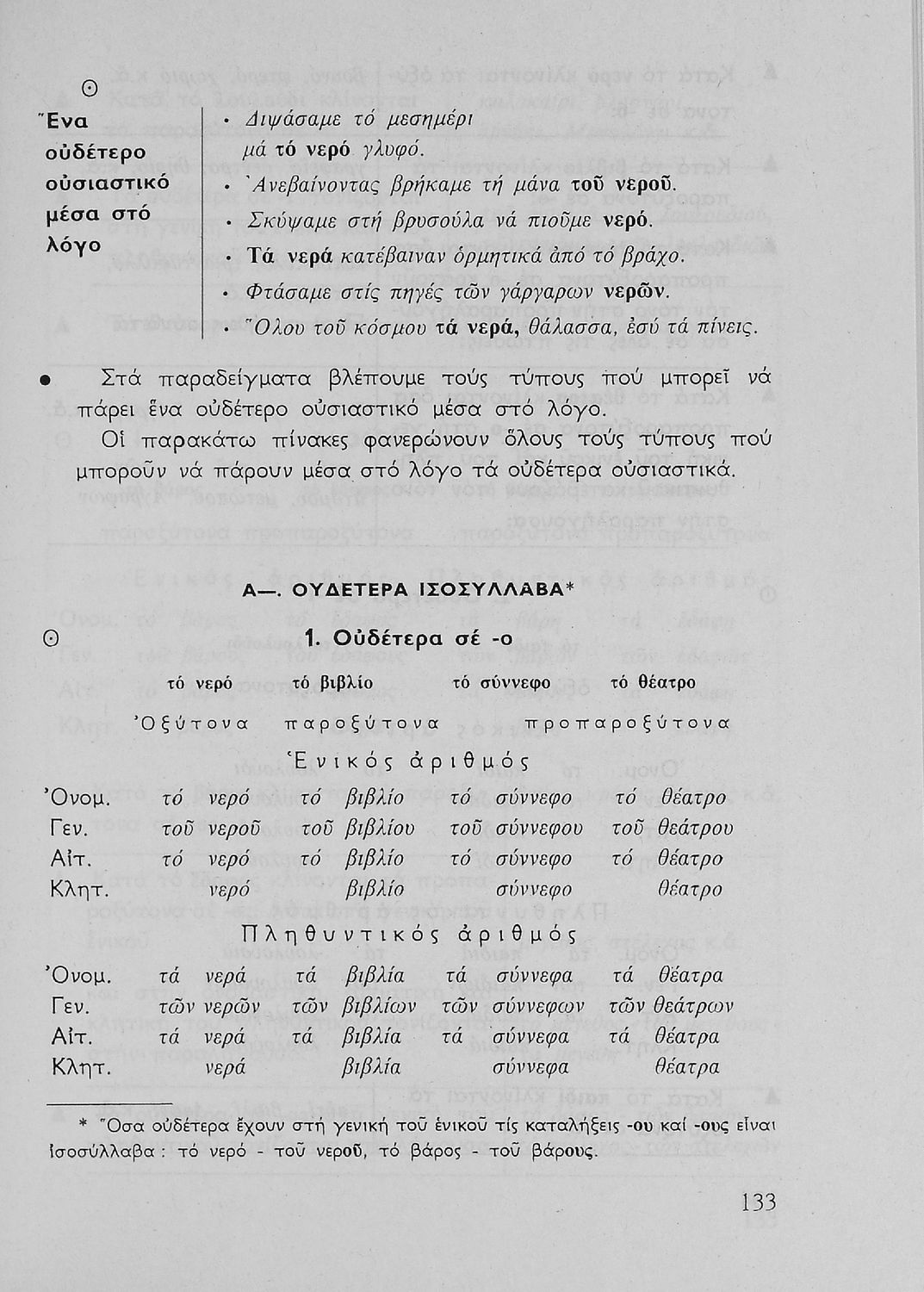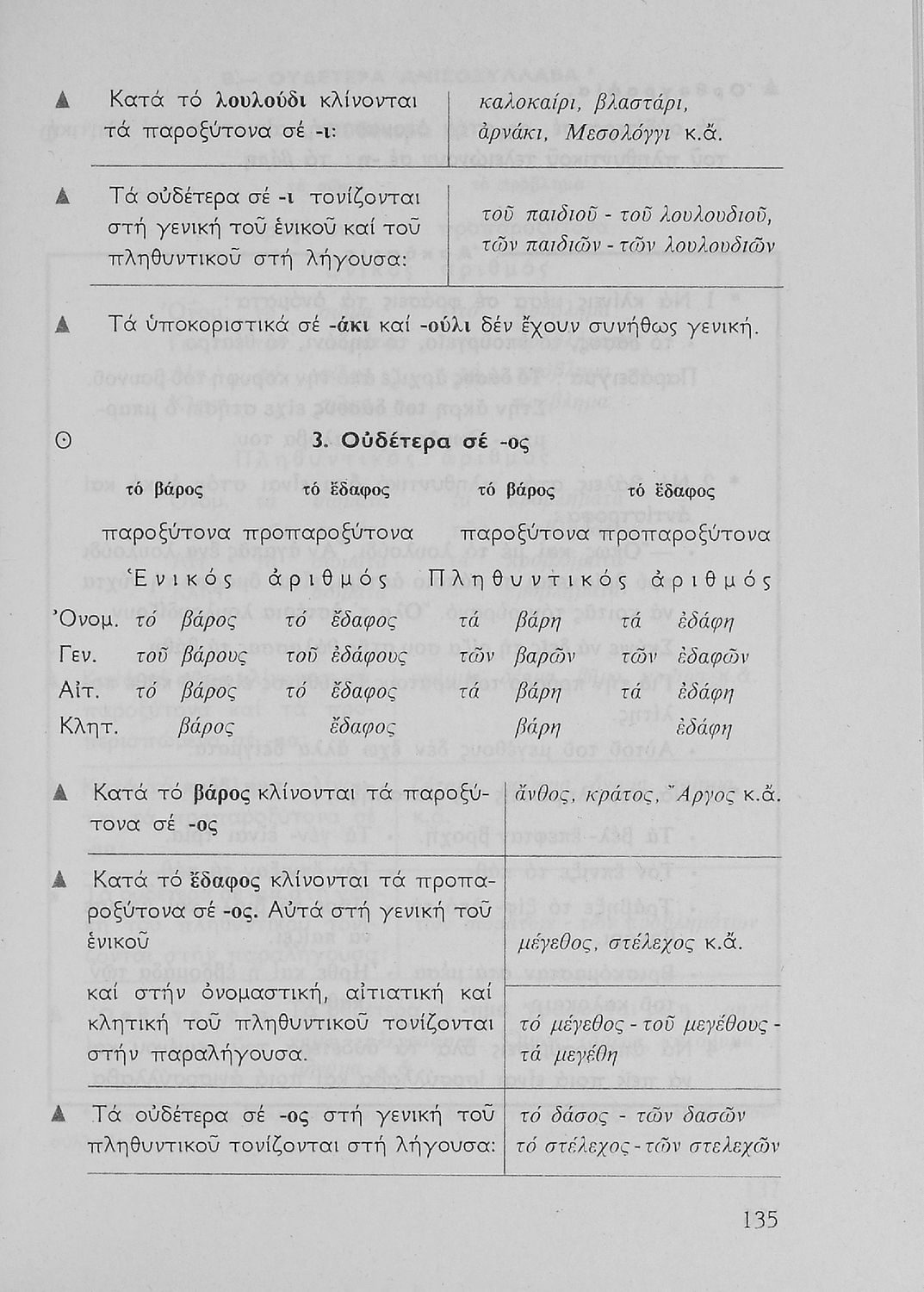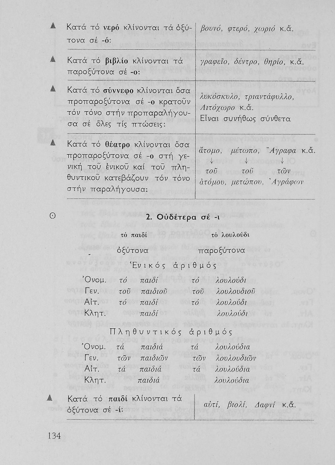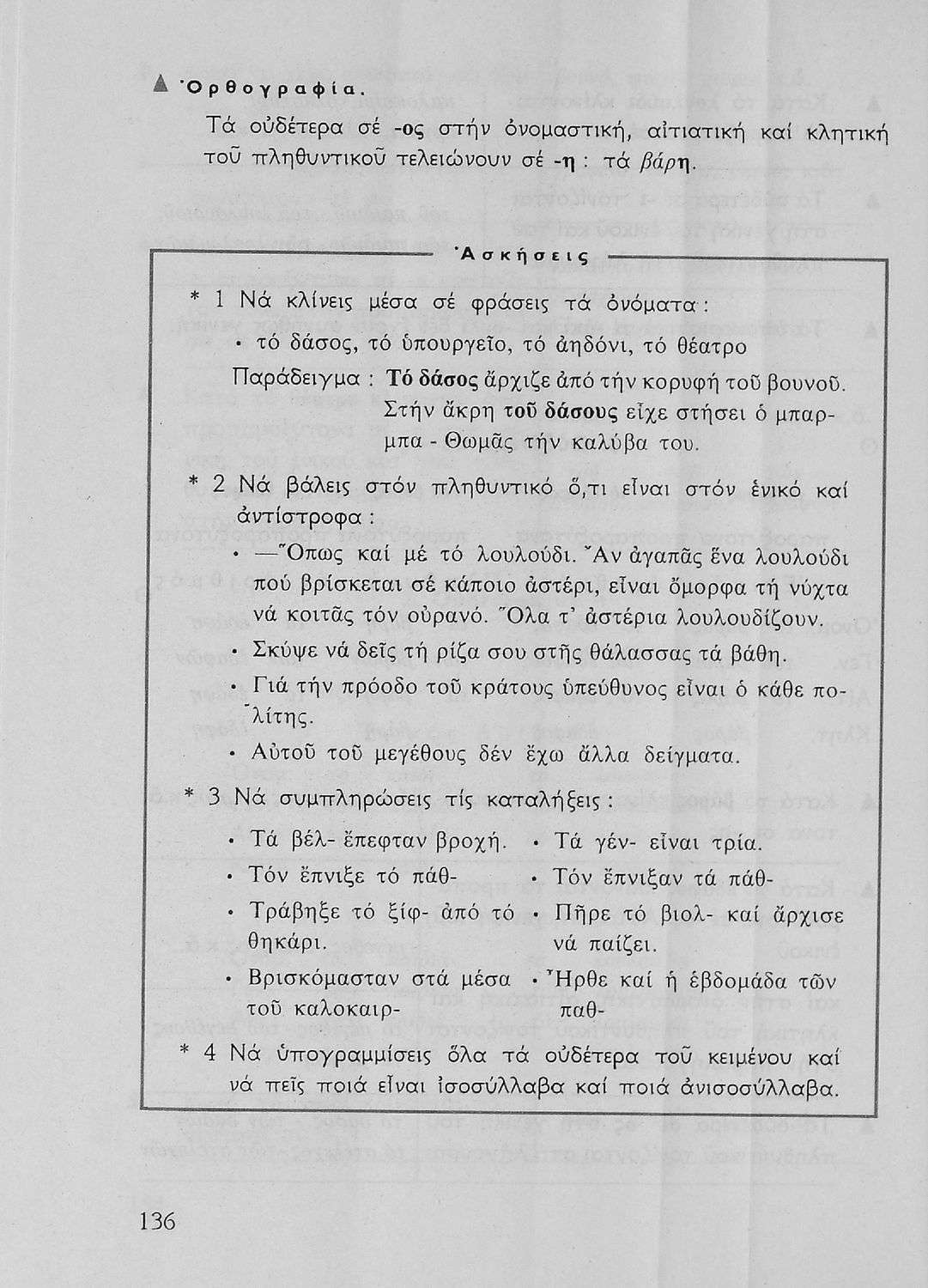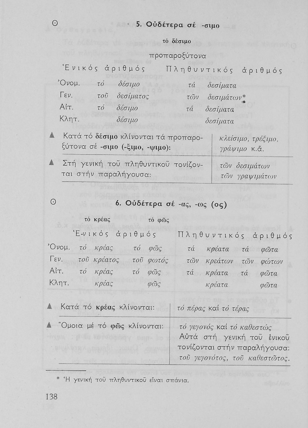 Σχολικό εγχειρίδιο για την Ε΄ και ΣΤ΄ τάξη Δημοτικού με γραμματικούς κανόνες και παραδείγματα για τα κλιτά και άκλιτα μέρη του λόγου.