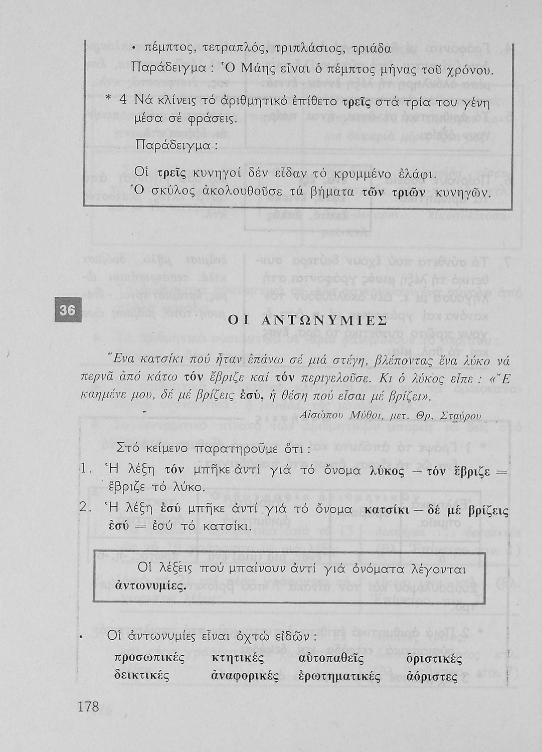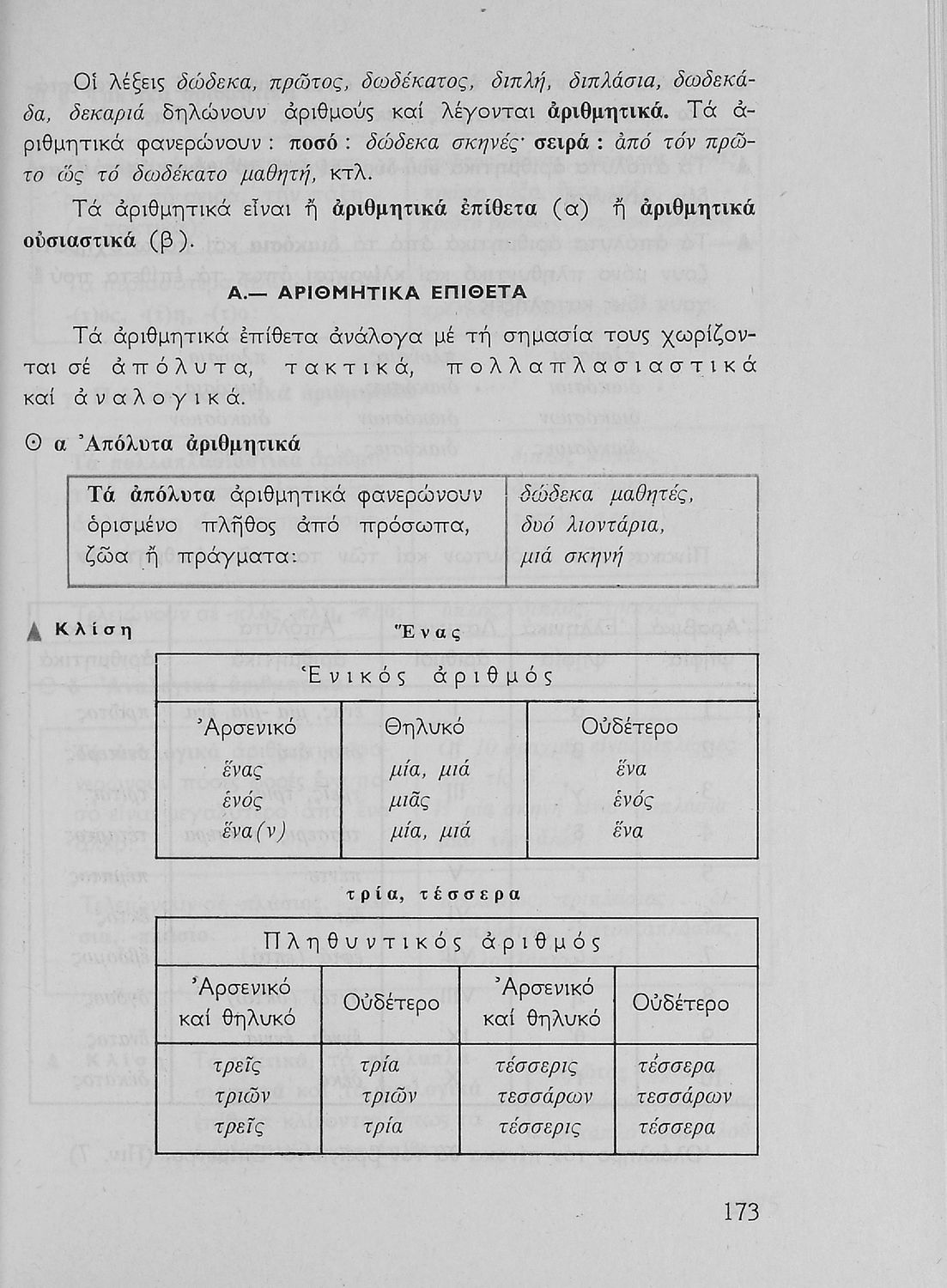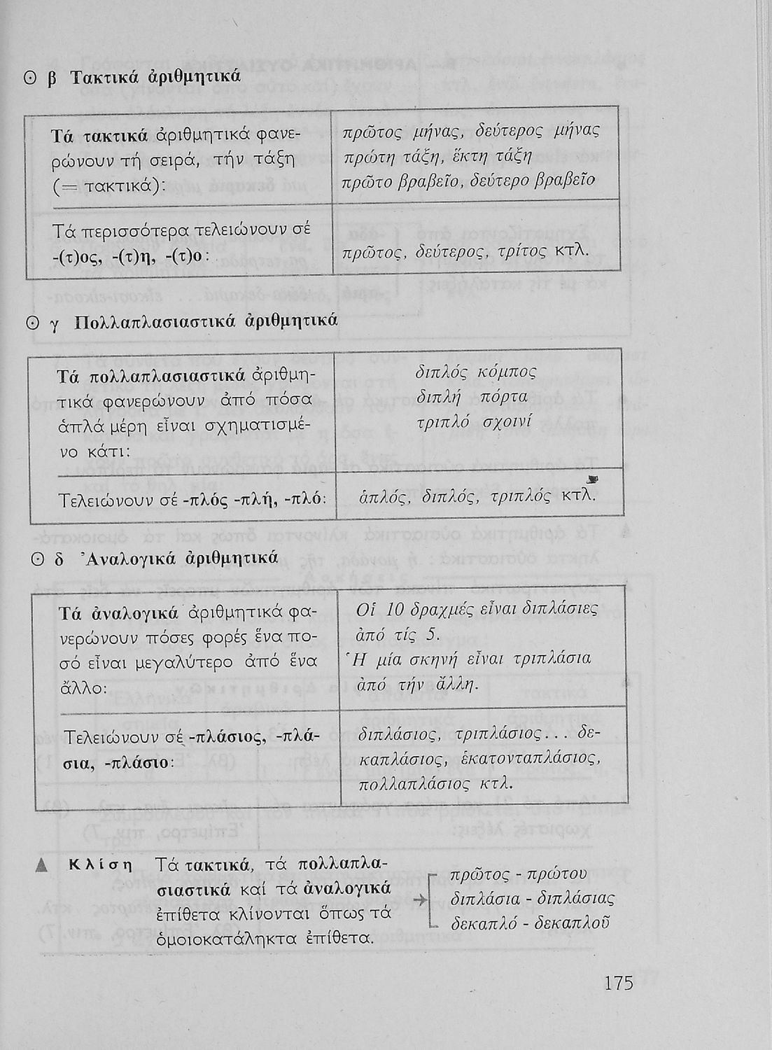 Σχολικό εγχειρίδιο για την Ε΄ και ΣΤ΄ τάξη Δημοτικού με γραμματικούς κανόνες και παραδείγματα για τα κλιτά και άκλιτα μέρη του λόγου.