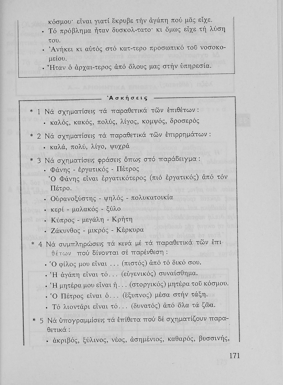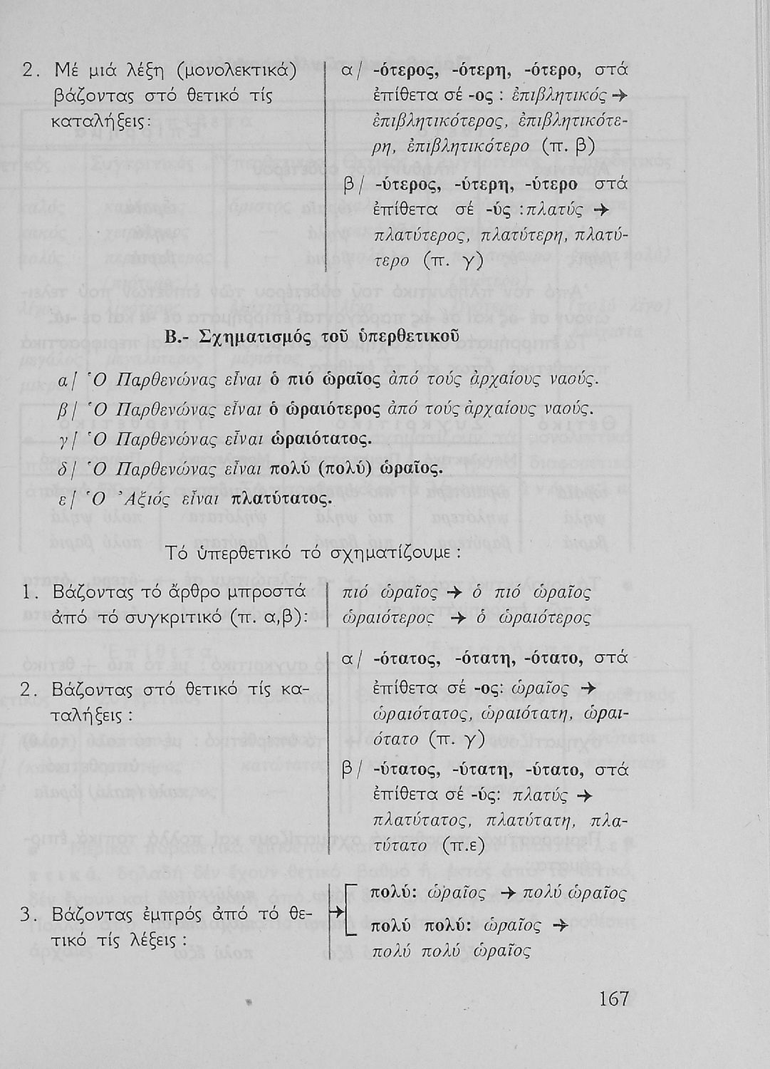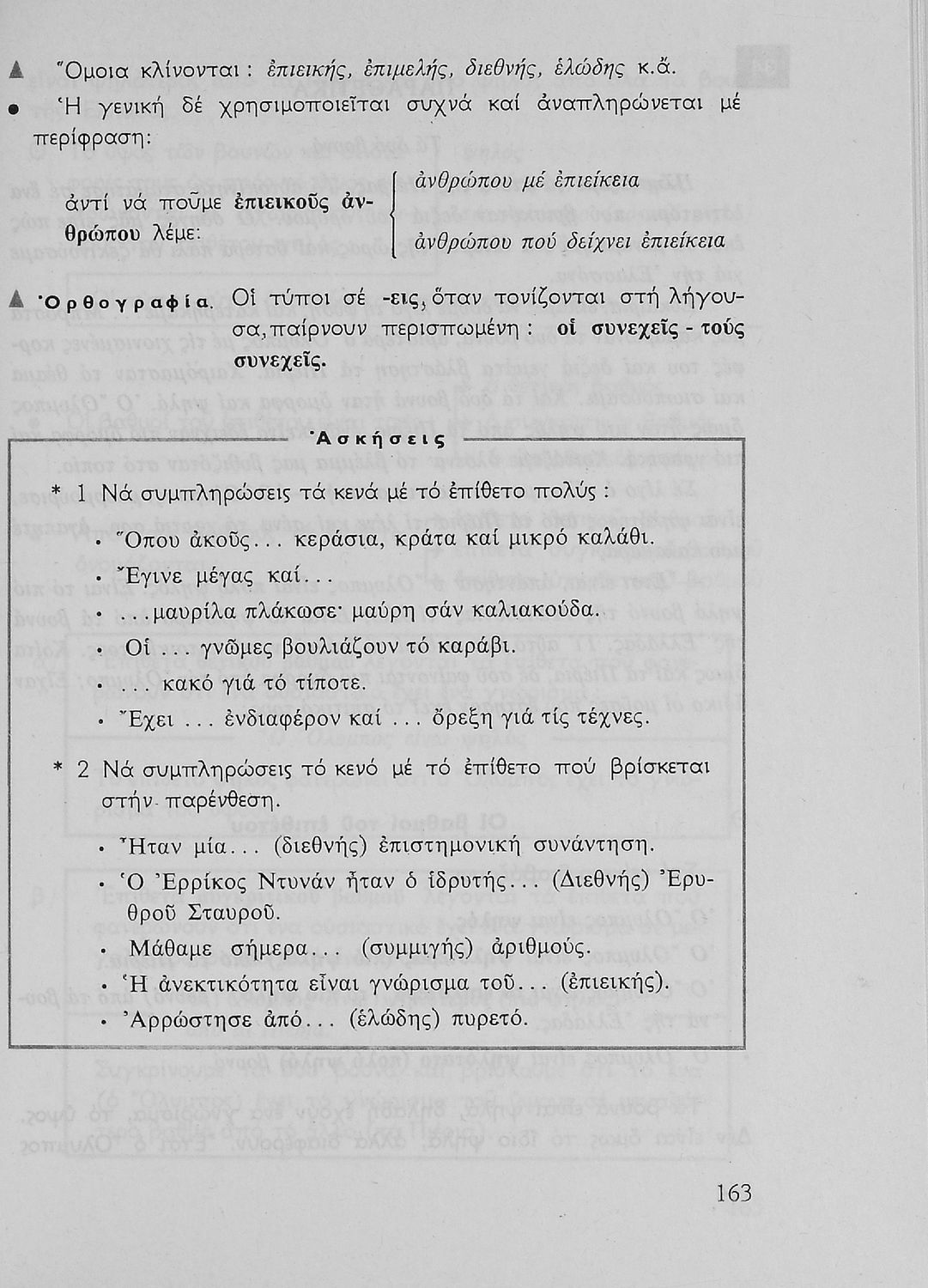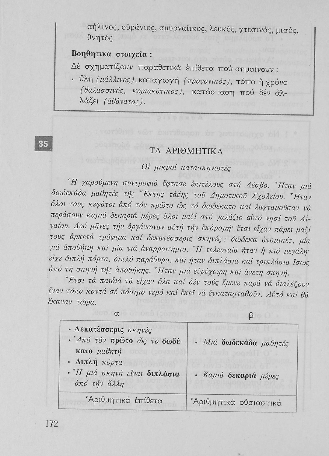 Σχολικό εγχειρίδιο για την Ε΄ και ΣΤ΄ τάξη Δημοτικού με γραμματικούς κανόνες και παραδείγματα για τα κλιτά και άκλιτα μέρη του λόγου.