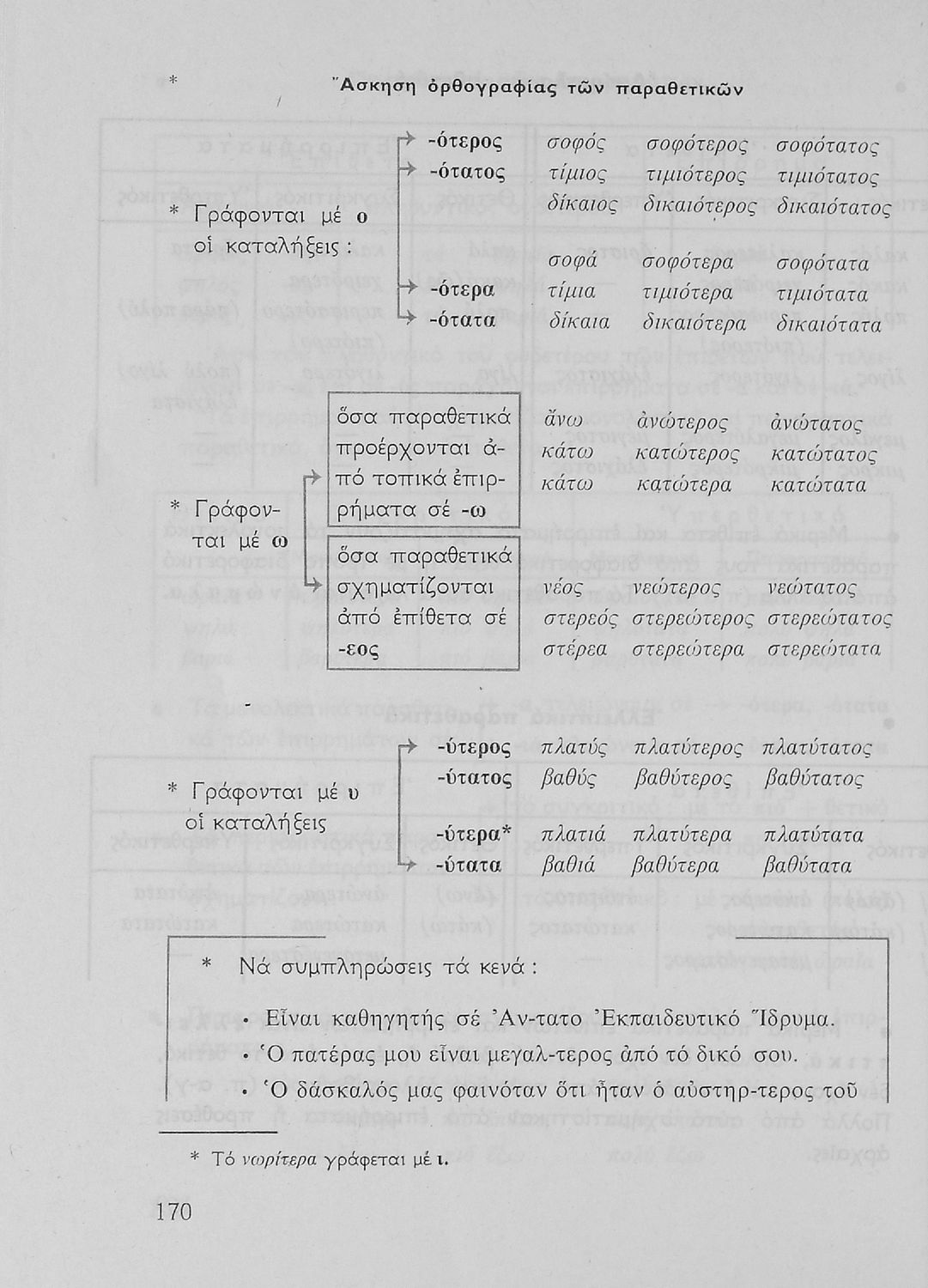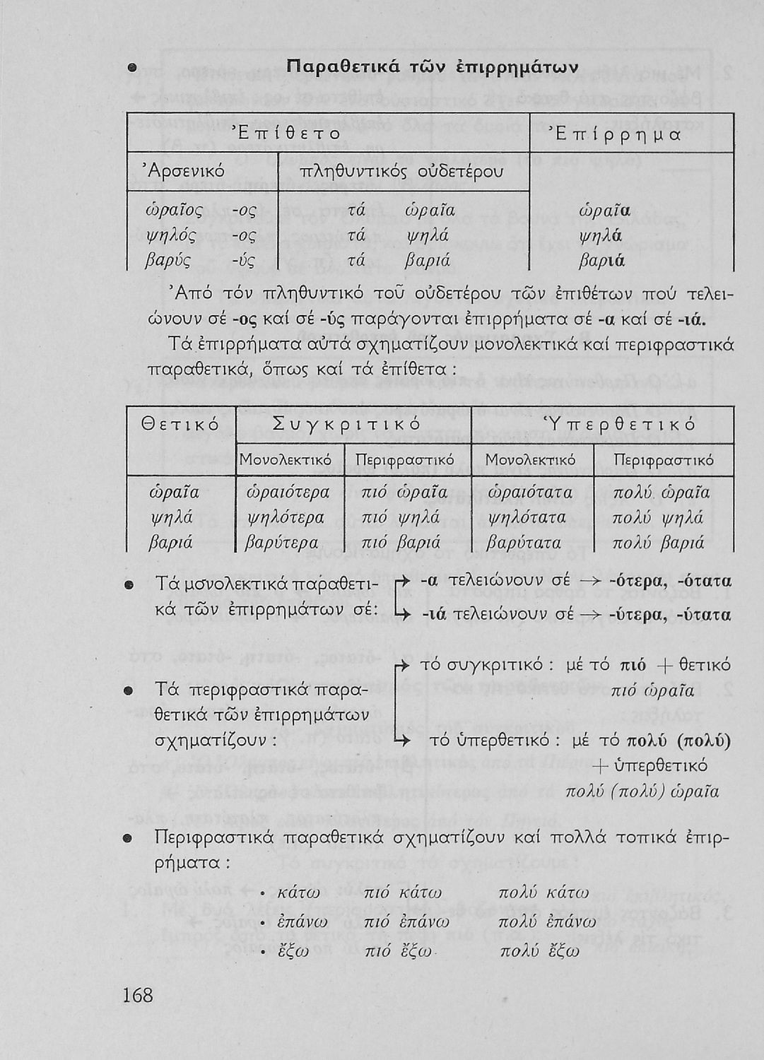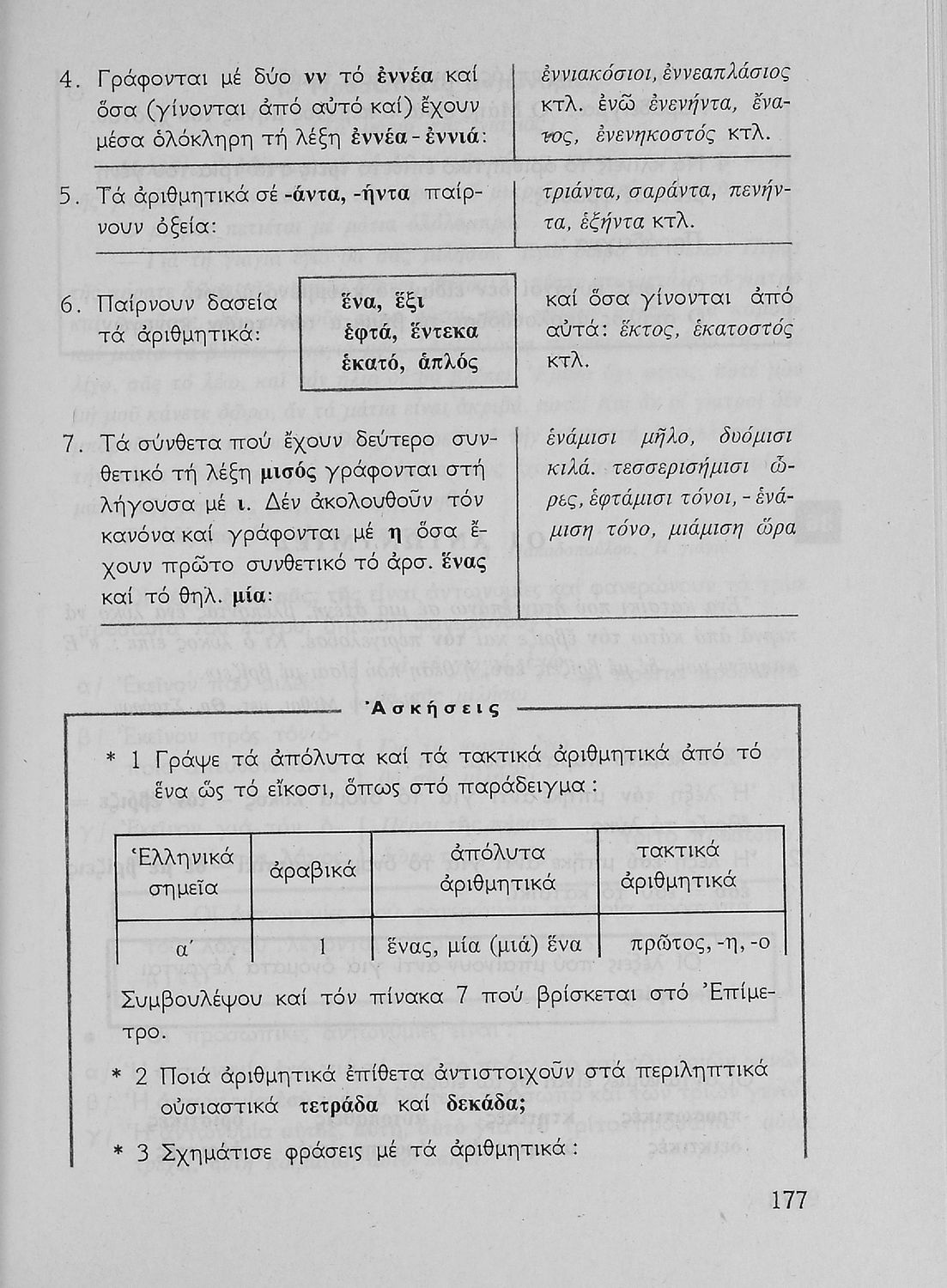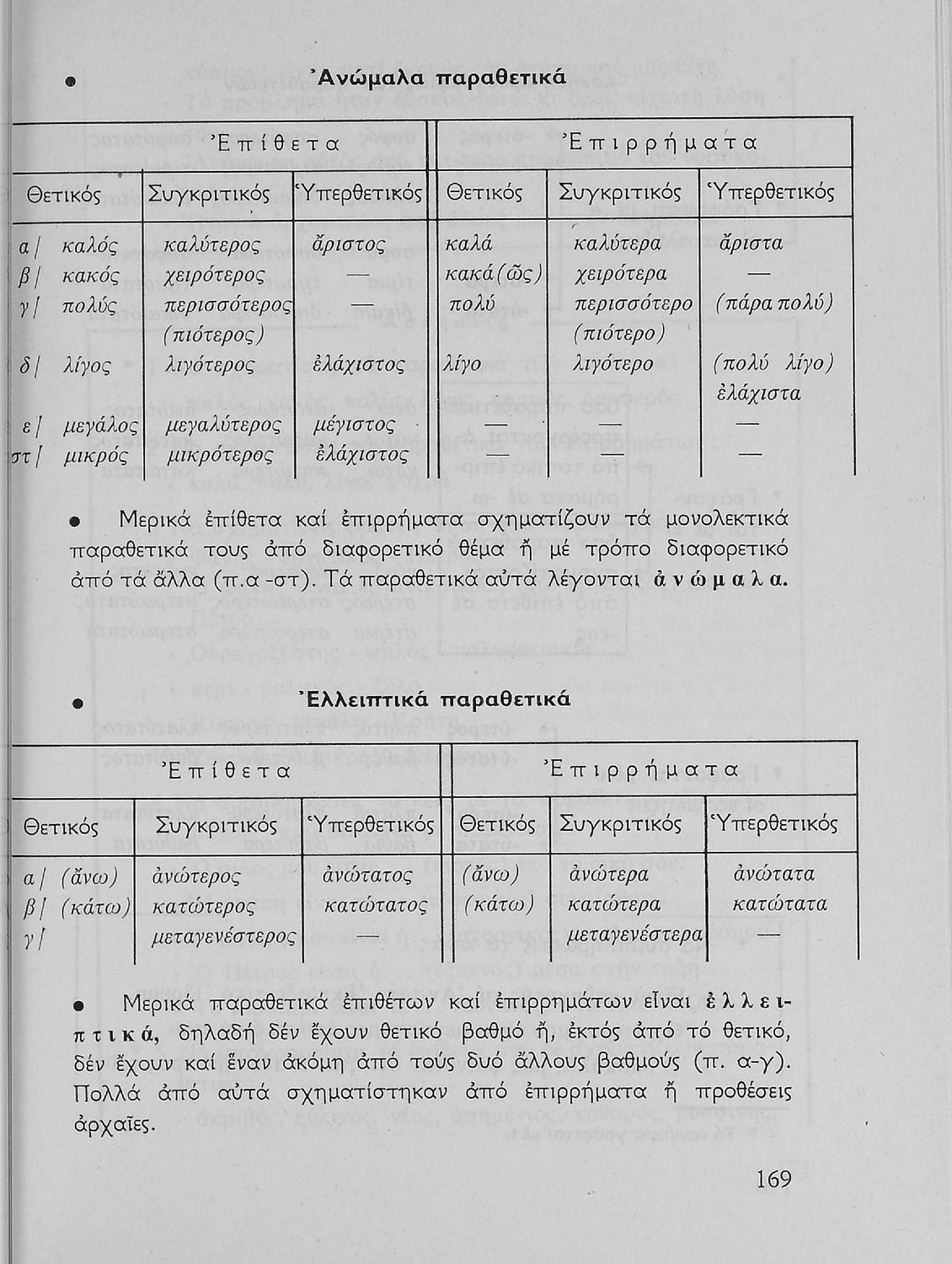 Σχολικό εγχειρίδιο της Ε΄ και ΣΤ΄ τάξης Δημοτικού για την γραμματική της ελληνικής γλώσσας με κανόνες και παραδείγματα. Στο επίμετρο υπάρχουν πίνακες με ανώμαλους σχηματισμούς ρημάτων.
