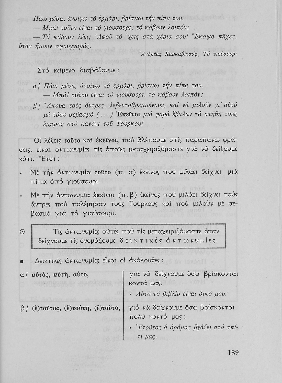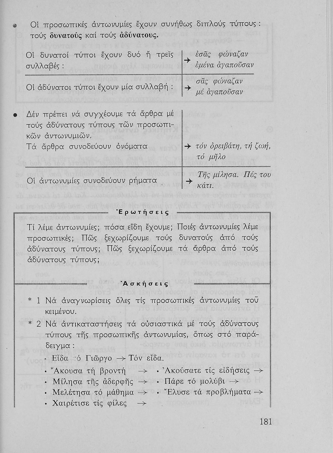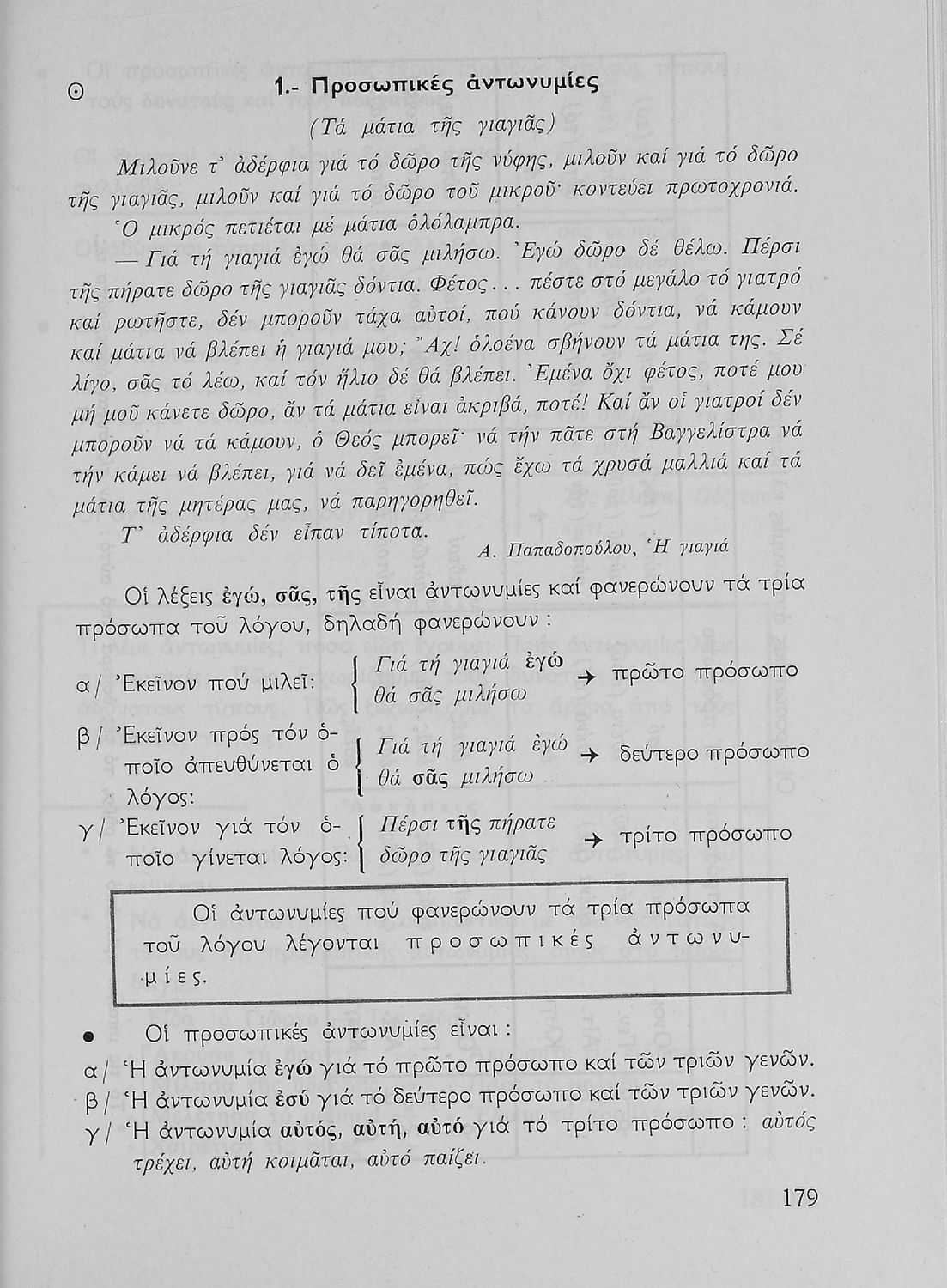 Βαθμίδα εκπαίδευσης: Πρωτοβάθμια Τάξη: Ε' Δημοτικού / ΣΤ' Δημοτικού Μάθημα: Νέα Ελληνικά Γλώσσα: Δημοτική Παρουσίαση περιεχομένου: Σχολικό εγχειρίδιο για την Ε΄ και ΣΤ΄ τάξη Δημοτικού με γραμματικούς κανόνες και παραδείγματα για τα κλιτά και άκλιτα μέρη του λόγου. |