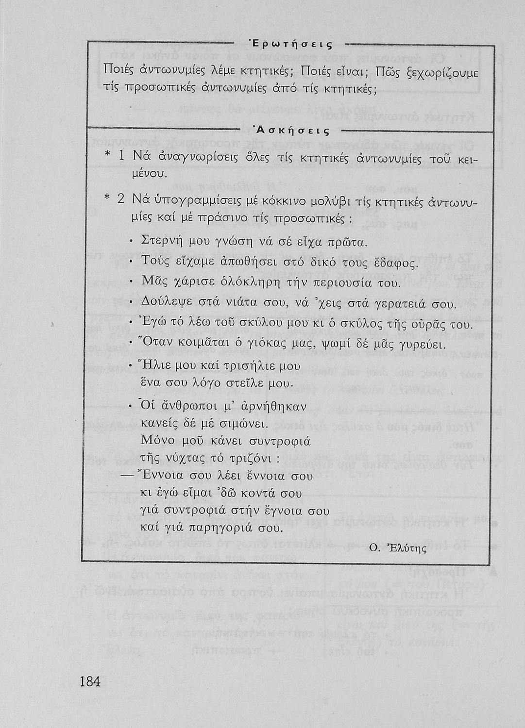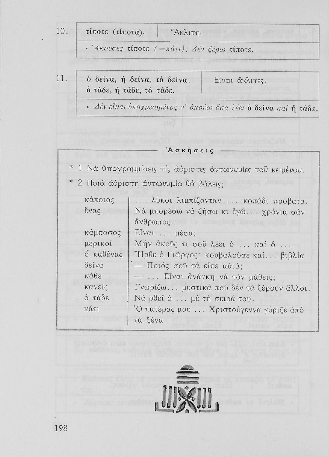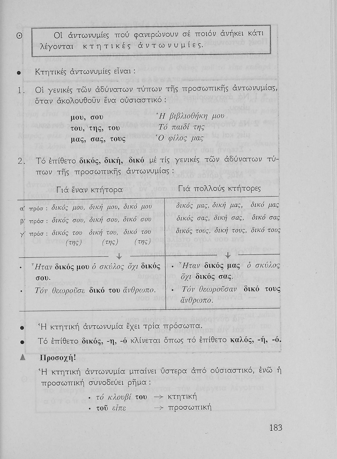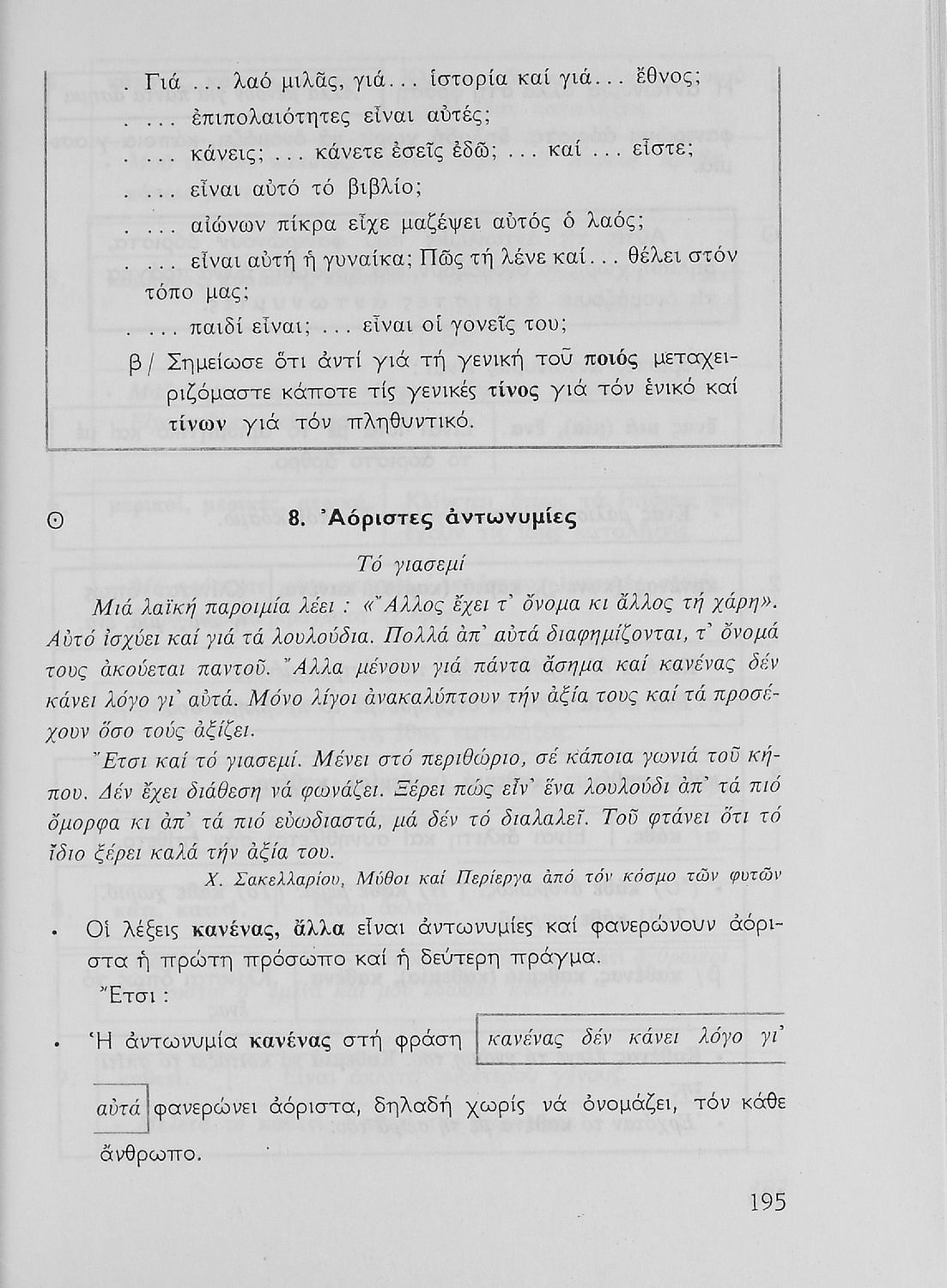 Βαθμίδα εκπαίδευσης: Πρωτοβάθμια Τάξη: Ε' Δημοτικού / ΣΤ' Δημοτικού Μάθημα: Νέα Ελληνικά Γλώσσα: Δημοτική Παρουσίαση περιεχομένου: Σχολικό εγχειρίδιο για την Ε΄ και ΣΤ΄ τάξη Δημοτικού με γραμματικούς κανόνες και παραδείγματα για τα κλιτά και άκλιτα μέρη του λόγου. |