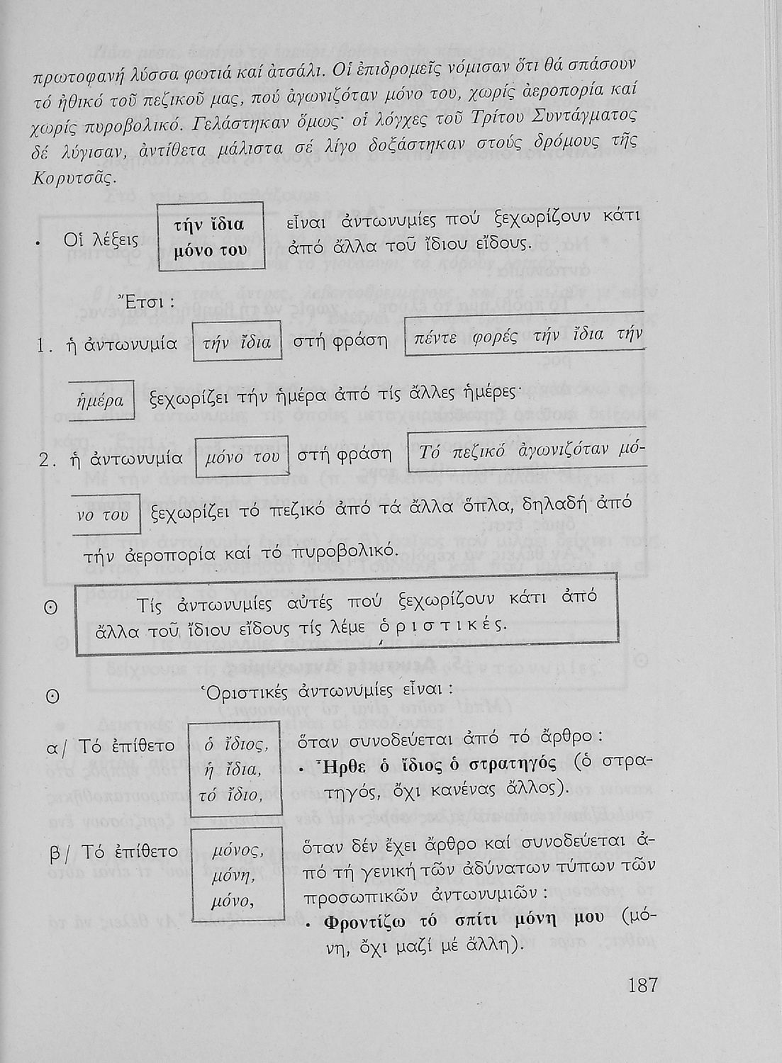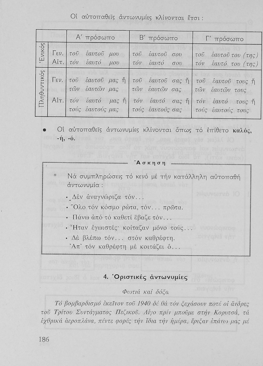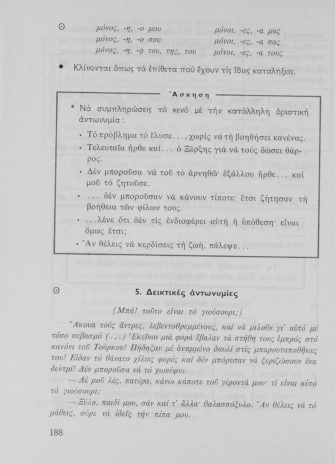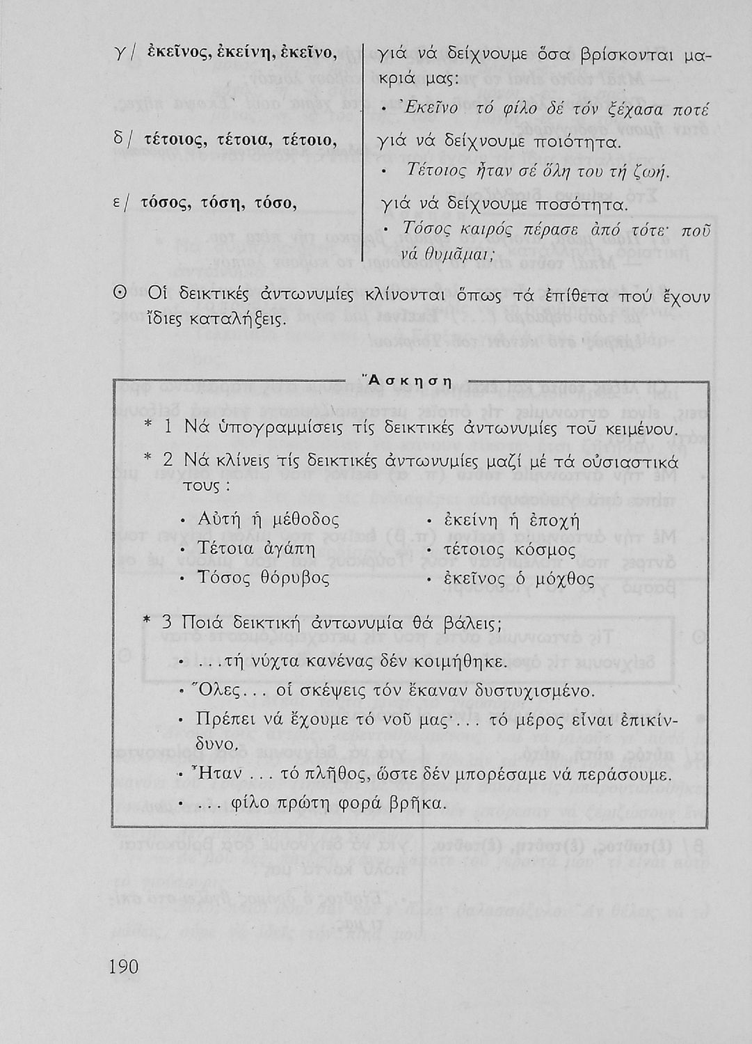 Σχολικό εγχειρίδιο για την Ε΄ και ΣΤ΄ τάξη Δημοτικού με γραμματικούς κανόνες και παραδείγματα για τα κλιτά και άκλιτα μέρη του λόγου.