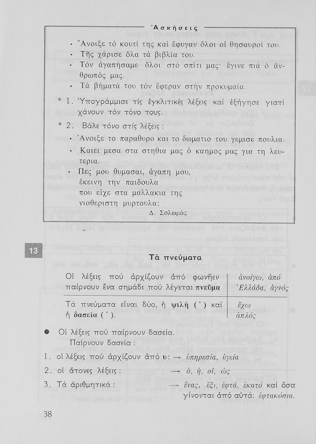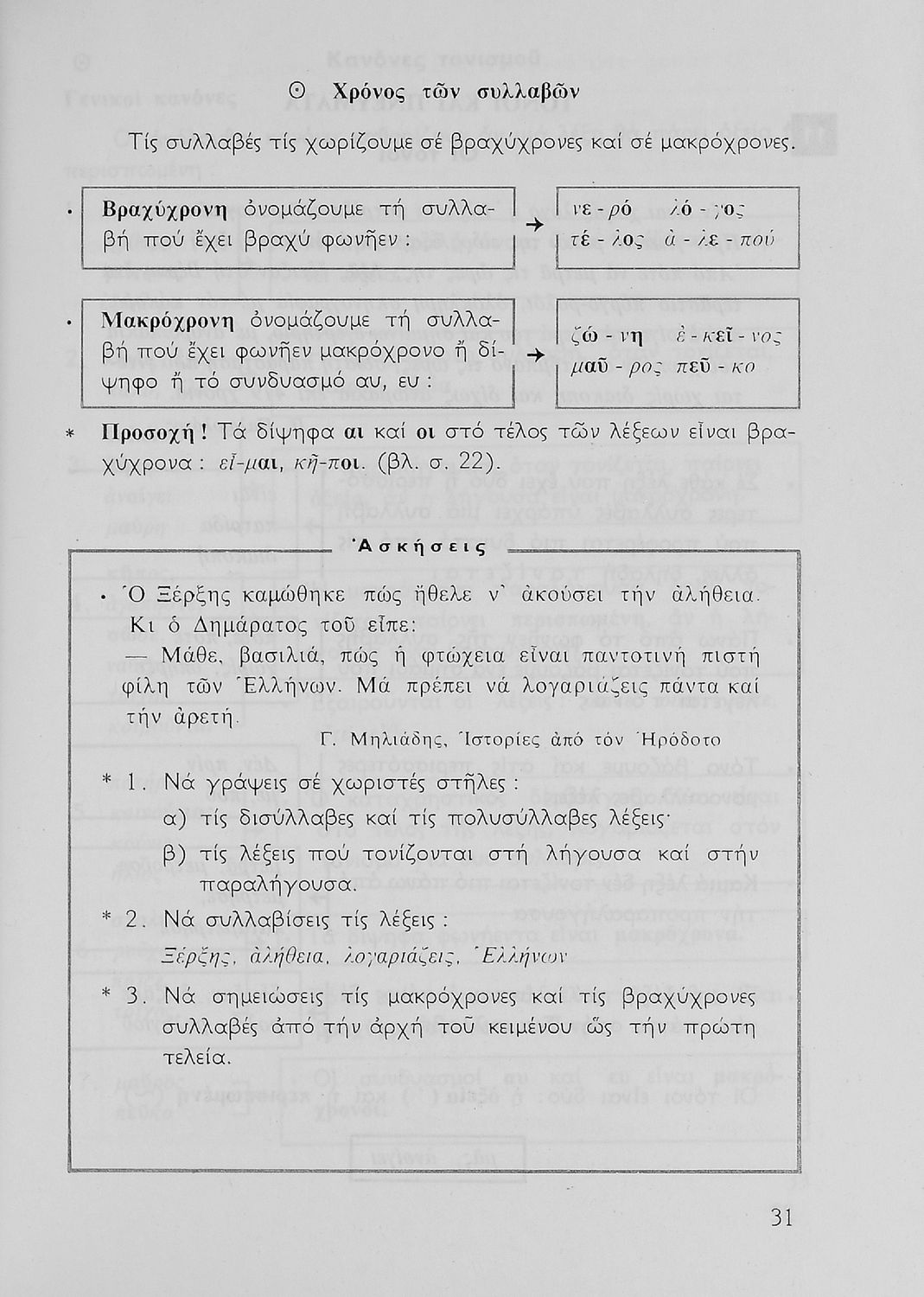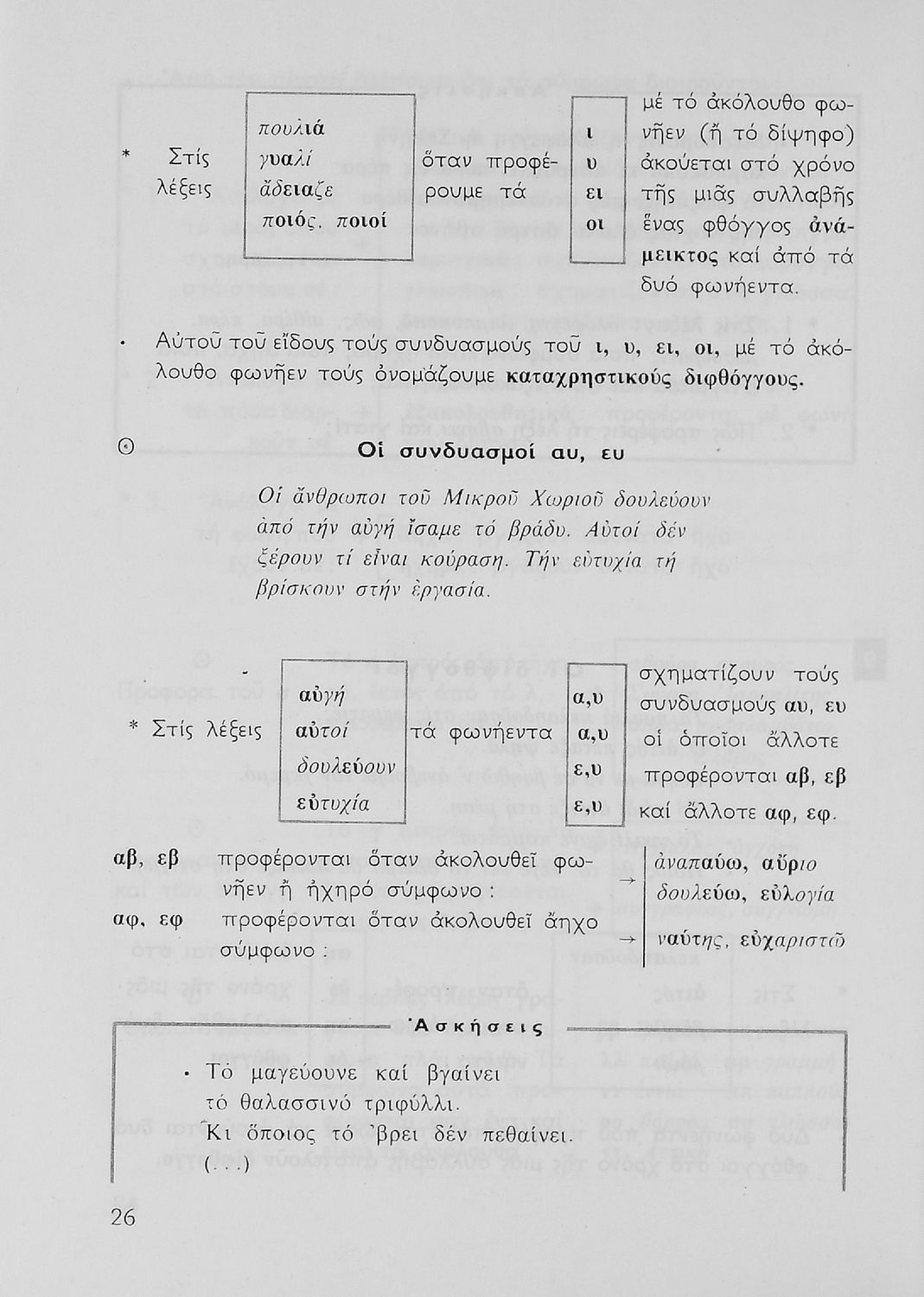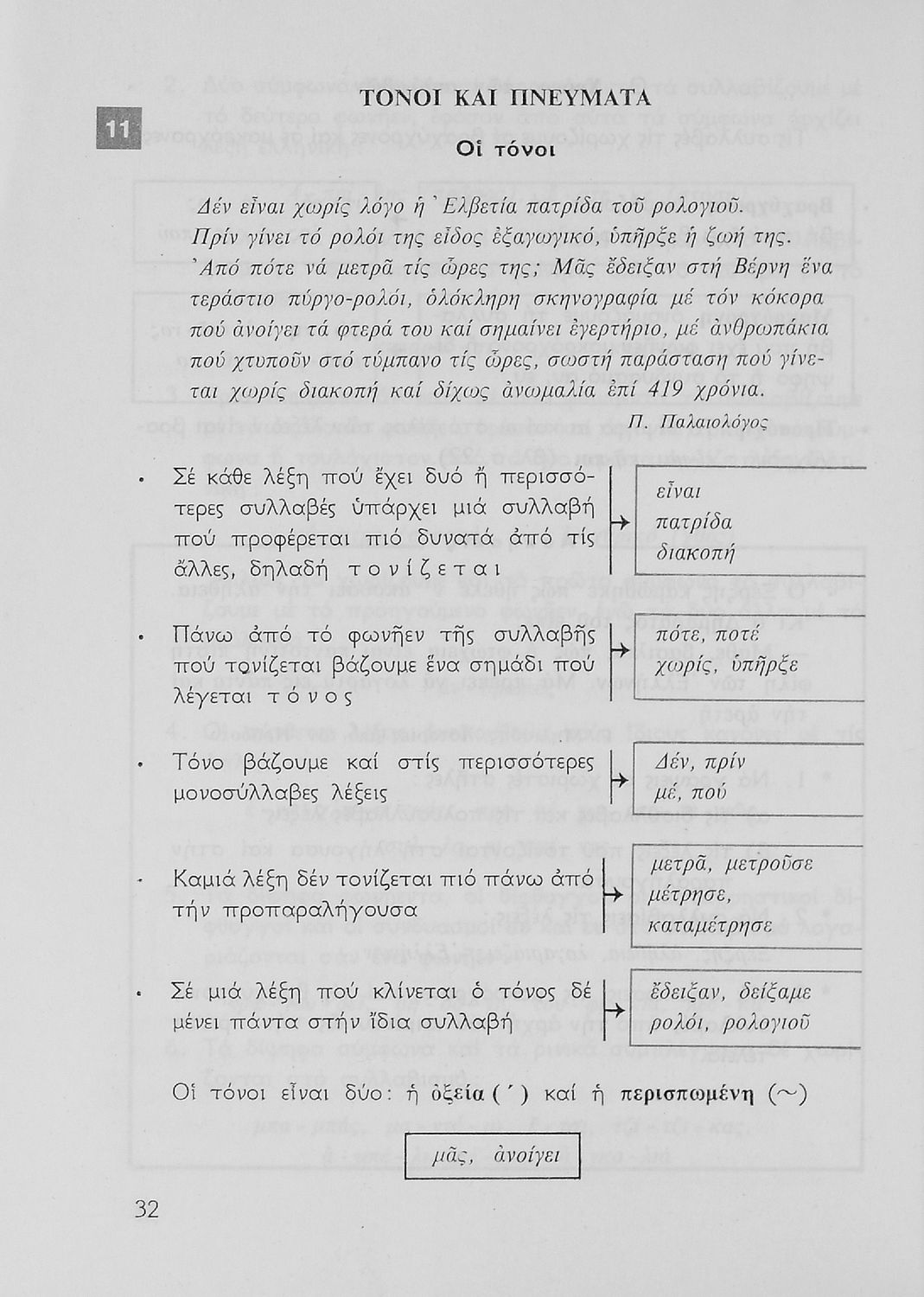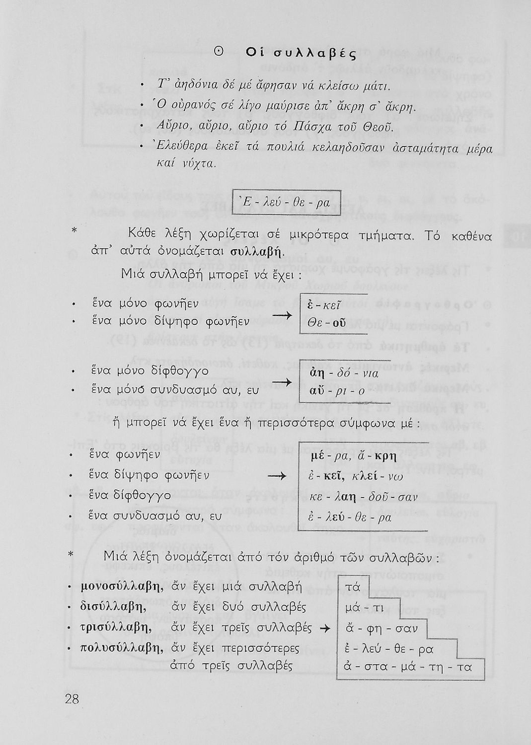 Βαθμίδα εκπαίδευσης: Πρωτοβάθμια Τάξη: Ε' Δημοτικού / ΣΤ' Δημοτικού Μάθημα: Νέα Ελληνικά Γλώσσα: Δημοτική Παρουσίαση περιεχομένου: Σχολικό εγχειρίδιο για την Ε΄ και ΣΤ΄ τάξη Δημοτικού με γραμματικούς κανόνες και παραδείγματα για τα κλιτά και άκλιτα μέρη του λόγου. |