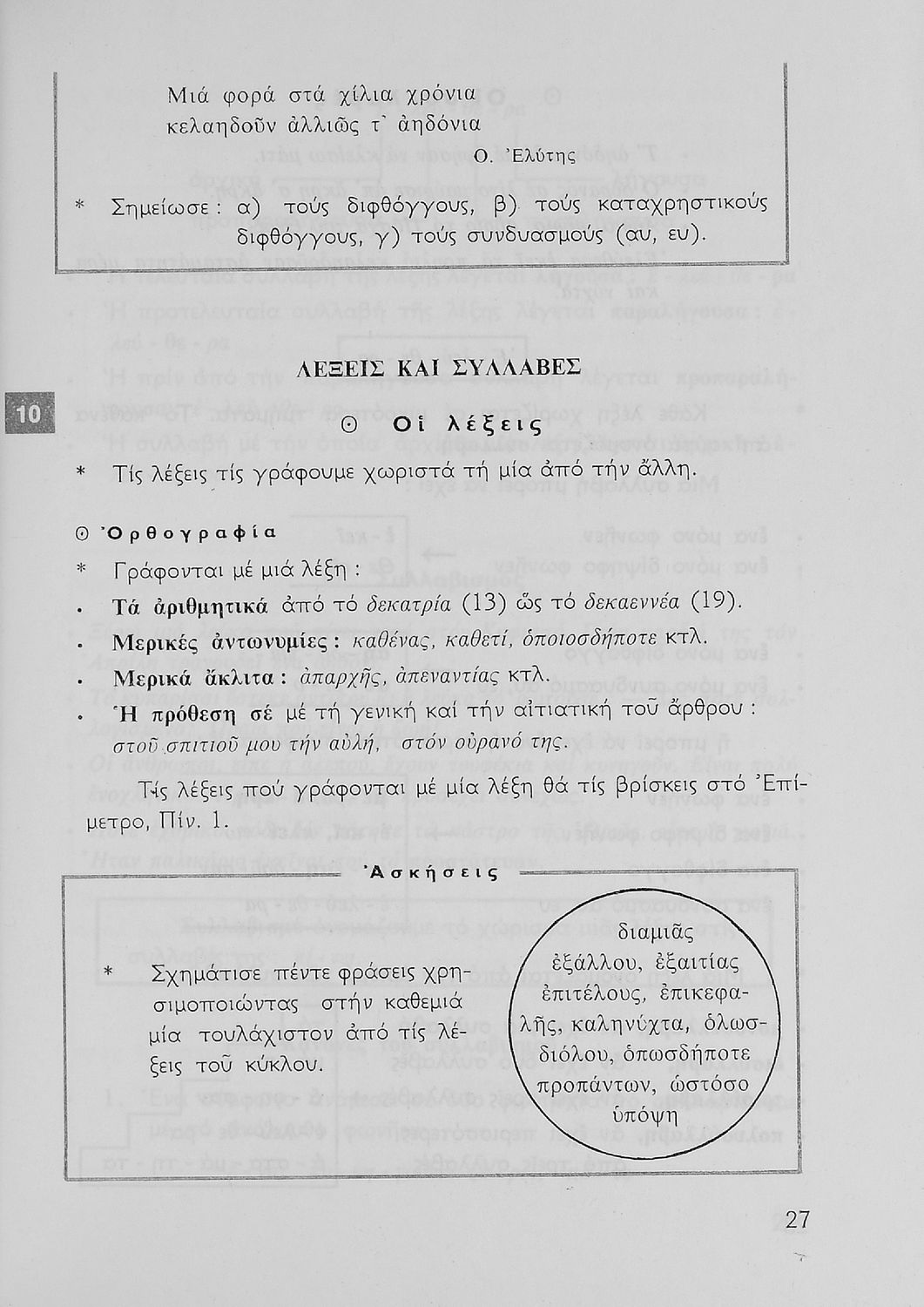 Σχολικό εγχειρίδιο για την Ε΄ και ΣΤ΄ τάξη Δημοτικού με γραμματικούς κανόνες και παραδείγματα για τα κλιτά και άκλιτα μέρη του λόγου.