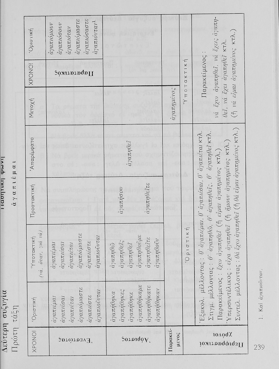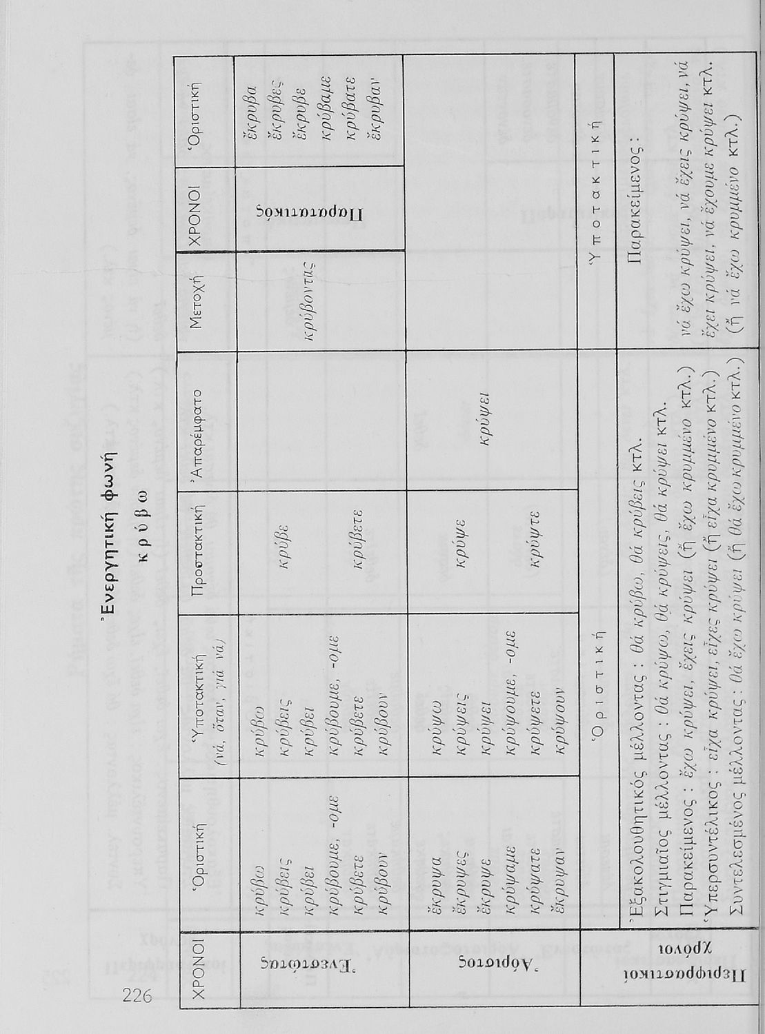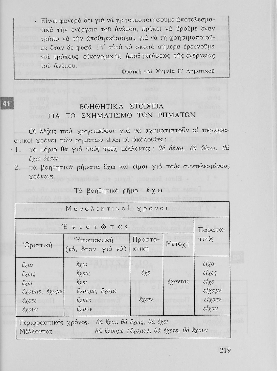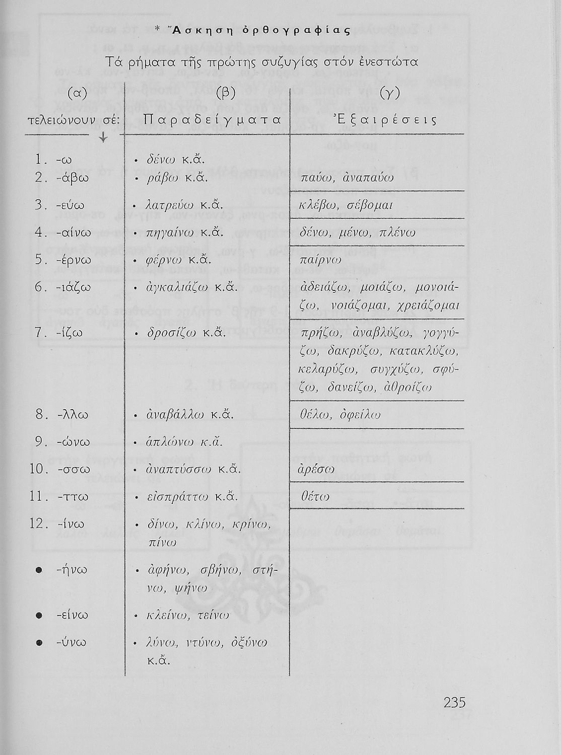 Σχολικό εγχειρίδιο της Ε΄ και ΣΤ΄ τάξης Δημοτικού για την γραμματική της ελληνικής γλώσσας με κανόνες και παραδείγματα. Στο επίμετρο υπάρχουν πίνακες με ανώμαλους σχηματισμούς ρημάτων.