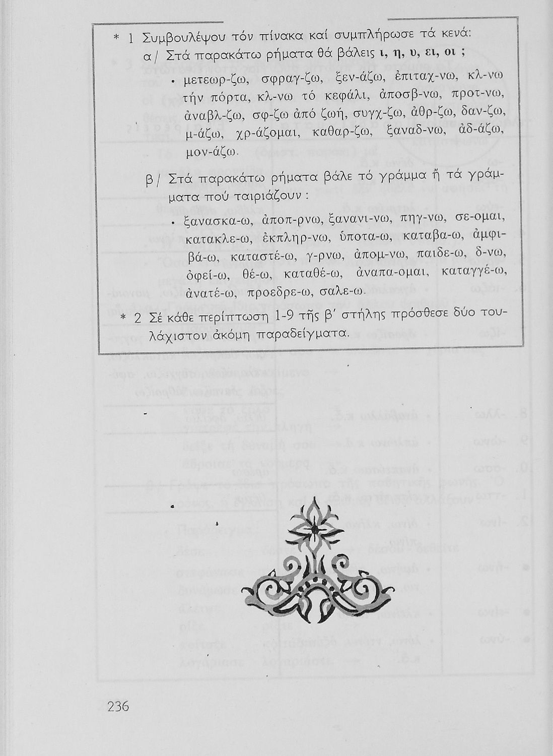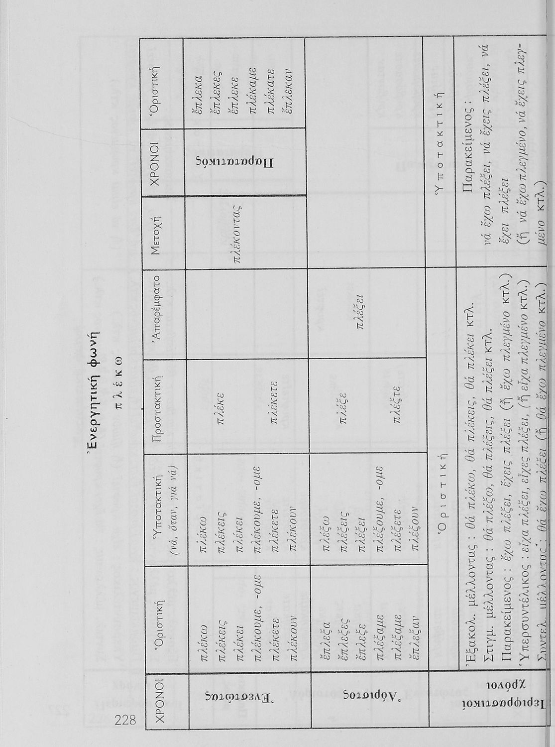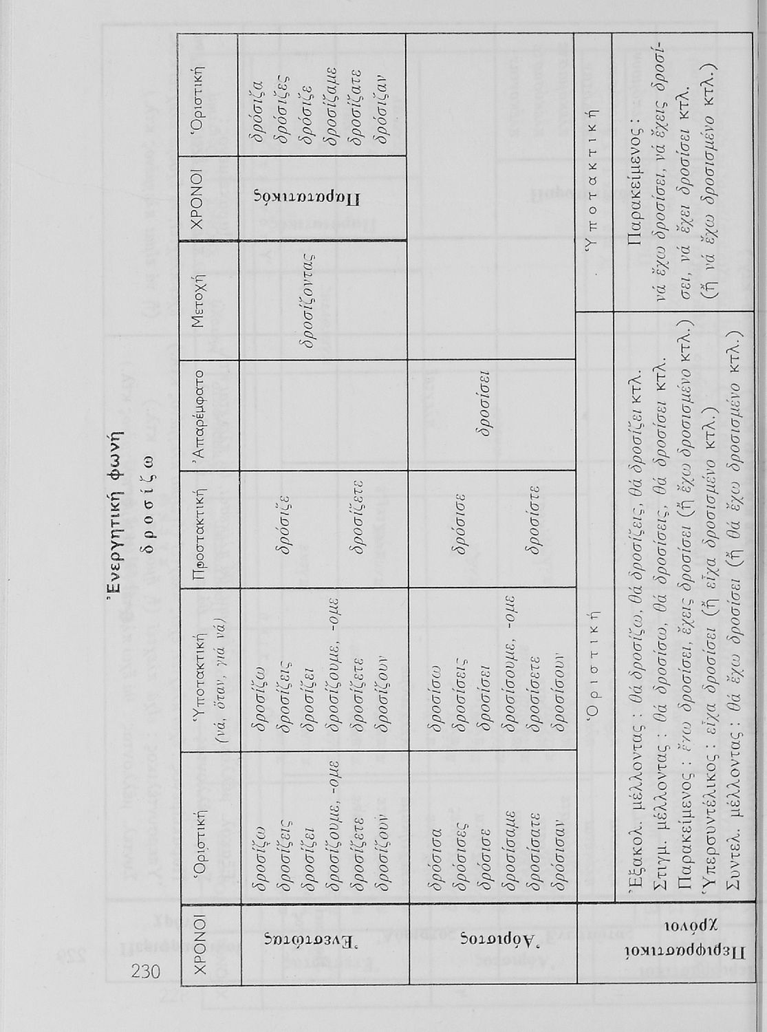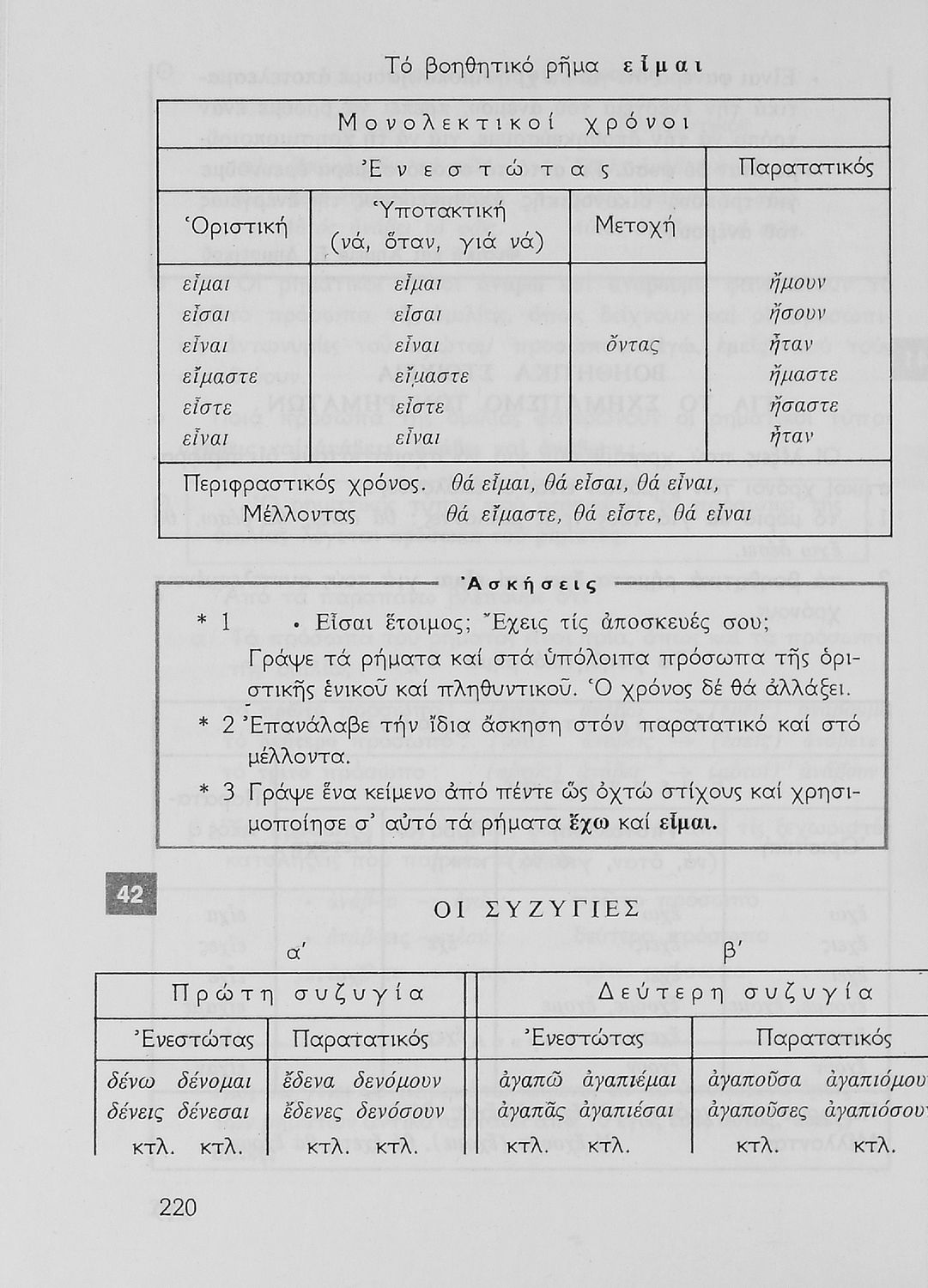 Σχολικό εγχειρίδιο της Ε΄ και ΣΤ΄ τάξης Δημοτικού για την γραμματική της ελληνικής γλώσσας με κανόνες και παραδείγματα. Στο επίμετρο υπάρχουν πίνακες με ανώμαλους σχηματισμούς ρημάτων.