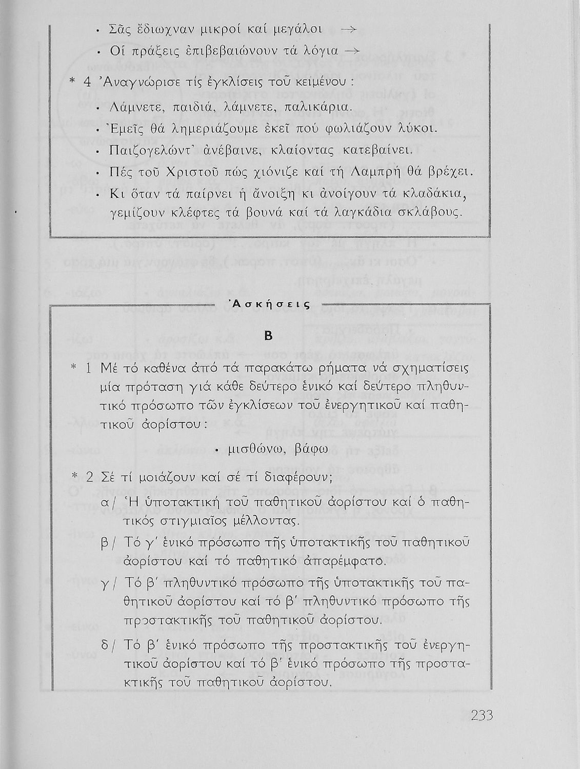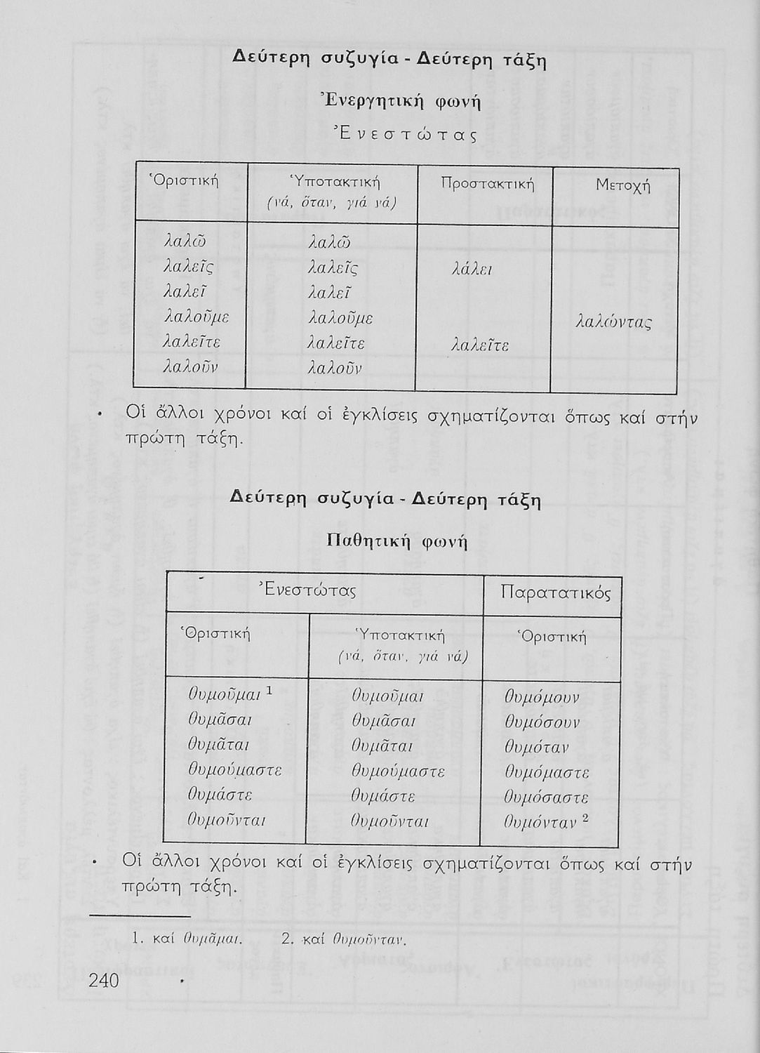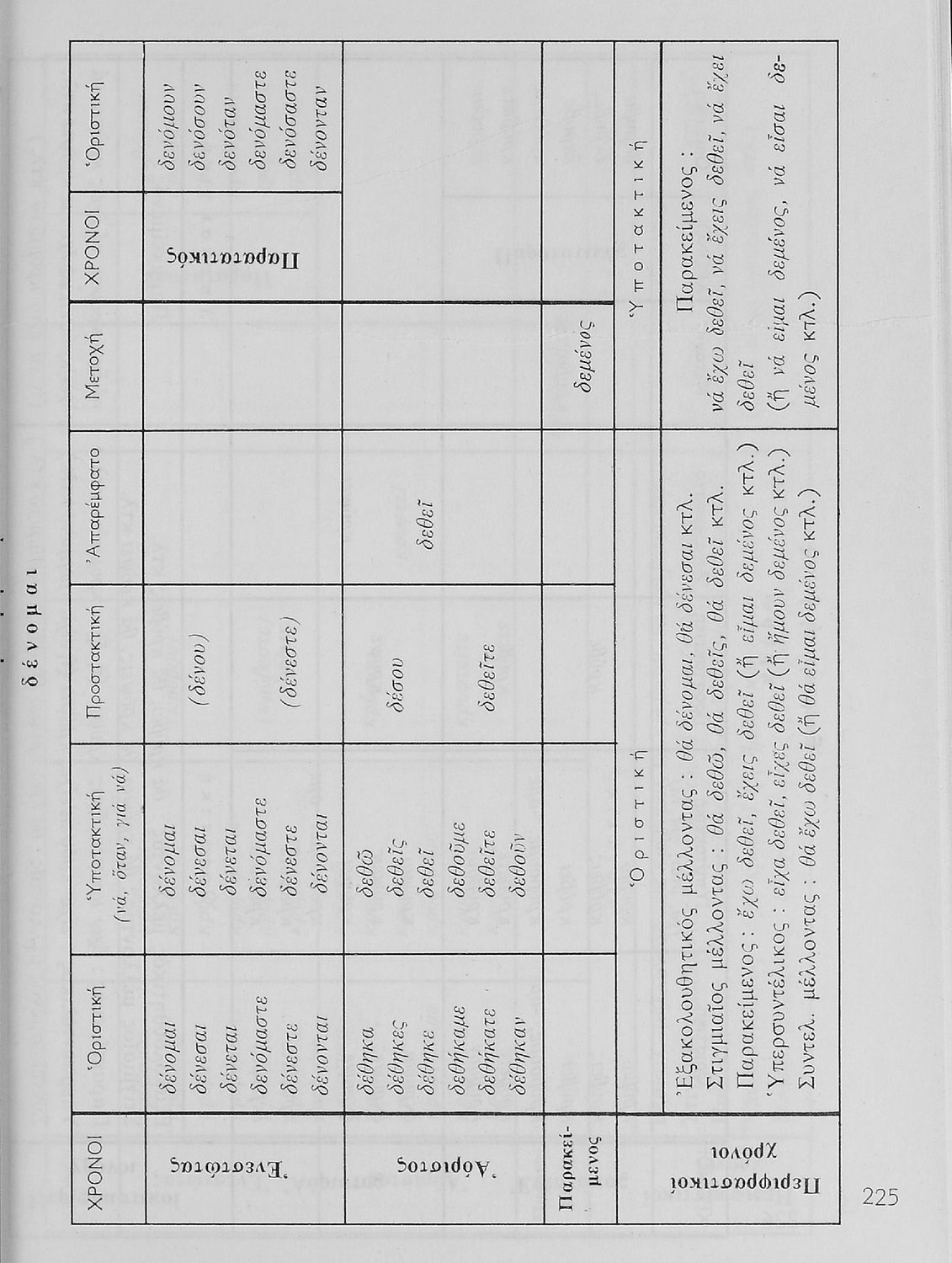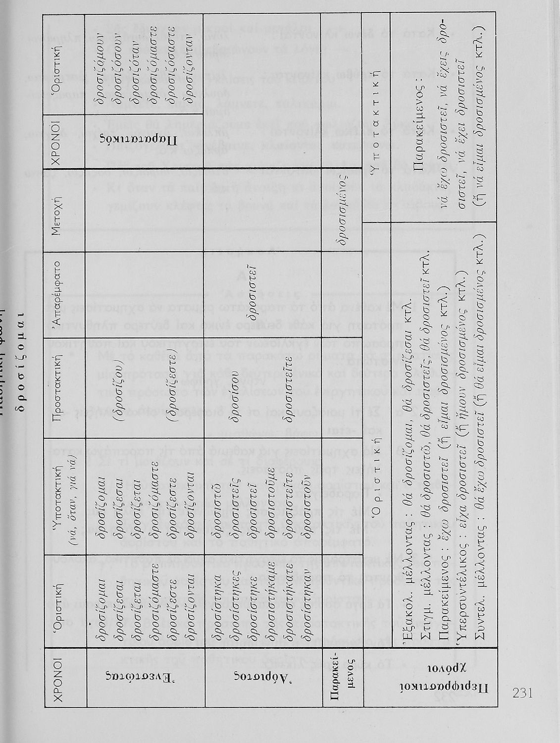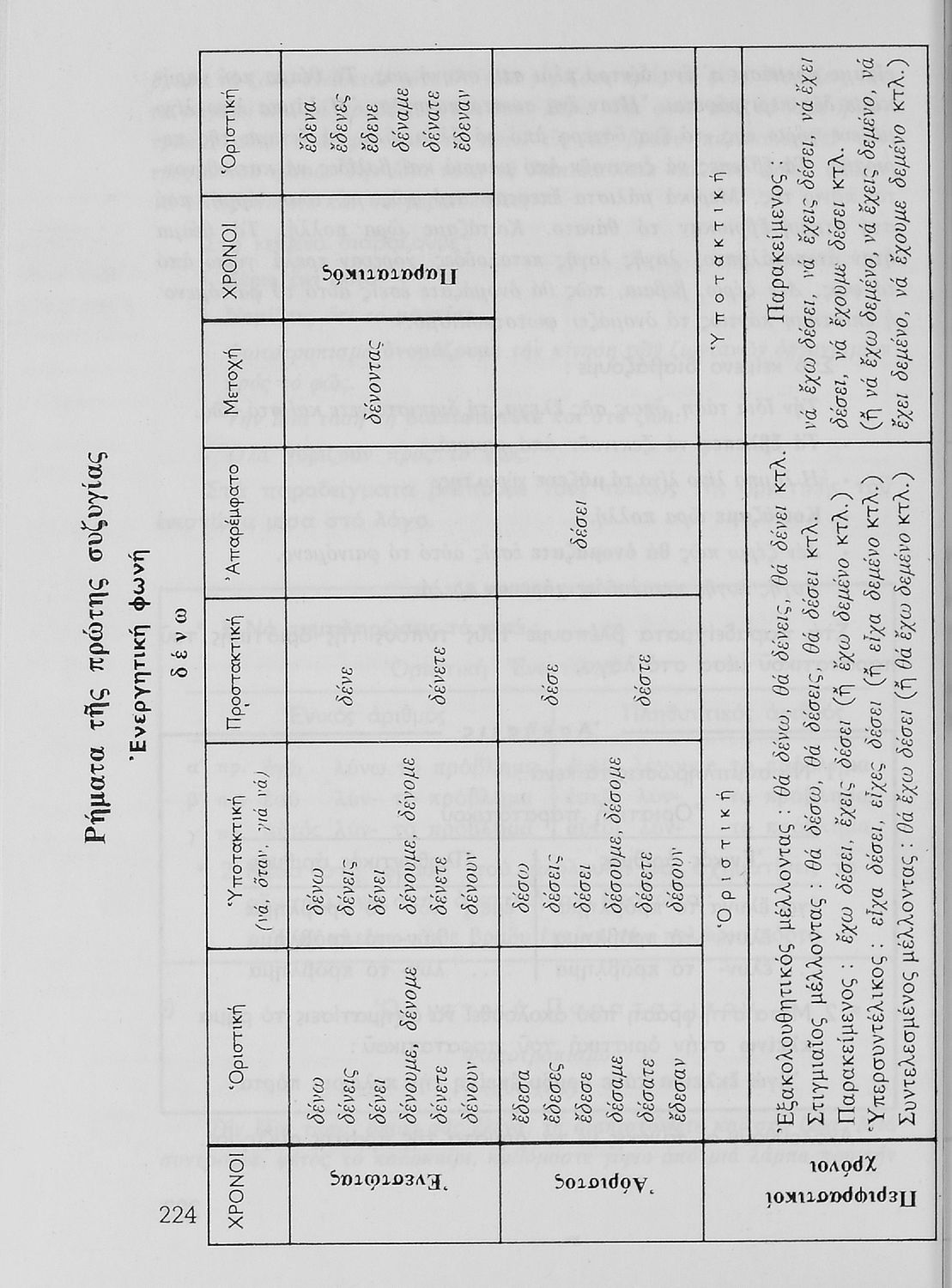 Σχολικό εγχειρίδιο της Ε΄ και ΣΤ΄ τάξης Δημοτικού για την γραμματική της ελληνικής γλώσσας με κανόνες και παραδείγματα. Στο επίμετρο υπάρχουν πίνακες με ανώμαλους σχηματισμούς ρημάτων.