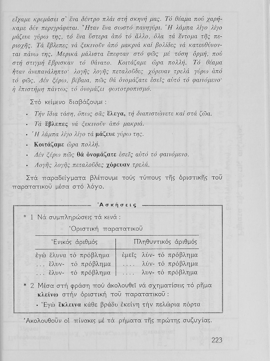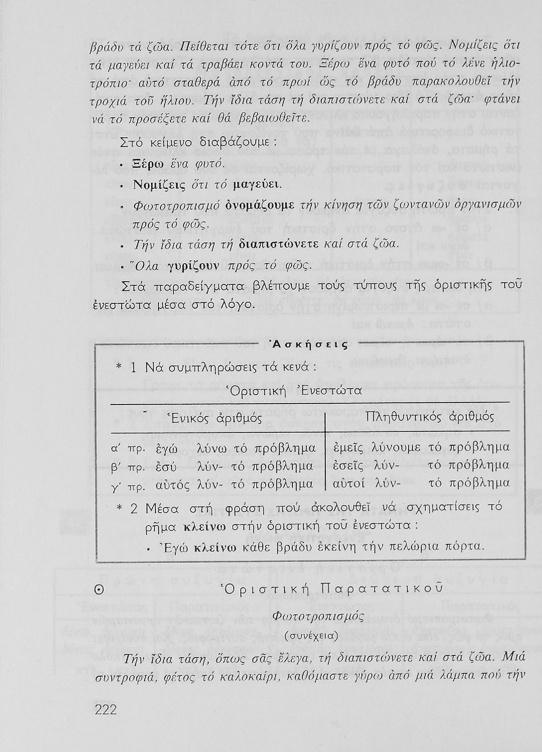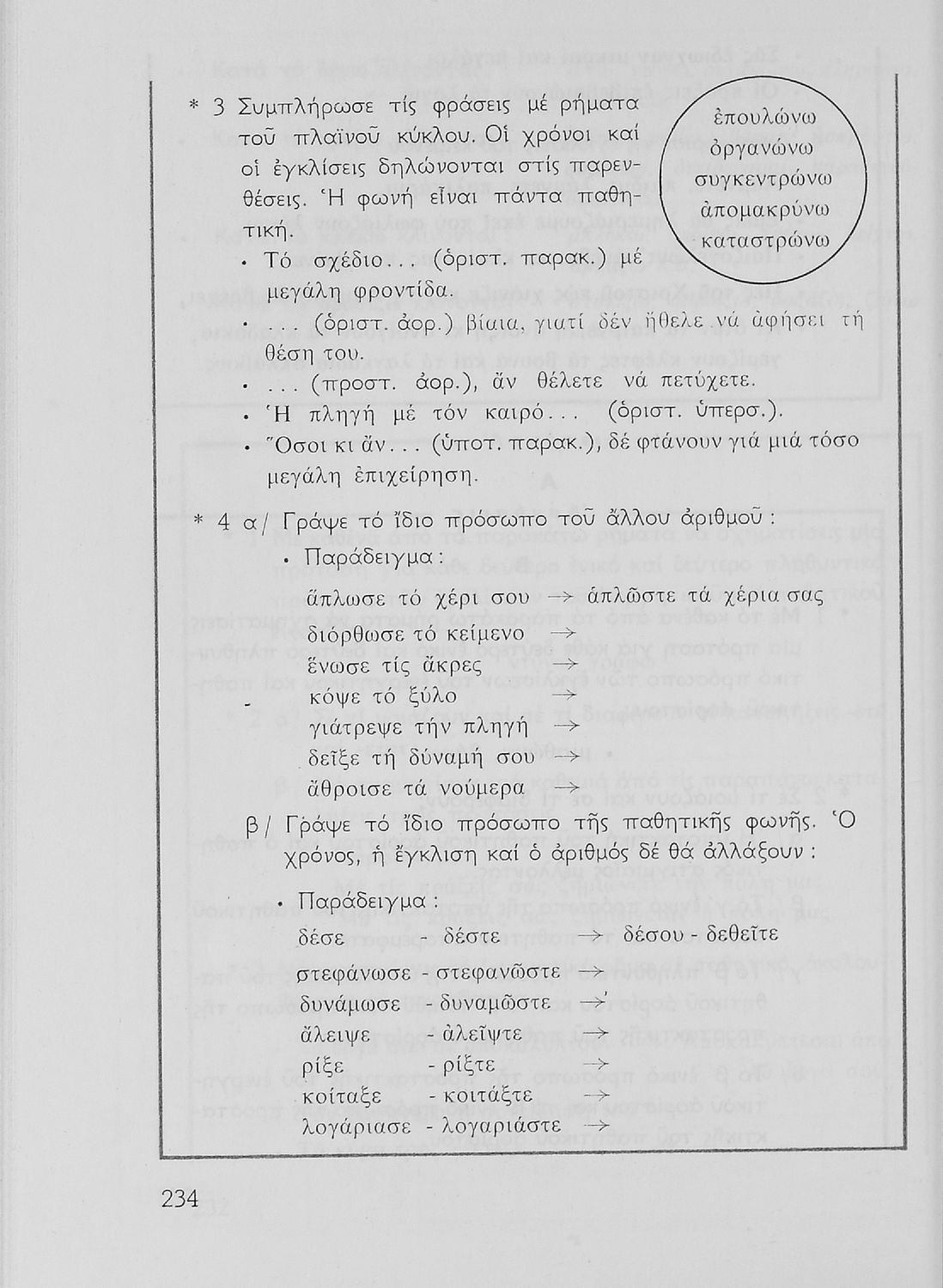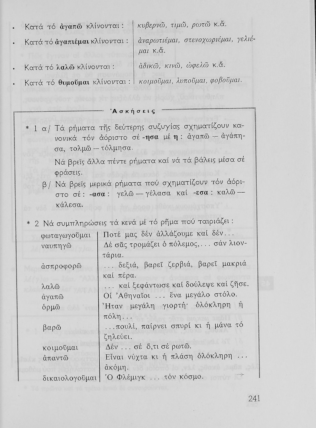 Σχολικό εγχειρίδιο της Ε΄ και ΣΤ΄ τάξης Δημοτικού για την γραμματική της ελληνικής γλώσσας με κανόνες και παραδείγματα. Στο επίμετρο υπάρχουν πίνακες με ανώμαλους σχηματισμούς ρημάτων.
