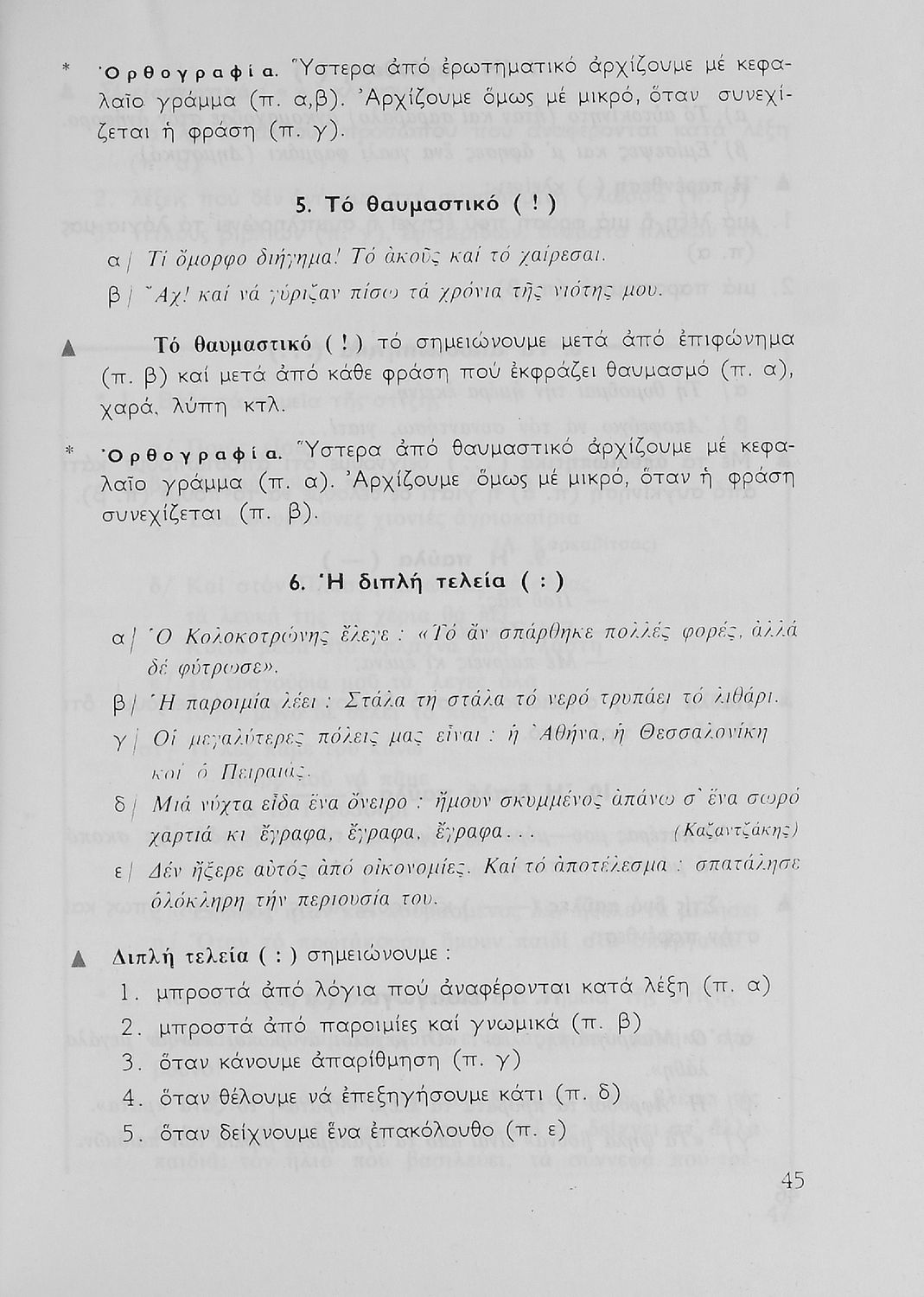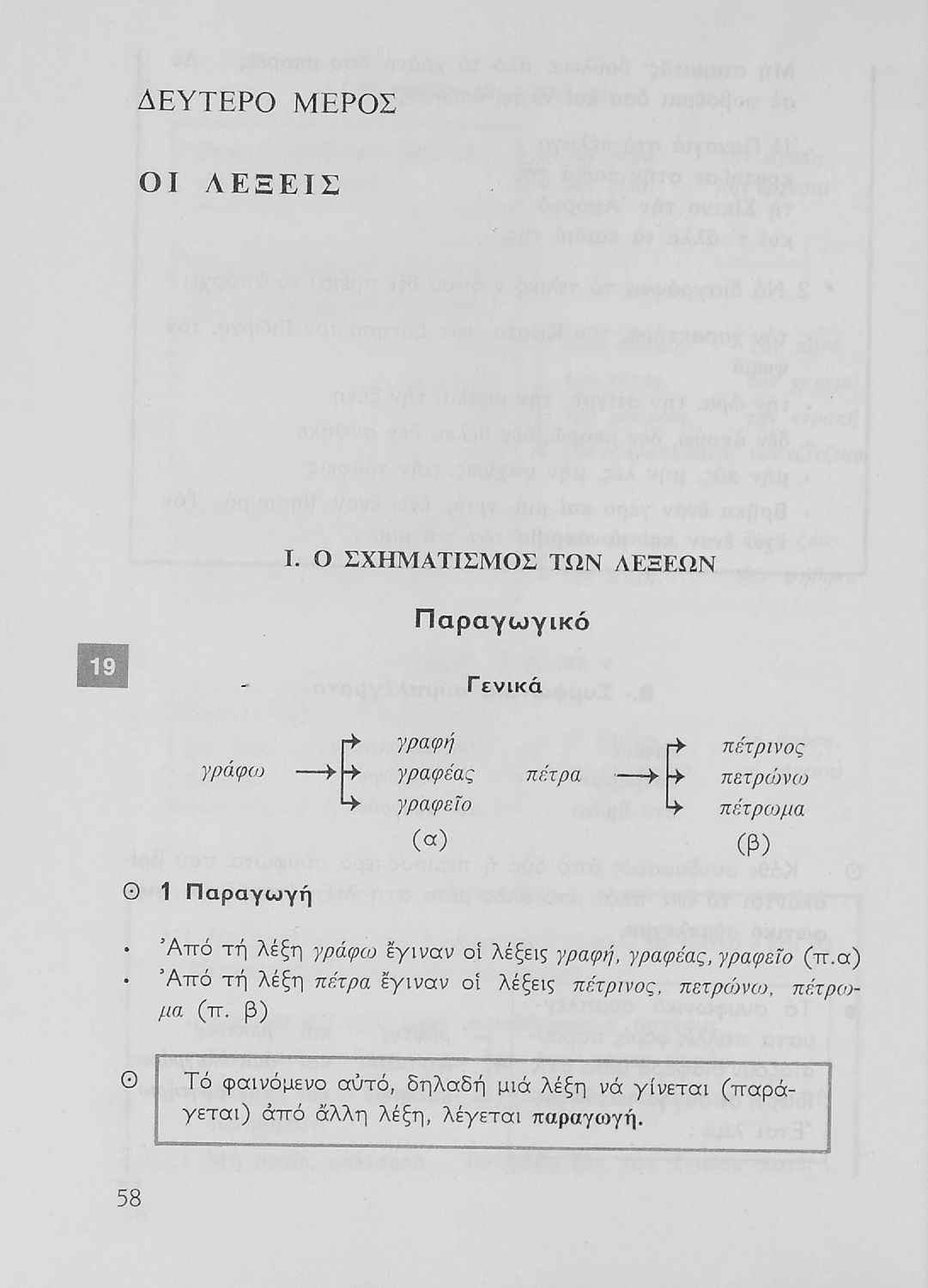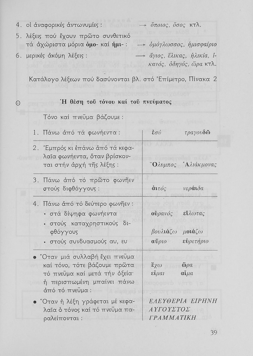 Σχολικό εγχειρίδιο για την Ε΄ και ΣΤ΄ τάξη Δημοτικού με γραμματικούς κανόνες και παραδείγματα για τα κλιτά και άκλιτα μέρη του λόγου.
