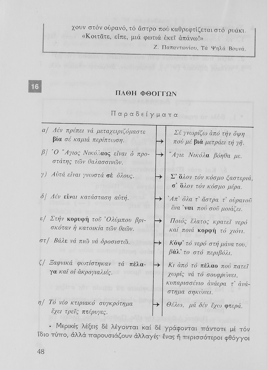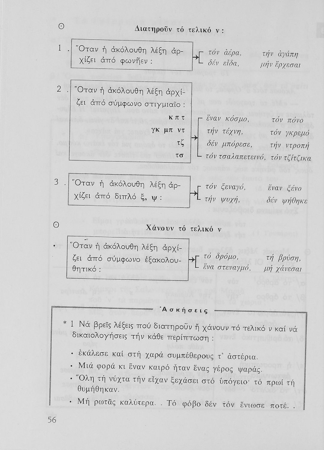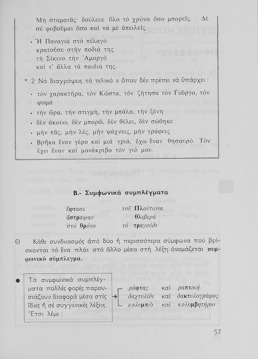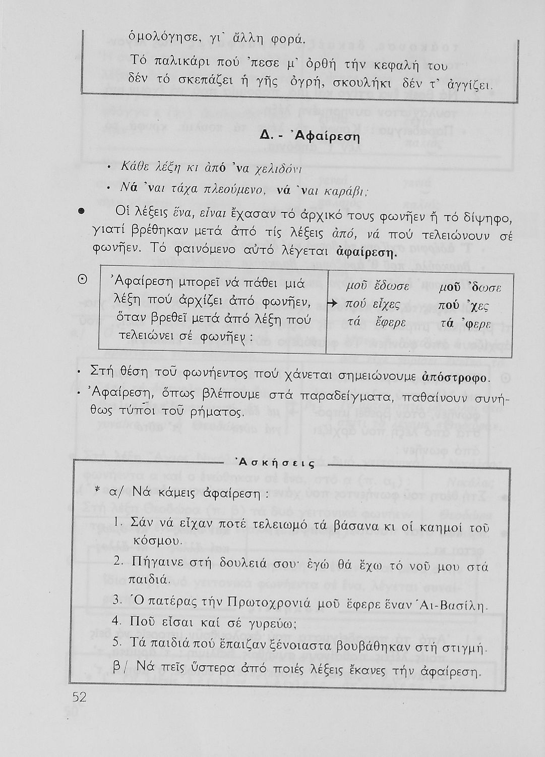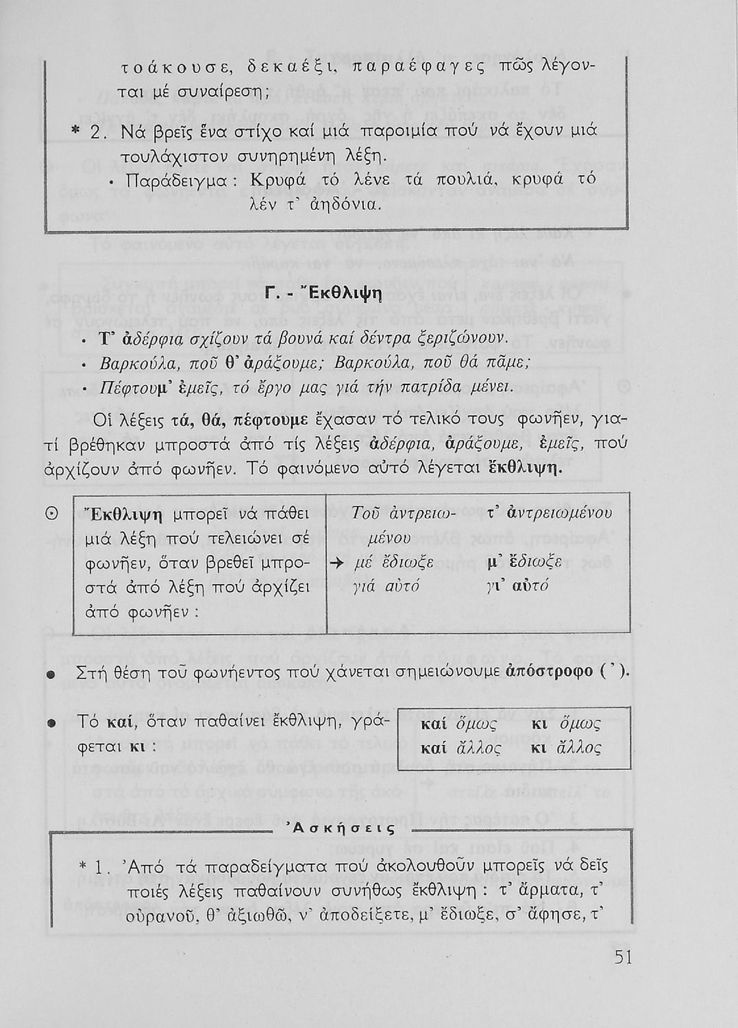 Σχολικό εγχειρίδιο της Ε΄ και ΣΤ΄ τάξης Δημοτικού για την γραμματική της ελληνικής γλώσσας με κανόνες και παραδείγματα. Στο επίμετρο υπάρχουν πίνακες με ανώμαλους σχηματισμούς ρημάτων.