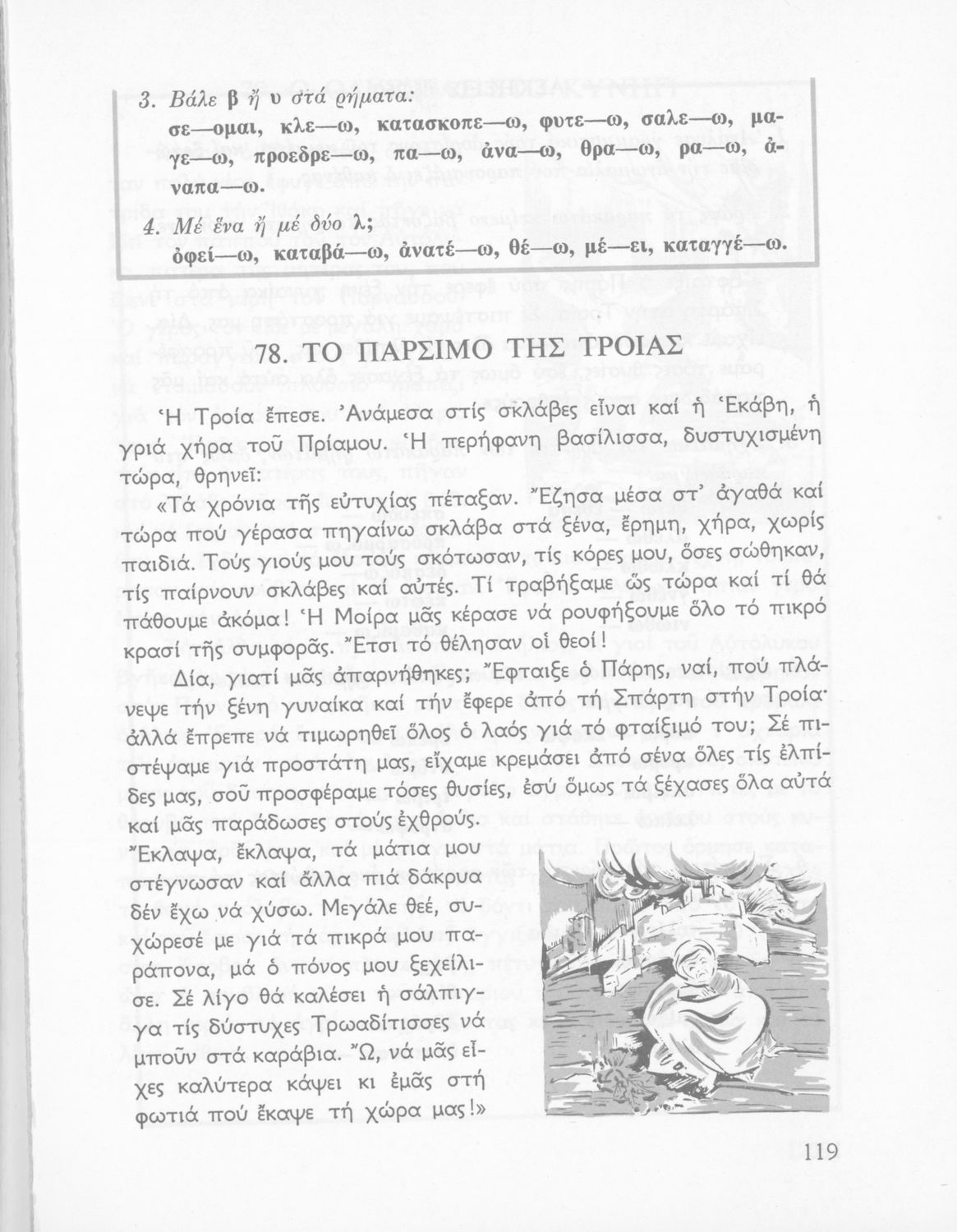 Παρουσίαση περιεχομένου: Σχολικό εγχειρίδιο για τη Γραμματική με κείμενα και ασκήσεις πάνω στα μέρη του λόγου και τις κλίσεις τους για εξάσκηση και εμπέδωση των μαθητών.
