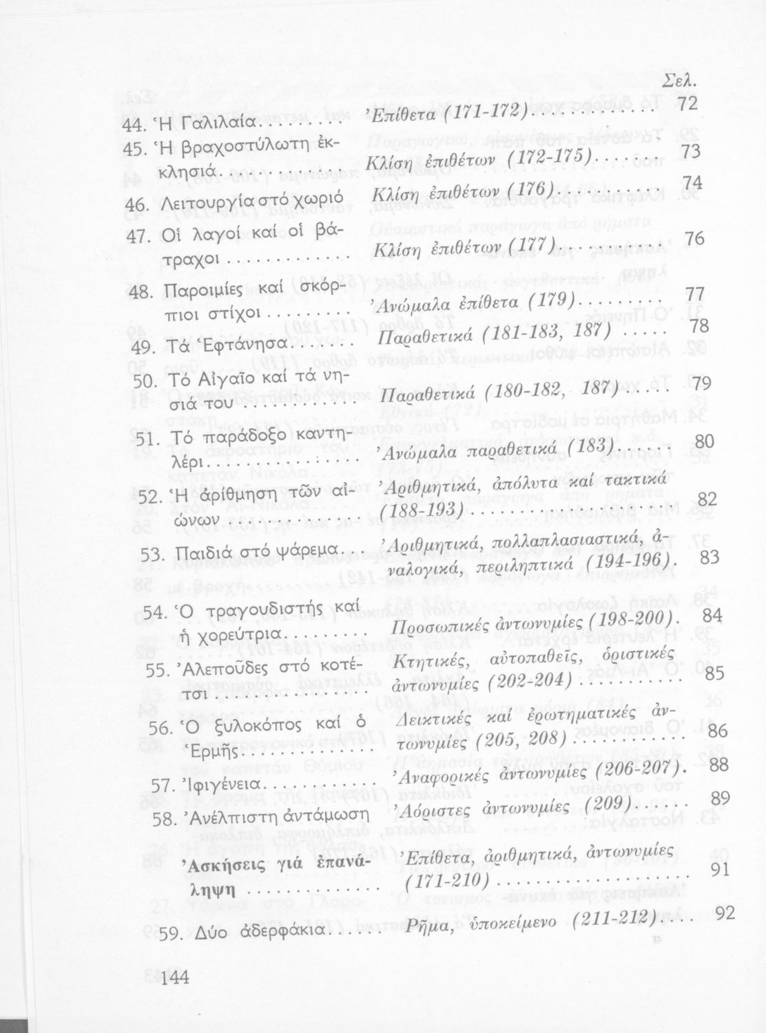 Σχολικό εγχειρίδιο για τη Γραμματική με κείμενα και ασκήσεις πάνω στα μέρη του λόγου και τις κλίσεις τους για εξάσκηση και εμπέδωση των μαθητών.