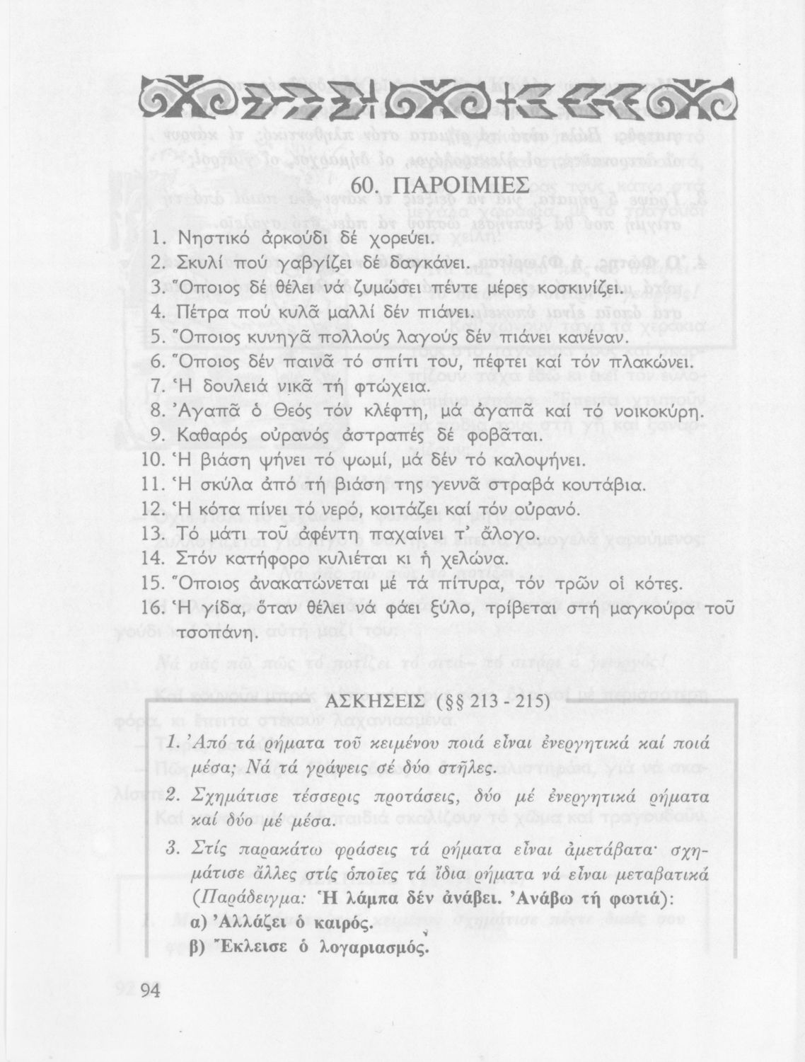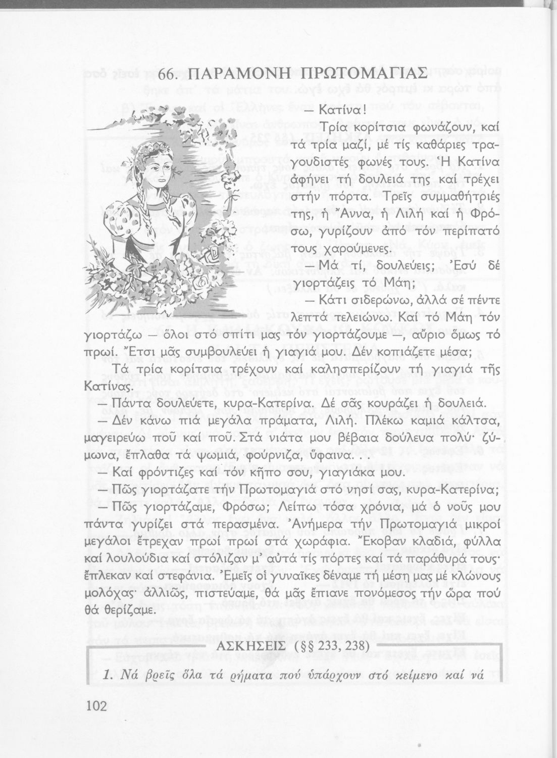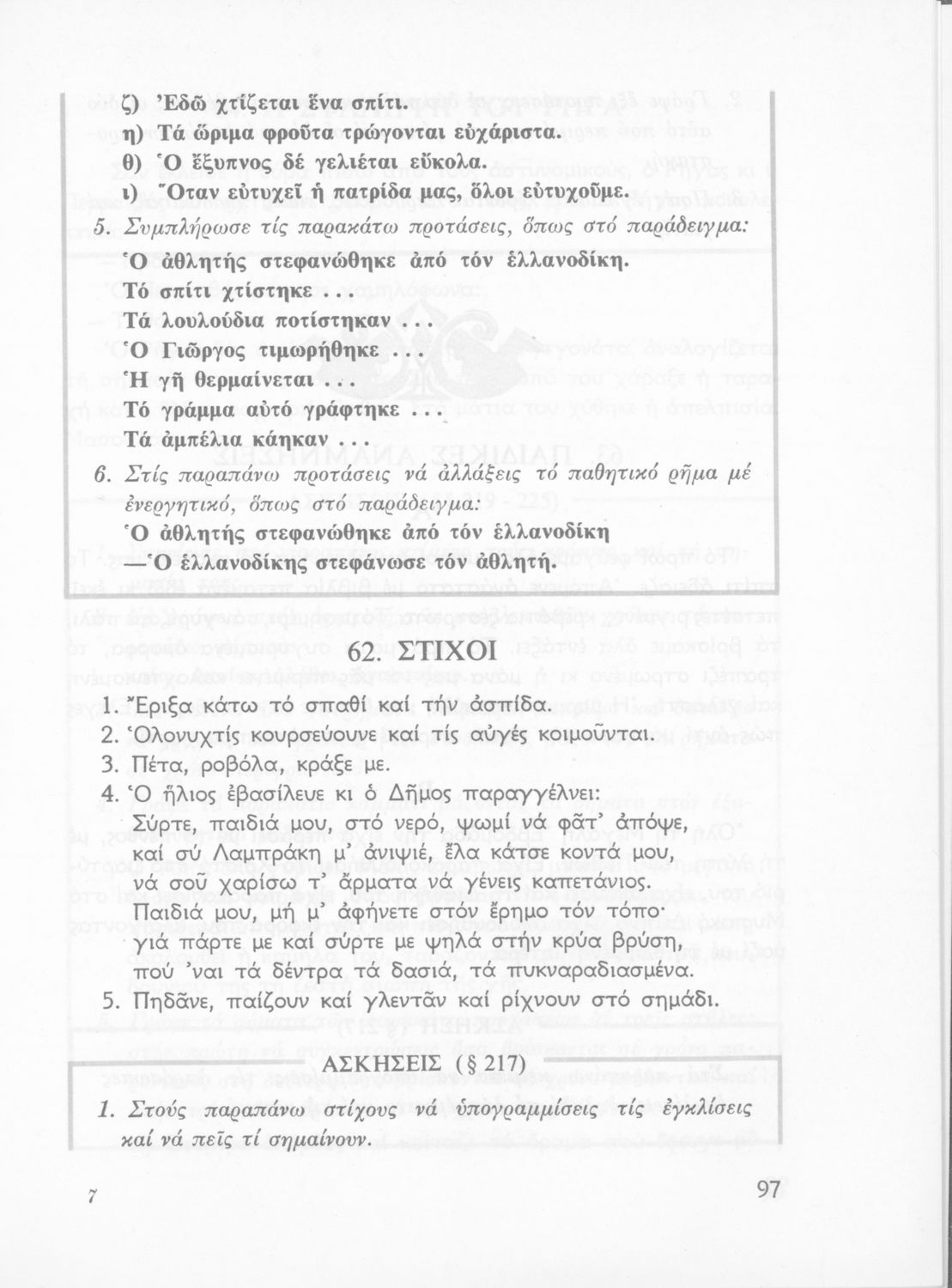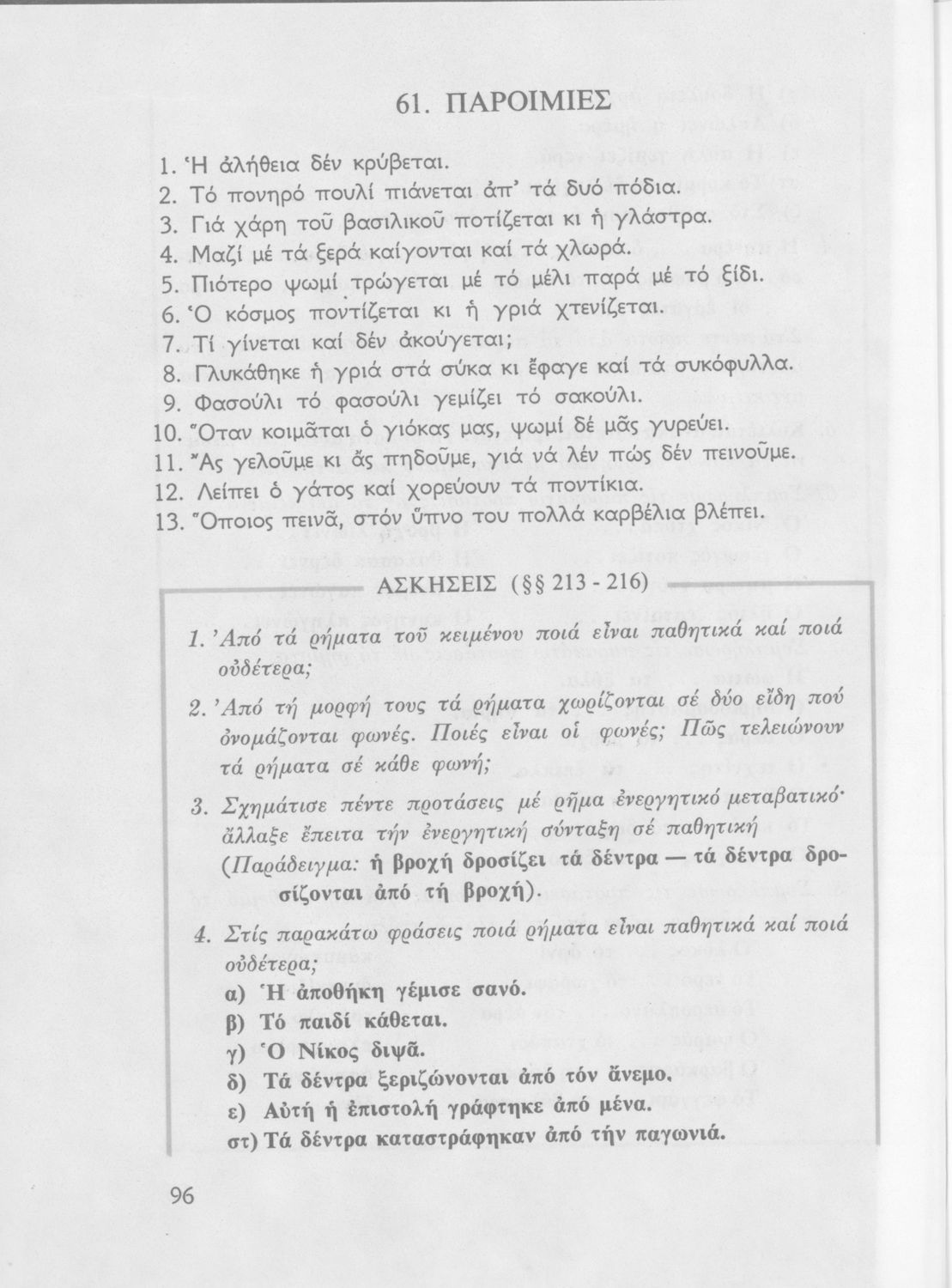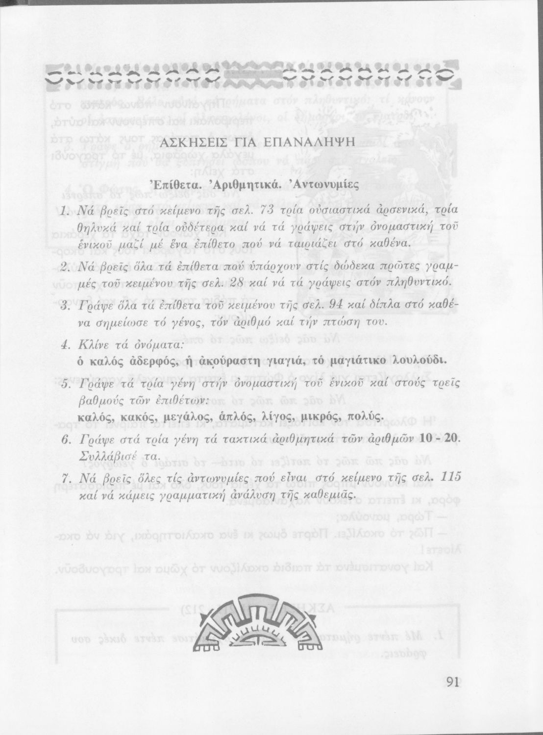 Σχολικό εγχειρίδιο για τη Γραμματική με κείμενα και ασκήσεις πάνω στα μέρη του λόγου και τις κλίσεις τους για εξάσκηση και εμπέδωση των μαθητών.