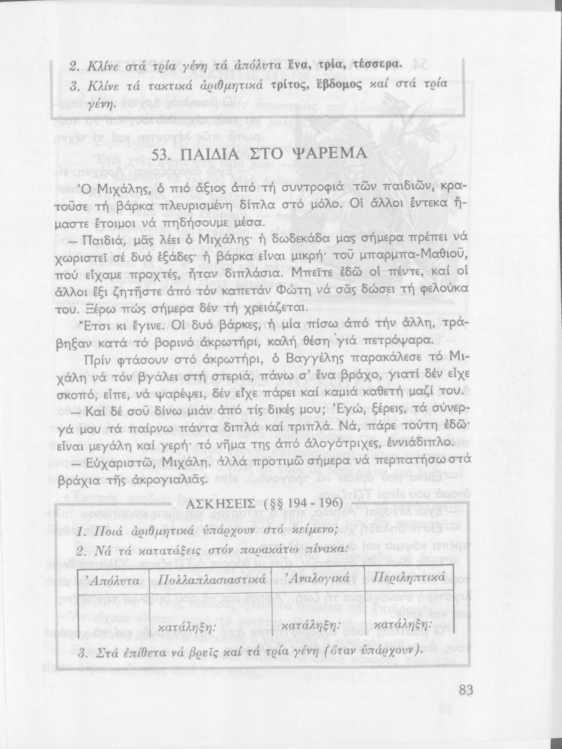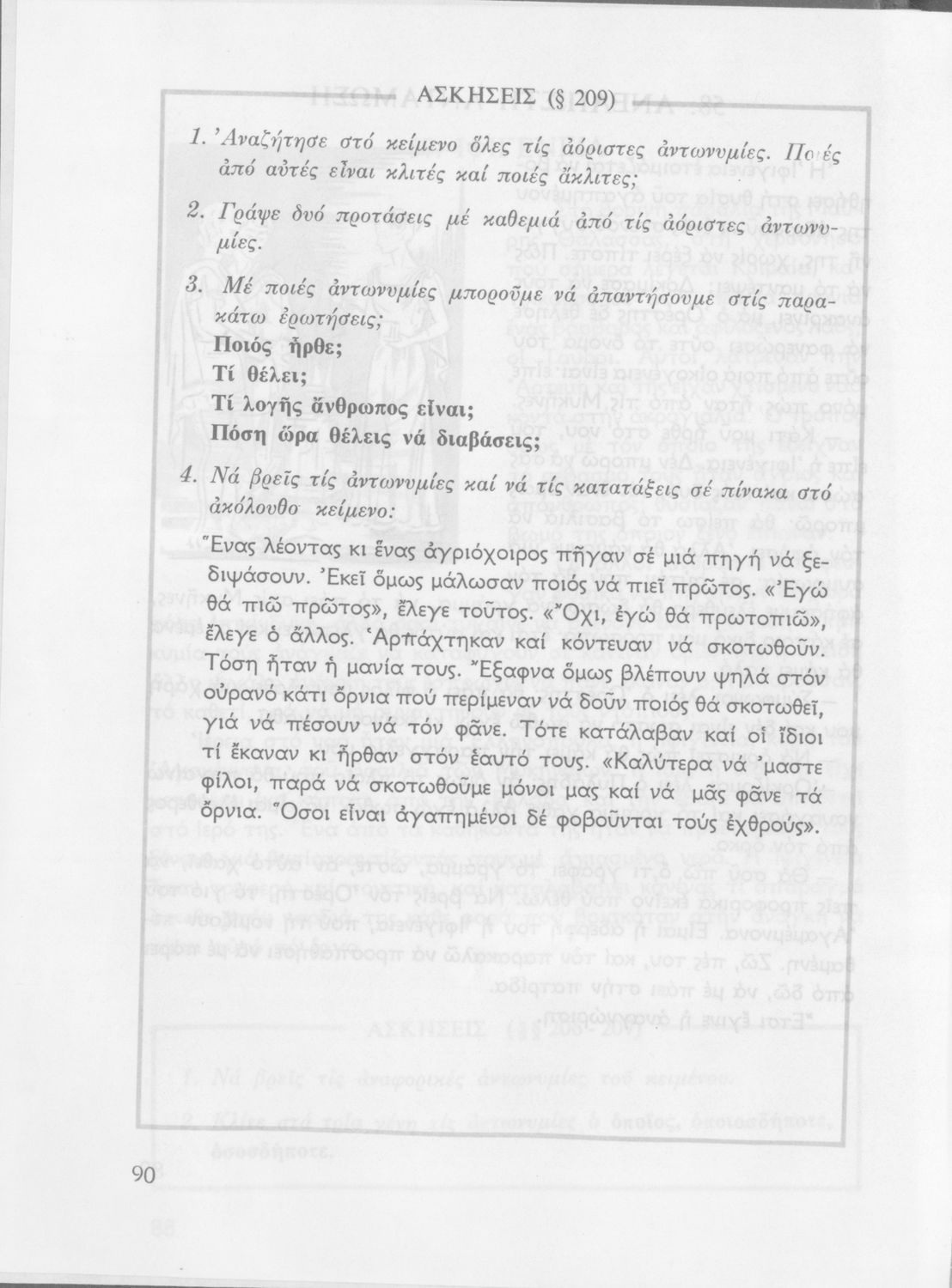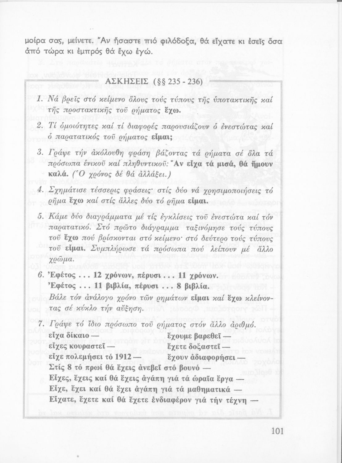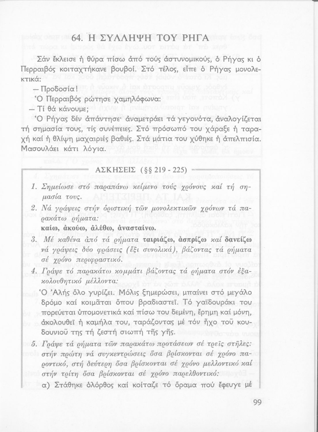 Σχολικό εγχειρίδιο για τη Γραμματική με κείμενα και ασκήσεις πάνω στα μέρη του λόγου και τις κλίσεις τους για εξάσκηση και εμπέδωση των μαθητών.