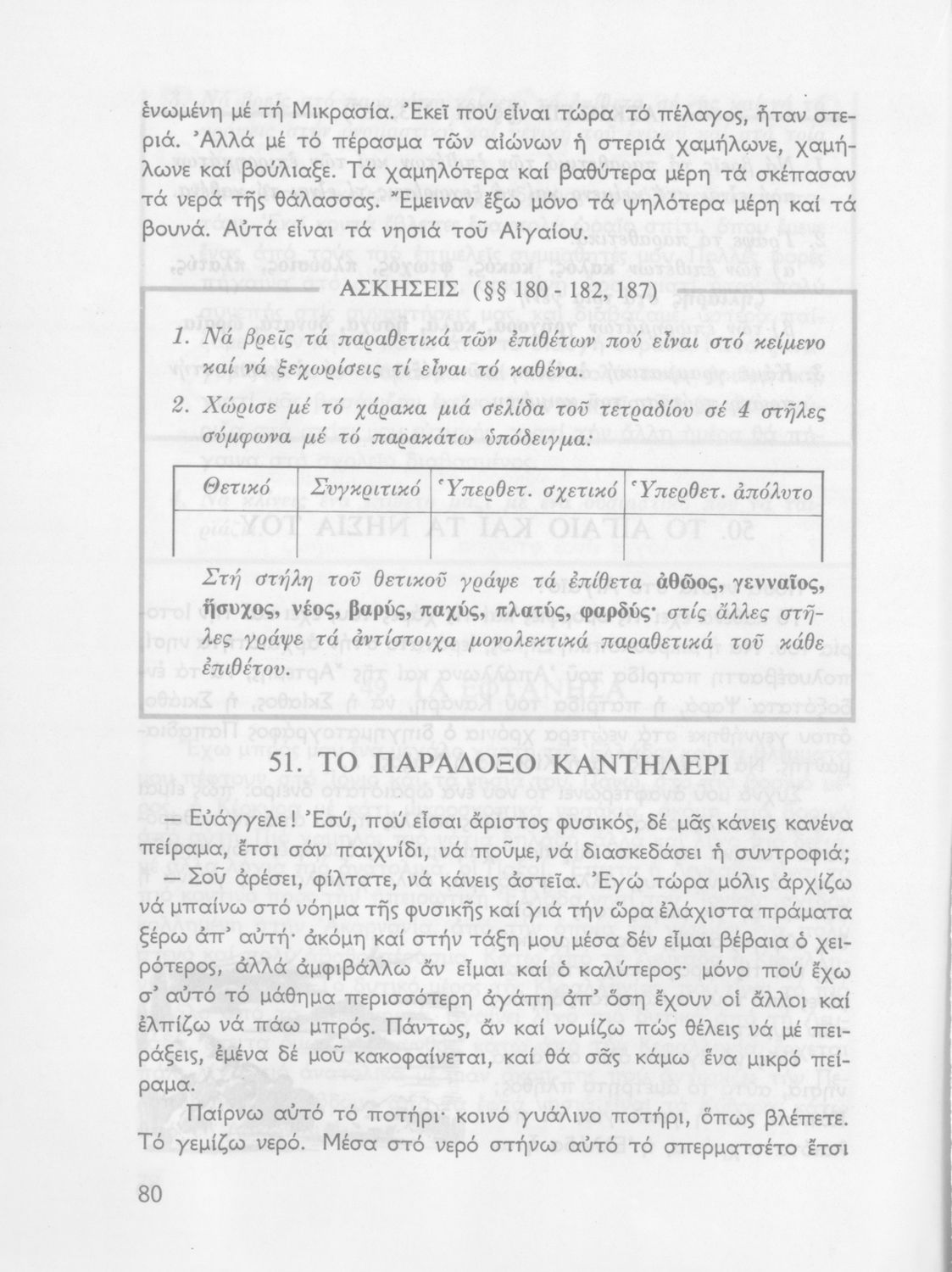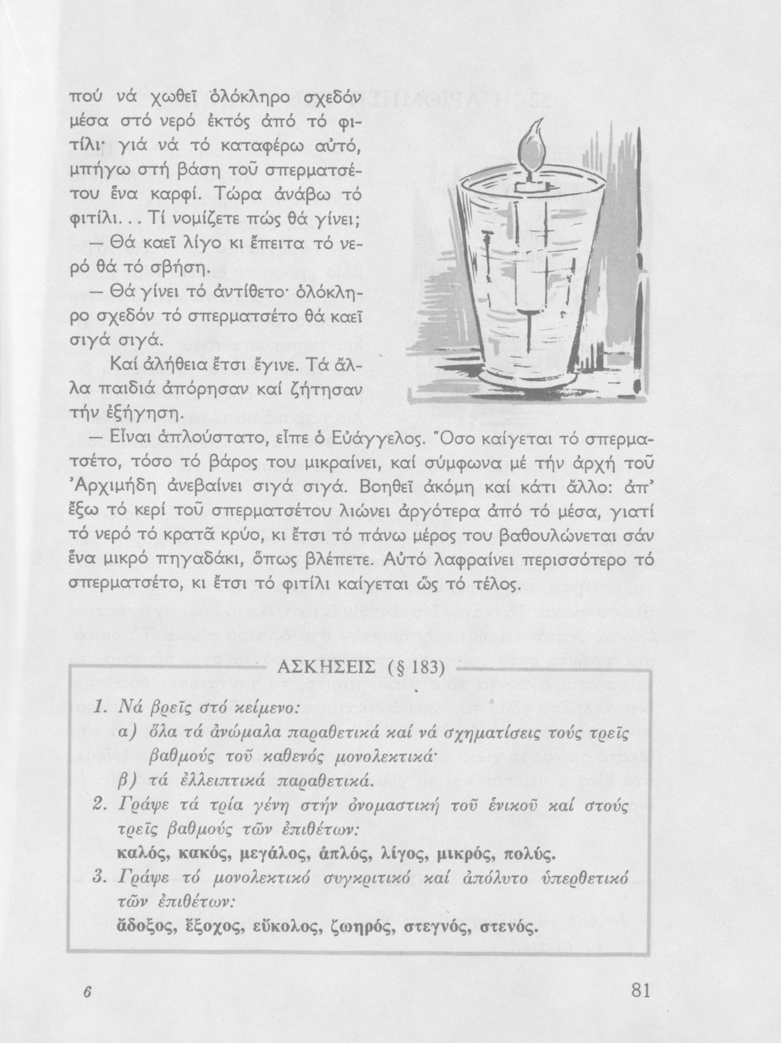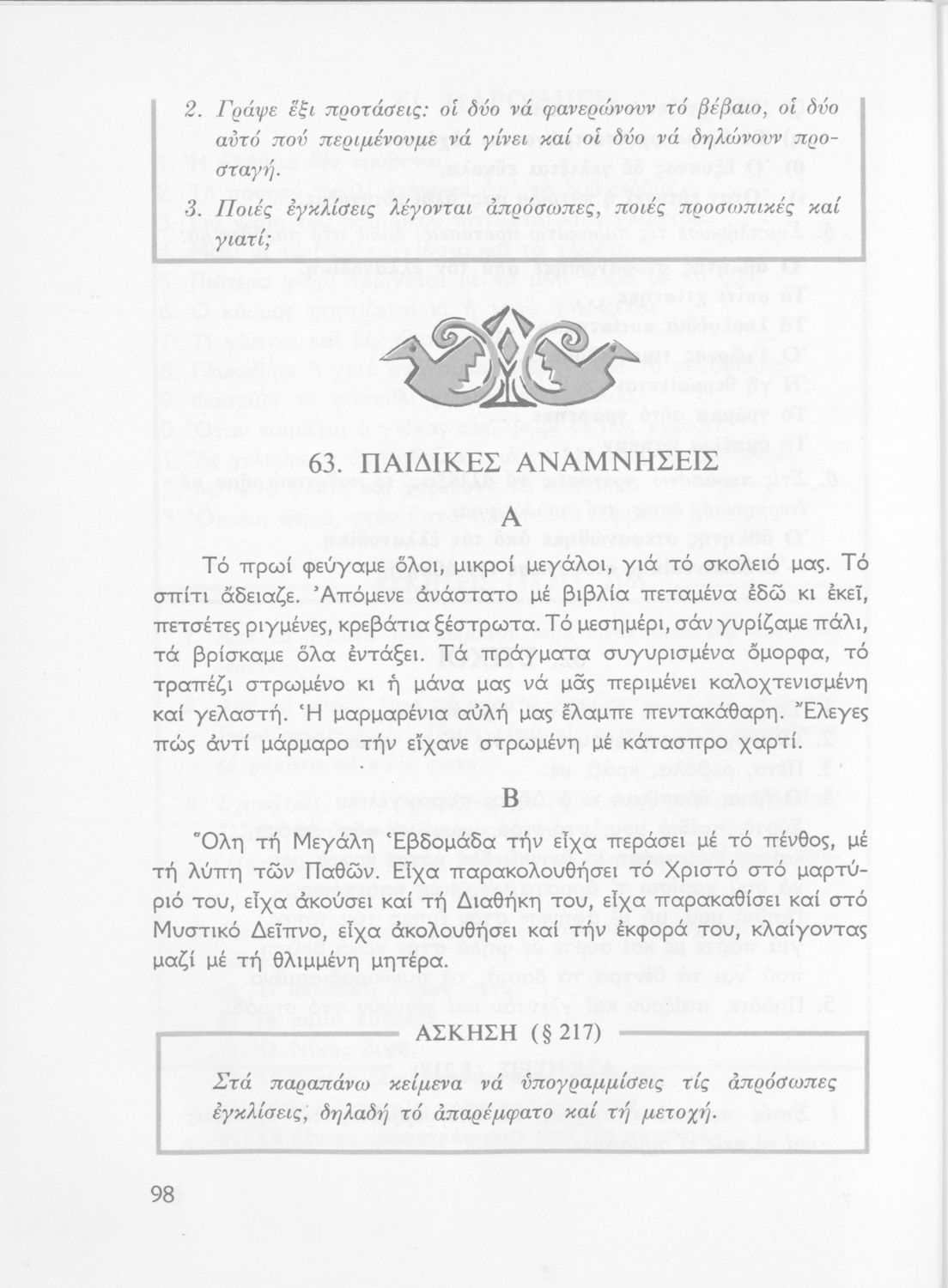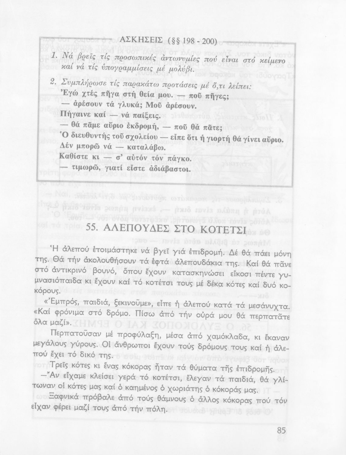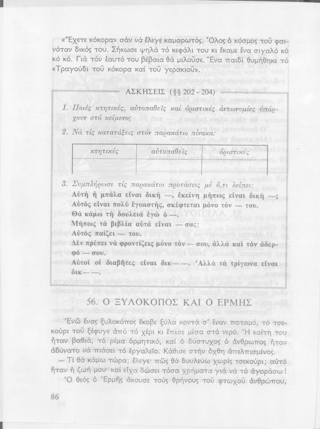Σχολικό εγχειρίδιο για τη Γραμματική με κείμενα και ασκήσεις πάνω στα μέρη του λόγου και τις κλίσεις τους για εξάσκηση και εμπέδωση των μαθητών.