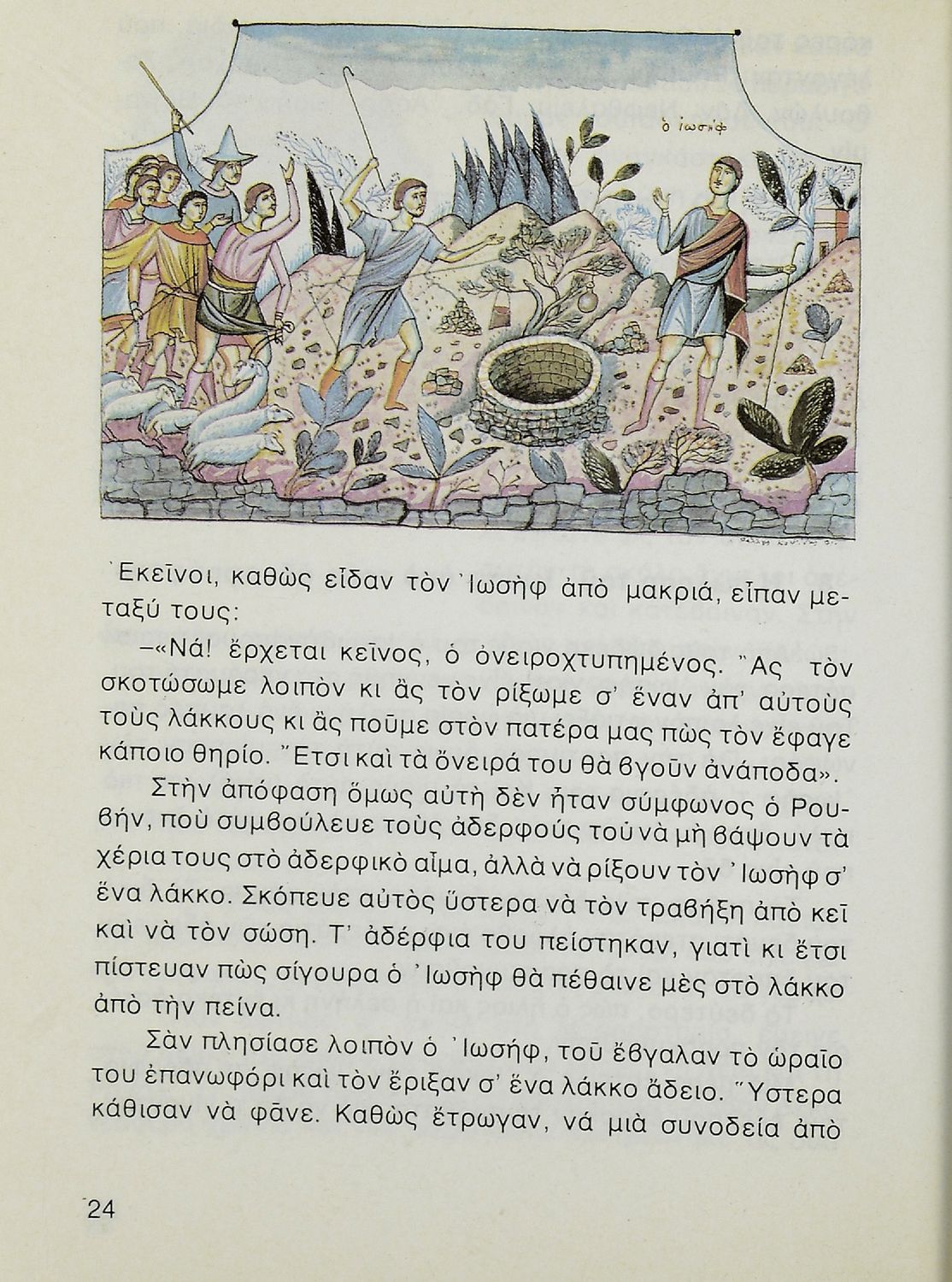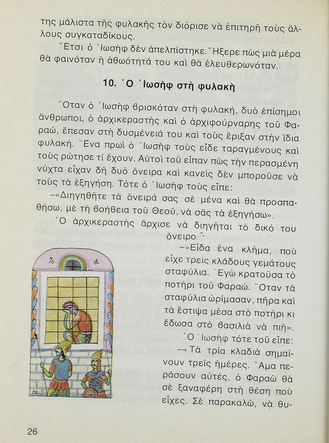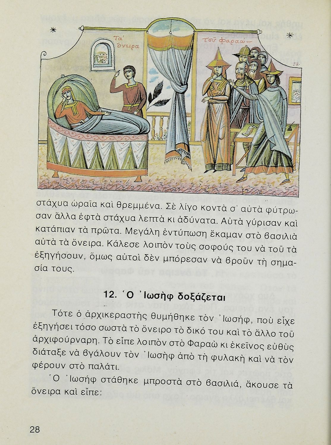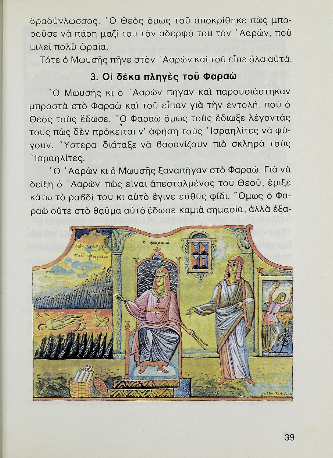 Σχολικό εγχειρίδιο Θρησκευτικών για τους μαθητές της Γ' Δημοτικού. Ενώ το βιβλίο αναφέρεται σε θέματα Παλαιάς Διαθήκης στο τέλος έχει γιορτές αγίων που έχουν σχέση με την ιστορία της Εκκλησίας.