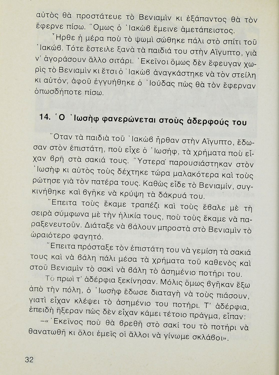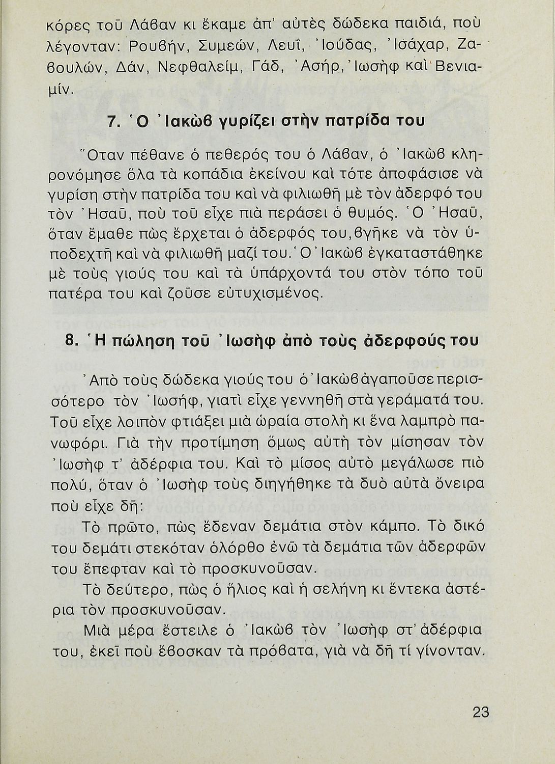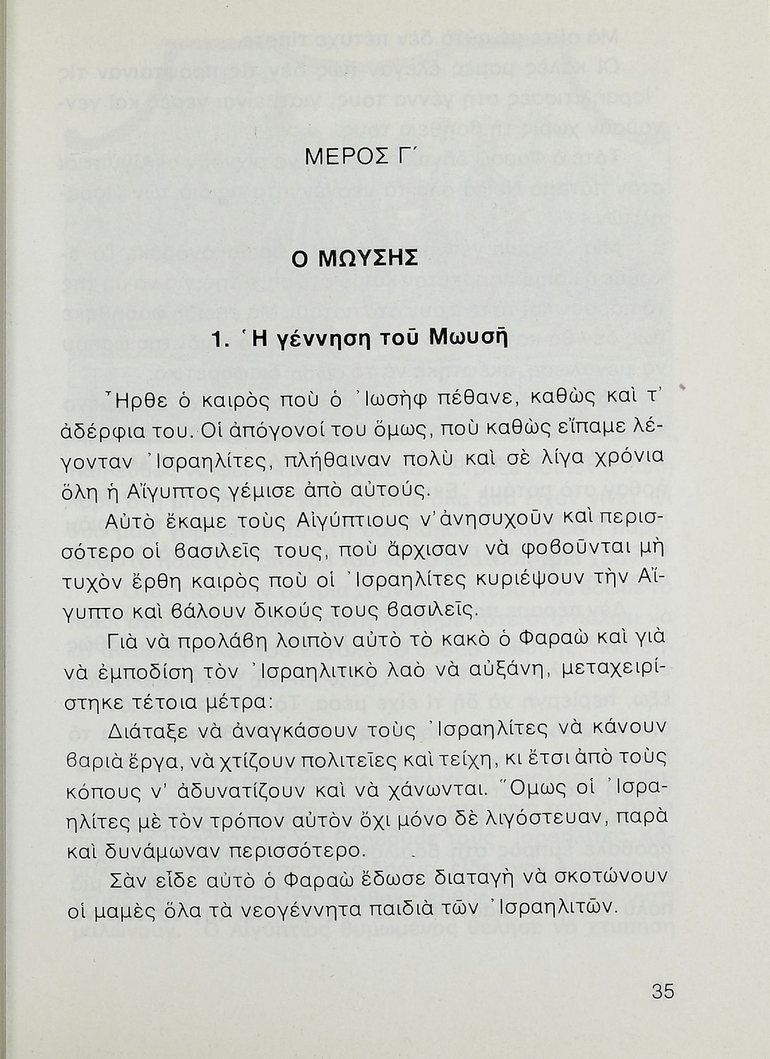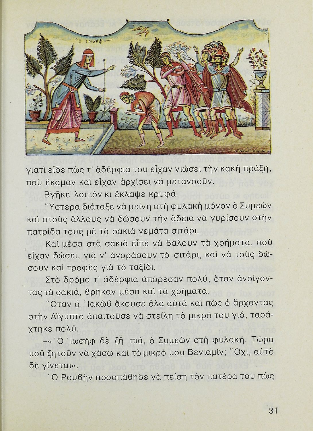 Σχολικό εγχειρίδιο Θρησκευτικών για τους μαθητές της Γ' Δημοτικού. Ενώ το βιβλίο αναφέρεται σε θέματα Παλαιάς Διαθήκης στο τέλος έχει γιορτές αγίων που έχουν σχέση με την ιστορία της Εκκλησίας.