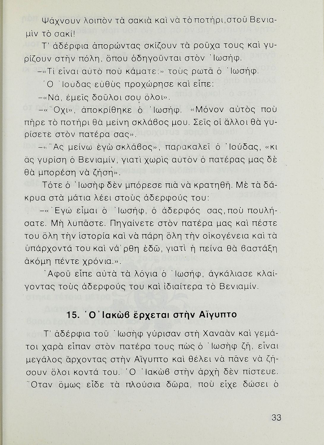 Σχολικό εγχειρίδιο Θρησκευτικών για την Γ΄ Γυμνασίου. Το βιβλίο ξεκινά με τη δημιουργία του κόσμου, συνεχίζει με τους Πατριάρχες, Προφήτες και Βασιλείς των Εβραίων.