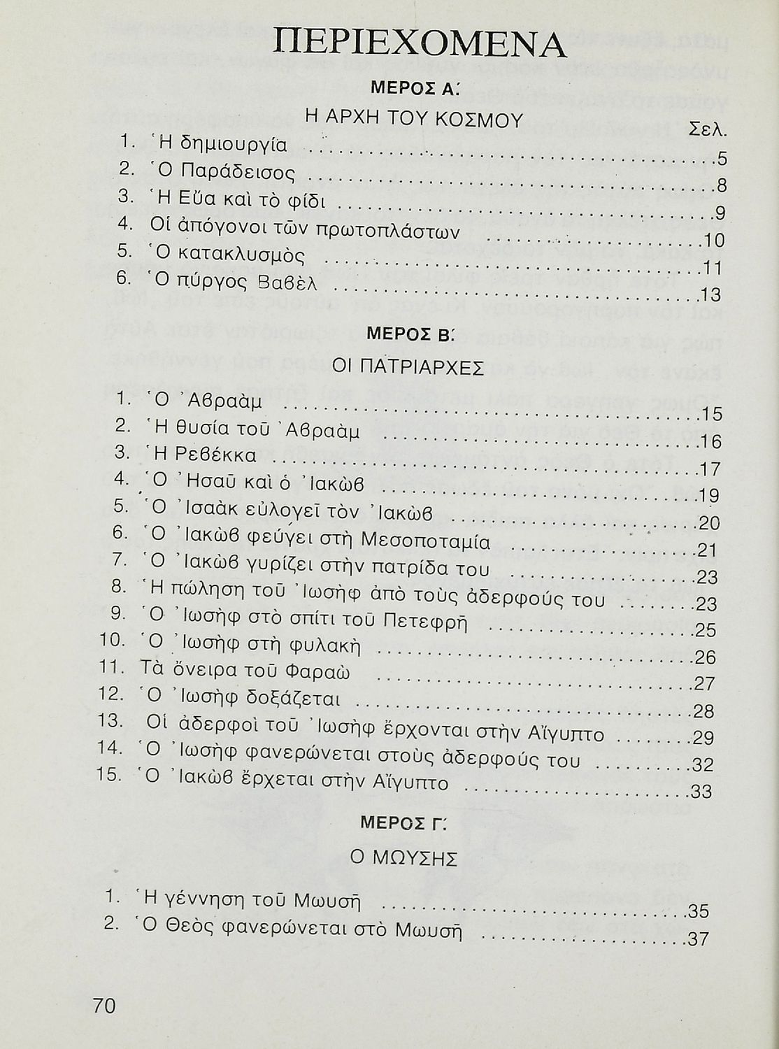 Σχολικό εγχειρίδιο Θρησκευτικών για την Γ΄ τάξη Δημοτικού. Περιέχει ιστορίες από την Παλαιά Διαθήκη. Ξεκινά με την δημιουργία του κόσμου και αναφέρει την ιστορία του εβραϊκού λαού.