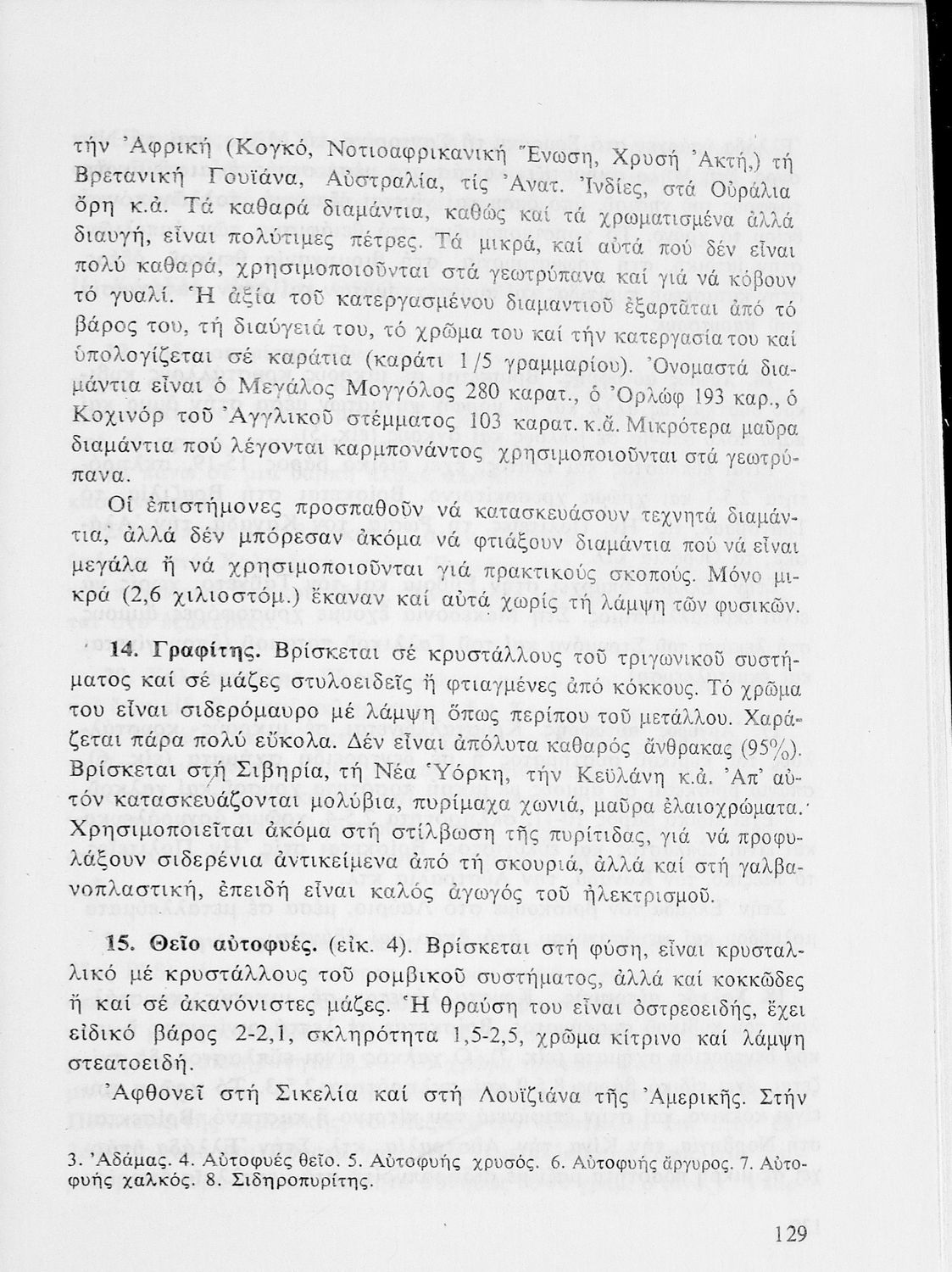 Σχολικό εγχειρίδιο Γεωλογίας/Ορυκτολογίας για την Α΄ Λυκείου που περιλαμβάνει χθονογραφική, δυναμική και ιστορική γεωλογία, και γενική και ειδική ορυκτολογία. Ο συγγραφέας ήταν καθηγητής πανεπιστημίου και η συγγραφέας φυσικός.
