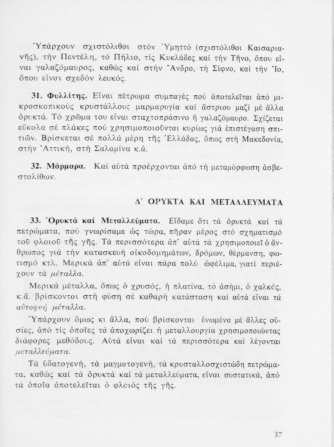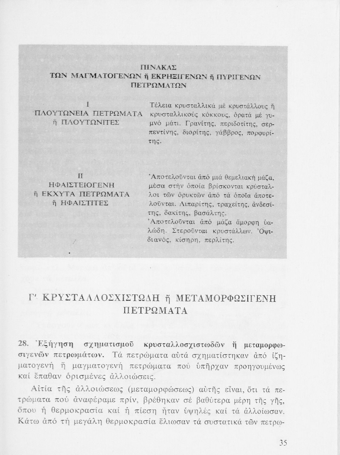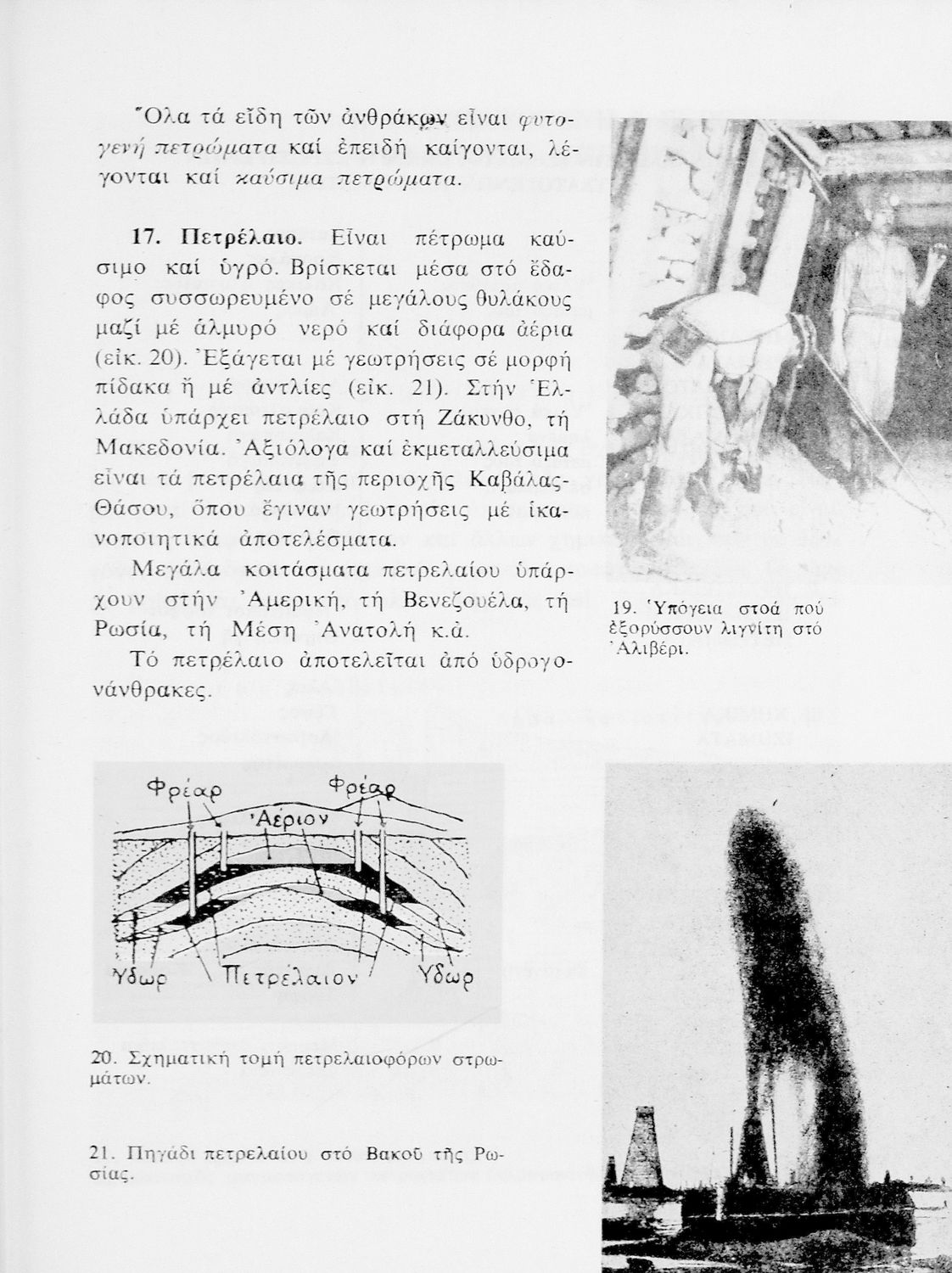 Σχολικό εγχειρίδιο Γεωλογίας/Ορυκτολογίας για την Α΄ Λυκείου που περιλαμβάνει χθονογραφική, δυναμική και ιστορική γεωλογία, και γενική και ειδική ορυκτολογία. Ο συγγραφέας ήταν καθηγητής πανεπιστημίου και η συγγραφέας φυσικός.