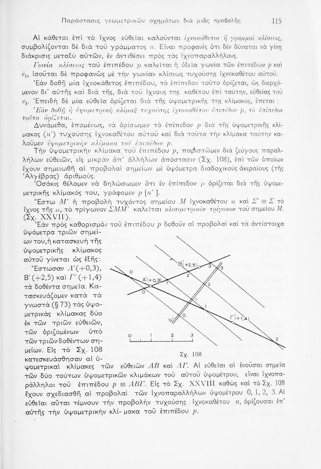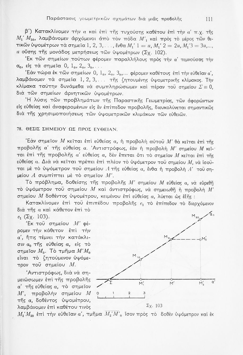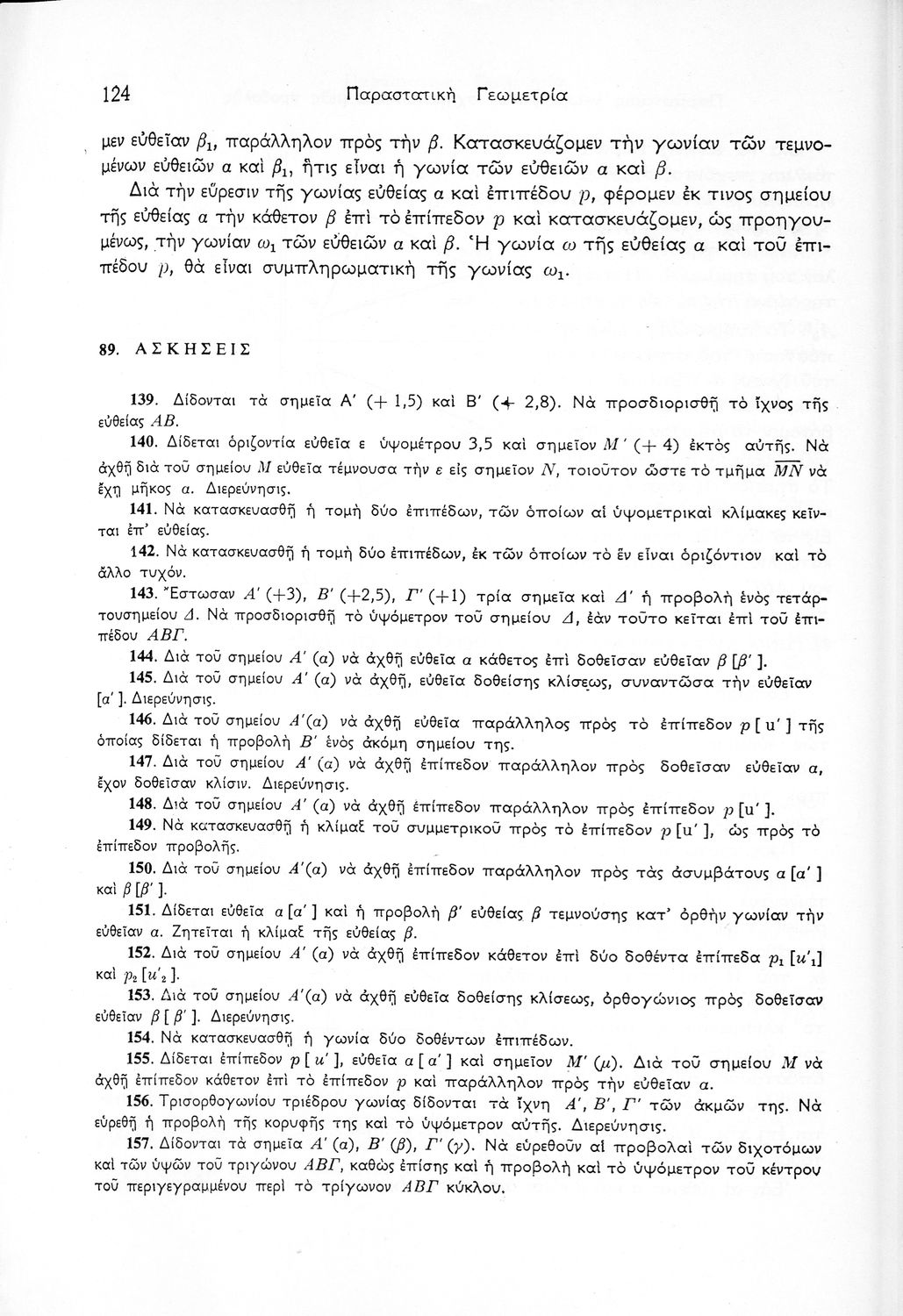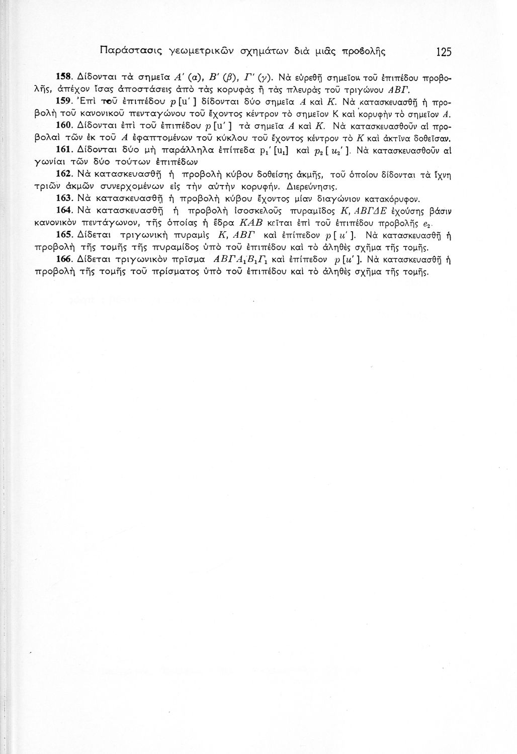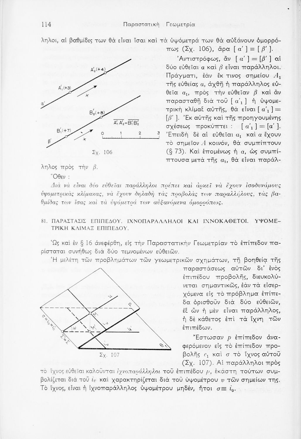 Σχολικό εγχειρίδιο Παραστατικής Γεωμετρίας για τις Ε΄ και ΣΤ΄ Γυμνασίου χωρισμένο σε θεωρία και ασκήσεις που περιλαμβάνει παράρτημα με έγχρωμα διαγράμματα σε Χ, Ψ, Ζ άξονα. Ο συγγραφέας ήταν καθηγητής στο ΕΜΠ. Φέρει το σύμβολο της δικτατορίας.