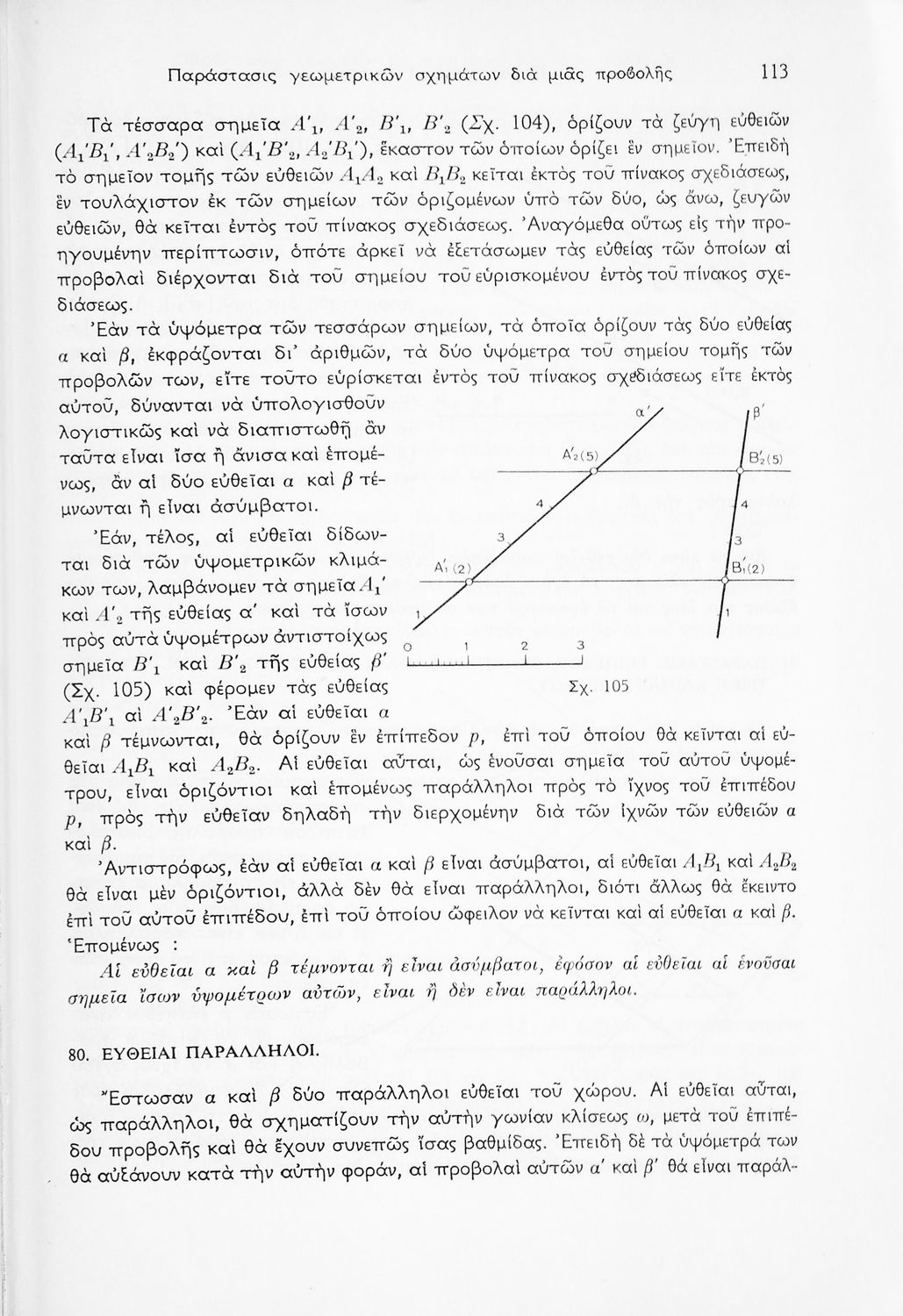 Παρουσίαση περιεχομένου: Σχολικό εγχειρίδιο Παραστατικής Γεωμετρίας για τις Ε΄ και ΣΤ΄ Γυμνασίου χωρισμένο σε θεωρία και ασκήσεις που περιλαμβάνει παράρτημα με έγχρωμα διαγράμματα σε Χ, Ψ, Ζ άξονα. Ο συγγραφέας ήταν καθηγητής στο ΕΜΠ. Φέρει το σύμβολο της δικτατορίας.
